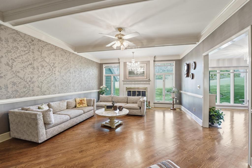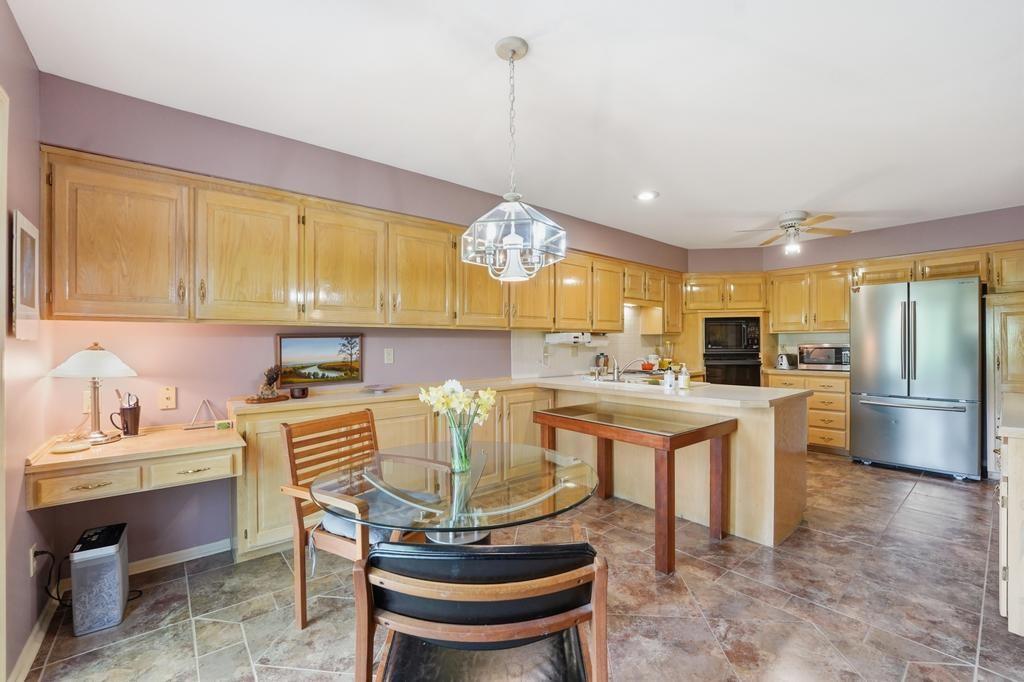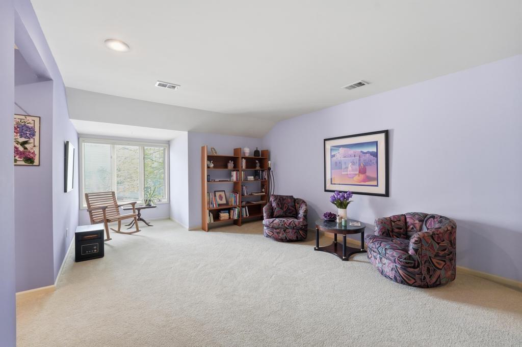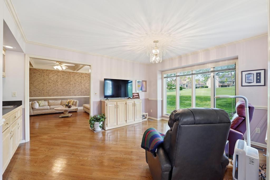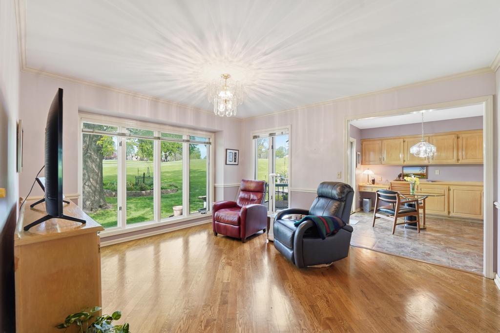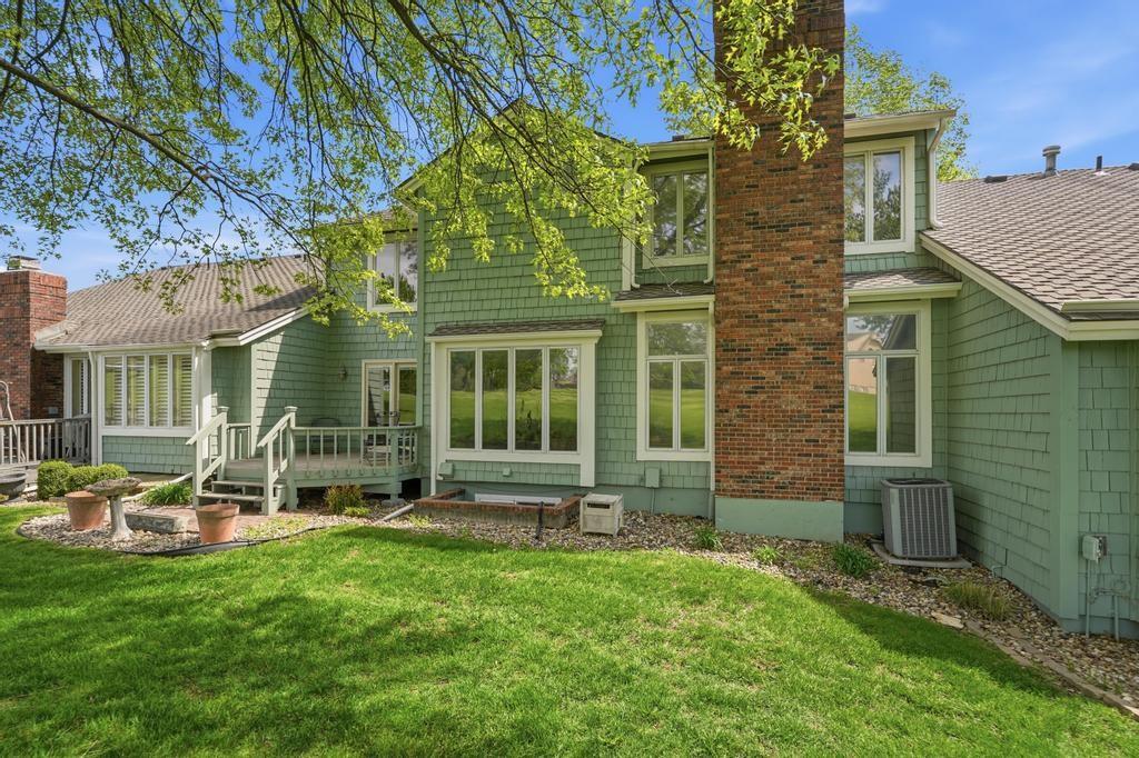 This Wellington Green townhome backs to green space/Blue Hills Country Club Golf Course. It is one of the larger homes in the subdivision and it feels so spacious! The main level has a gorgeous, bright, big living room with a fireplace, floor to ceiling windows, and hardwood floors. Next you walk into a sitting room/den with a wall full of windows and the same beautiful hardwood floors. The kitchen has plenty of cabinets and counter space and room for a small breakfast table overlooking the composite deck and golf course. A formal dining room, half bath, and laundry round out the main level. Upstairs you will find three SPACIOUS bedrooms. The primary bedroom has room for a sitting area, right in front of the fireplace. The ensuite bathroom has heated tile floors, a big whirlpool tub, double sinks, and a shower. The other two bedrooms share a jack and jill bathroom. The basement is finished into a large rec room with ceramic tile. There is also a full bathroom in the basement. All this home needs is your decorator's eye to make cosmetic updates! The home is being sold as-is. Inspections welcome. The fridge, washer, and dryer all stay.
