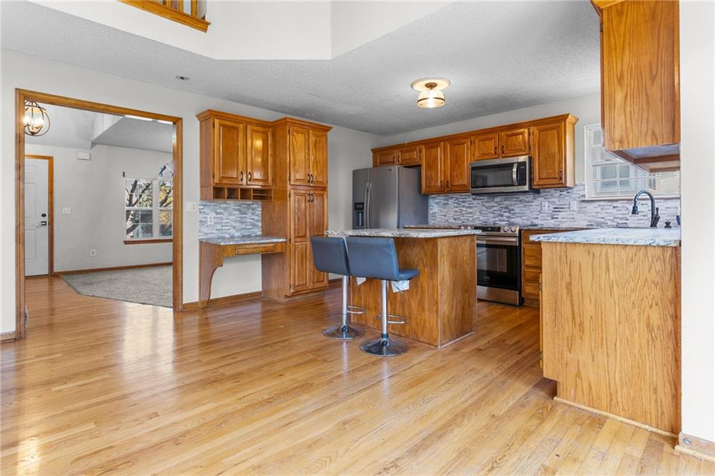 You'll immediately fall in love with this tri-level floor plan offering the perfect blend of open-concept for entertaining and bright, airy beauty! The formal living room, lower level family room and kitchen/dining area are flooded with natural light. The kitchen is perfect for entertaining friends or everyday meals. Ample cabinet space and tons of granite countertops, including an island that provides additional seating. The Primary Bedroom features an ensuite bath and vaulted ceilings, while the additional bedrooms are generously sized and provide space for family, guests, a home office or craft room. The fenced backyard boasts a flat green space that makes yard work a breeze! This layout ensures every square foot serves a purpose while providing the distinct separation of space you crave. Don't let this home pass you by. Schedule your showing TODAY!