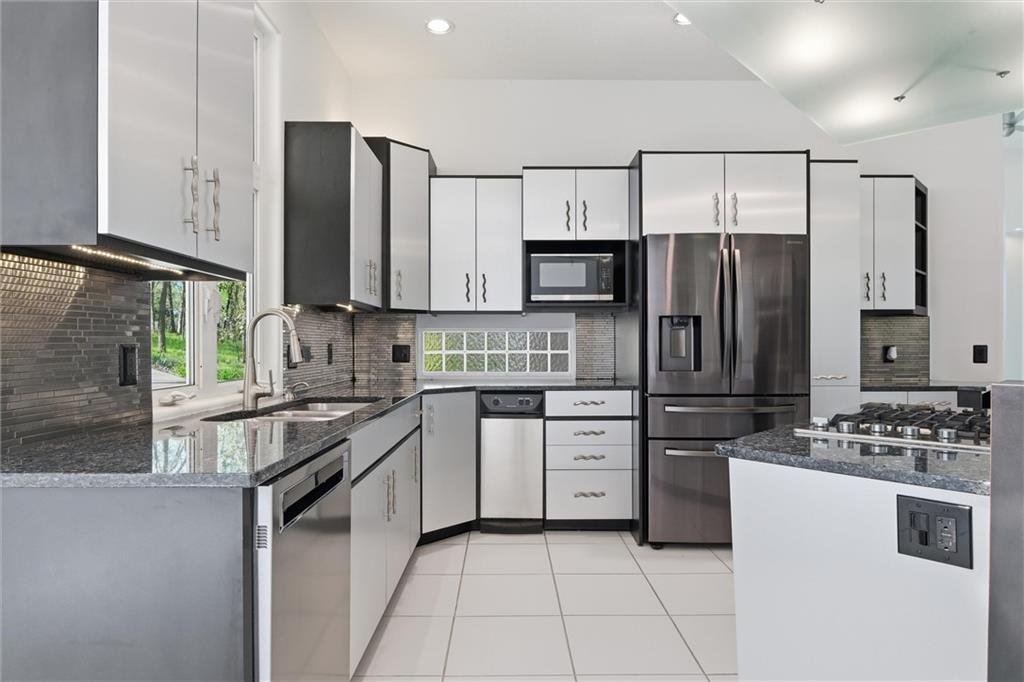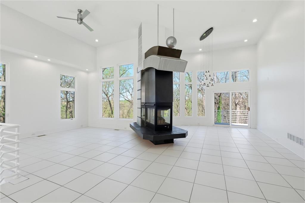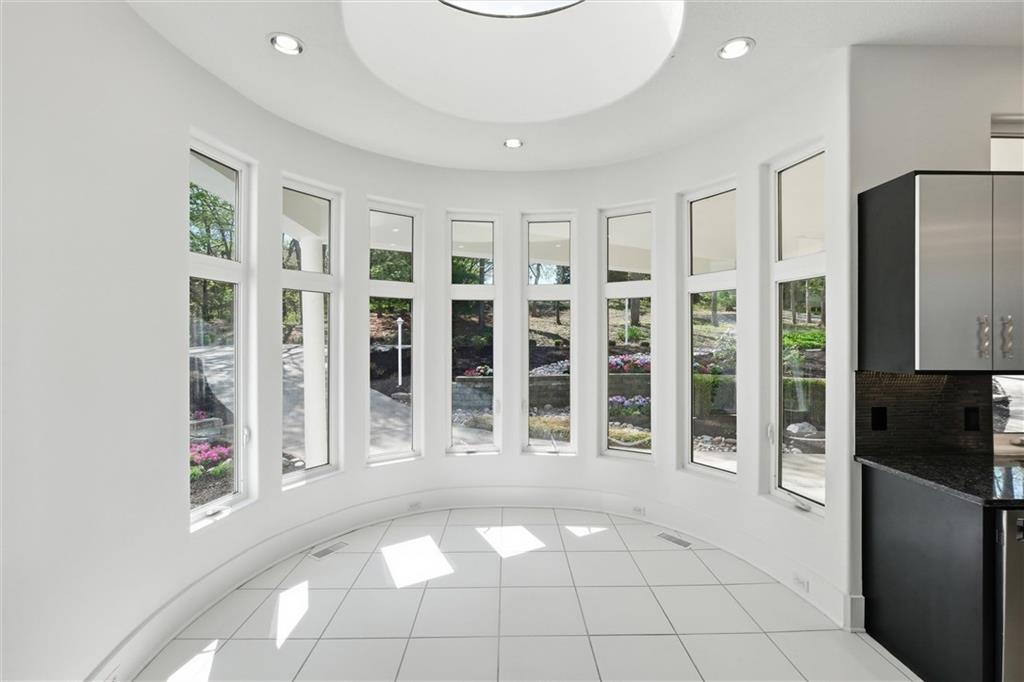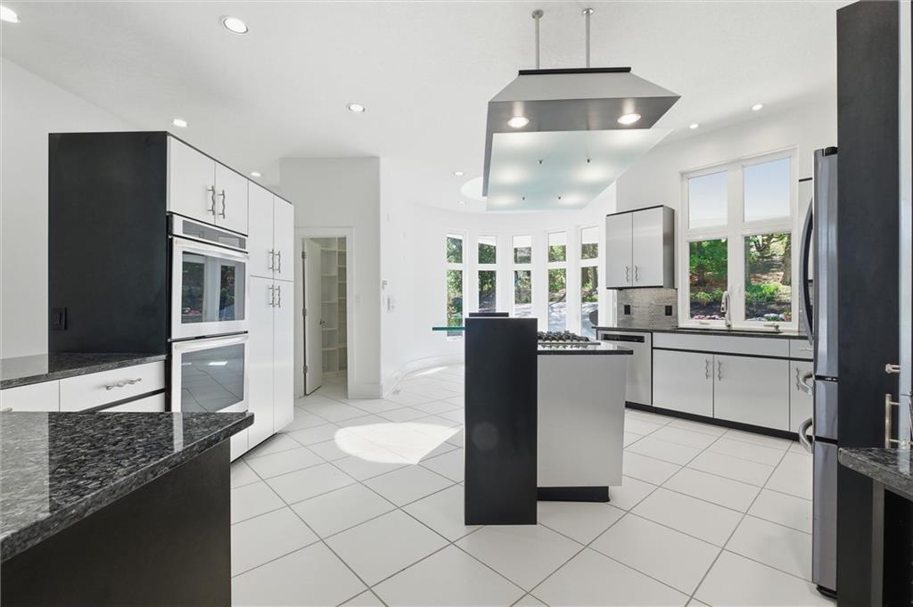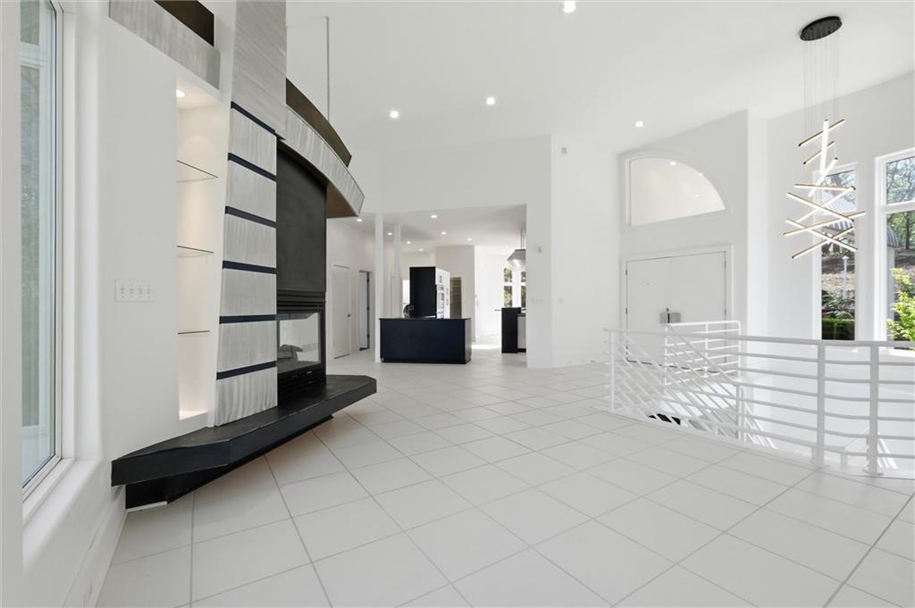 Experience a rare opportunity to own a living work of art. Masterfully designed by world-renowned architect Richard Meier, this custom-built residence is a symphony of light, geometry, and nature. Perched on a secluded cul-de-sac and nestled within a lush canopy of mature trees, the home embodies Meier's signature modernist aesthetic--a striking white silhouette that serves as a pristine canvas for the surrounding forest's vibrant colors. Wrapped in 5.19 acres of mature timber, this custom-built Richard Meier Estate offers the ultimate in architectural distinction and privacy. Designed to harmonize with its wooded surroundings, this contemporary reverse 1.5 story home features, soaring ceilings and an abundance of custom windows that frame breathtaking views from every angle. The main level is anchored by a chef's kitchen, bright and airy, round, eat in kitchen area, separate pantry, main level laundry room, and a grand living area featuring one of three see through fireplaces. Retreat to the primary suite, a true sanctuary with its own see-though fireplace, attached to a private study with patio access,. Relax in spa-like bath with a jacuzzi tub, separate walk-in shower, dual closets, dual vanities, dual toilet closets! The walk-out lower level is an entertainers dream, complete with a second full kitchen, a spacious family room, infrared sauna room, exercise room and seamless access to the outdoor patio and creek. True to the architect's vision, the home features soaring glass walls and expansive open spaces that seamlessly blur the boundary between indoors and out. Every angle is intentionally crafted to capture shifting natural light, creating an environment that feels both ethereal and grounded. This is more than a residence; it is a masterwork for the collector of fine architecture who seeks the ultimate harmony of space and site.