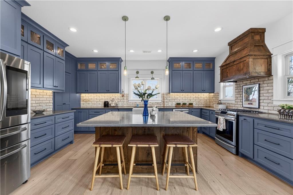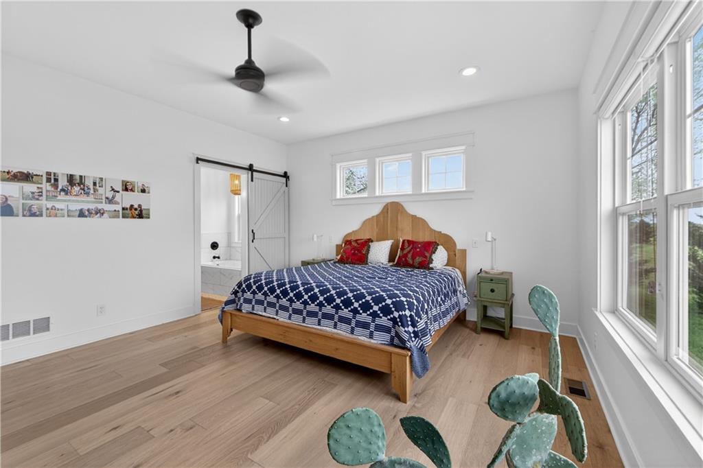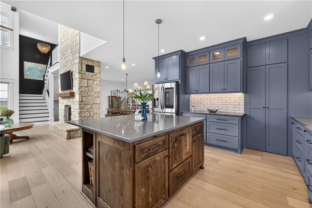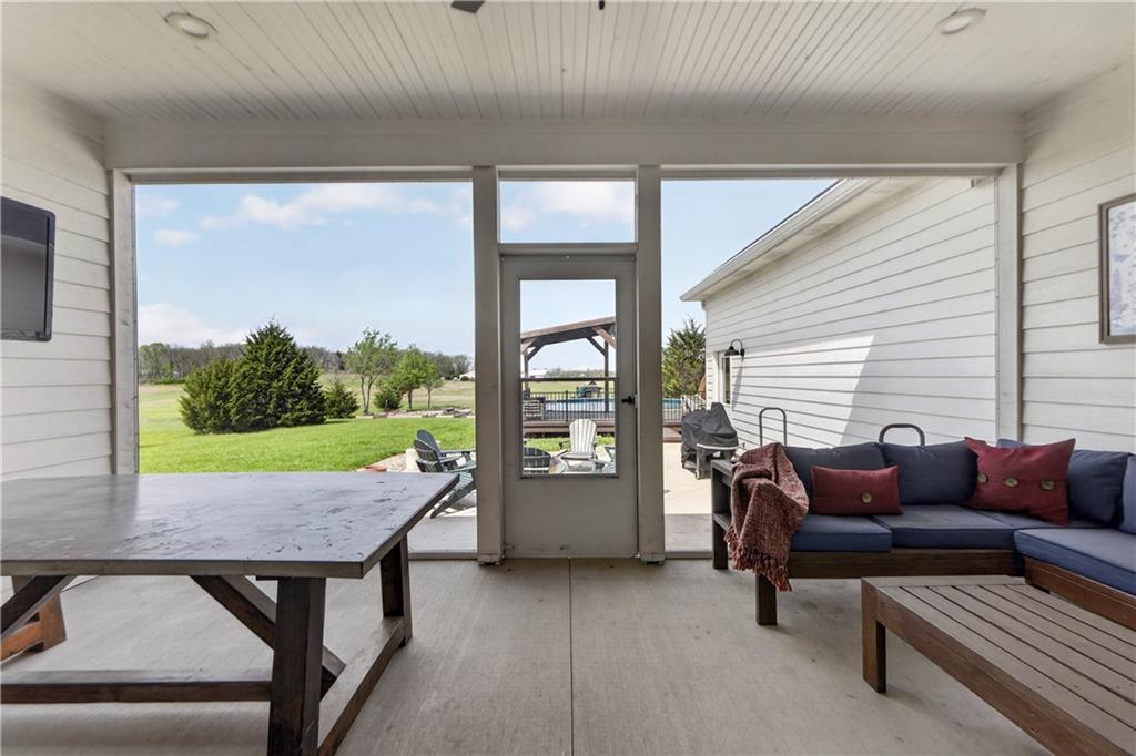 10 acres on blacktop — a rare blend of modern comfort and full-function hobby farm living. Built in 2020 as the sought-after builder’s personal residence, this open-concept home offers 6 bedrooms, 3.5 baths and 4,032 total sqft with thoughtful finishes throughout. Main living features include a dramatic two-story great room with abundant windows, wide-plank white oak engineered floors, a see-through fireplace between the dining room and living room, and a chef-ready kitchen flowing to living and entertaining spaces. The primary suite is conveniently located on the main level and opens to a large screened porch that, together with the dining room, leads out to an expansive concrete patio — ideal for indoor-outdoor living. Two oversized bedrooms upstairs include vanities/sinks plus a full upstairs bath; three additional bedrooms are located below grade. Practical comforts: main-level and basement laundry, an oversized two-car garage, and a large finished six-sided concrete storm shelter. Outdoor and outbuilding amenities are built for hobby farmers, equestrians, and weekend hosts. Approximately 2.5 acres are fenced and improved with a horse barn that has power and water. The back 5 acres serve as productive hay pasture. The 2,400 sqft barn/shop includes a 1,600 sqft insulated, heated & cooled shop space with two overhead doors and a full bath, plus an 800 sqft one-bedroom apartment with kitchen/living area, full bath, W/D hookups and a wraparound covered porch — perfect for rental income, guest quarters, or on-site help. Additional property highlights: chicken coop with power, water and indoor/outdoor access; raised-bed garden area with water run; a 33-ft above-ground pool with deck and awning for summer entertaining; and abundant acreage for riding, gardening, or expansion. Location is exceptional — just one mile from the new elementary school in the award-winning Basehor-Linwood School District.