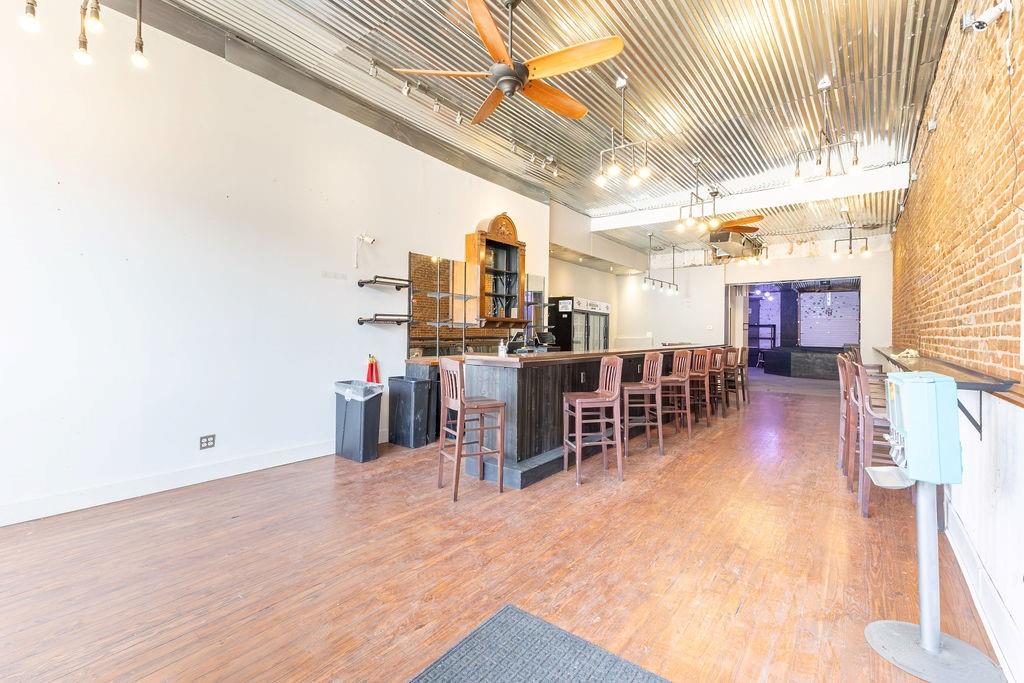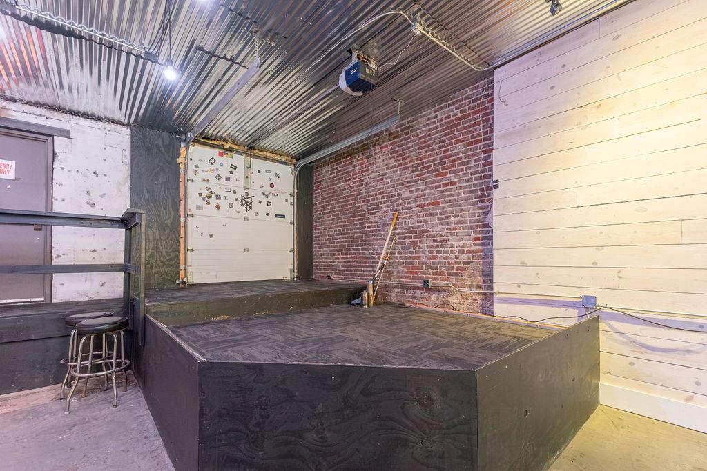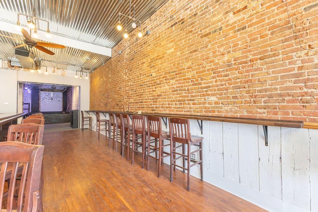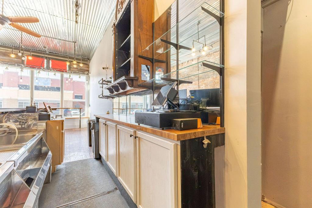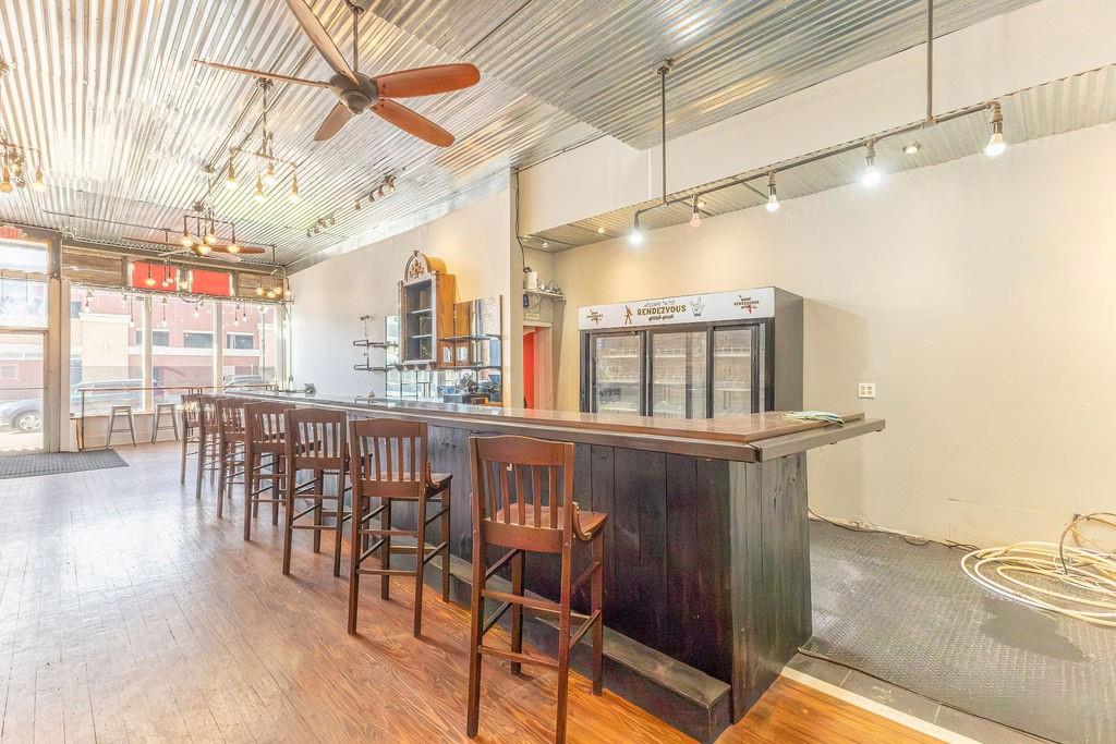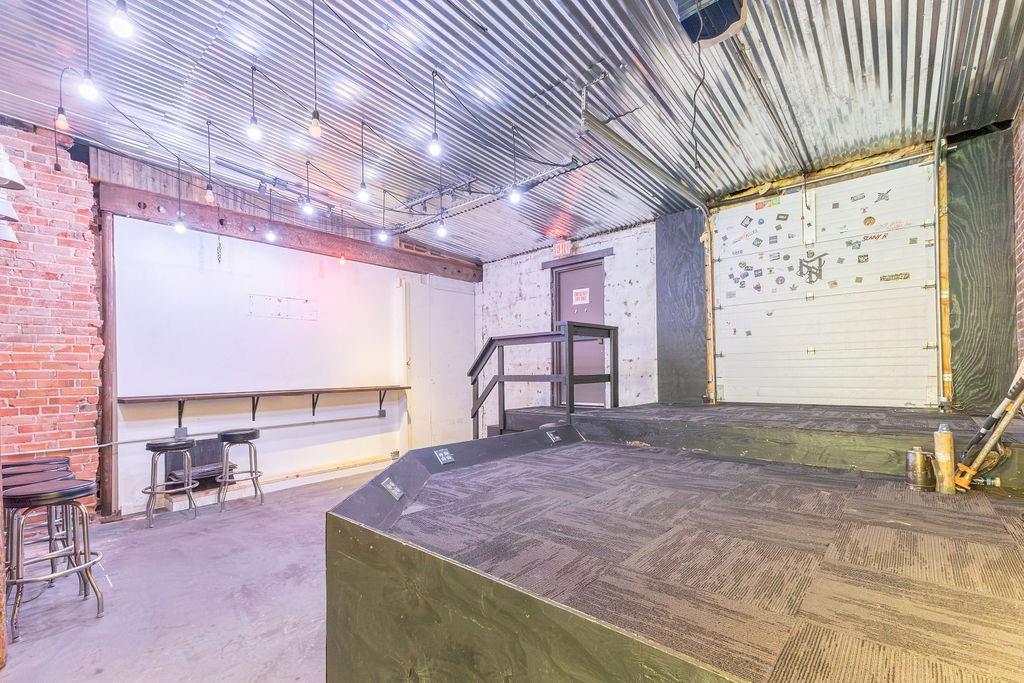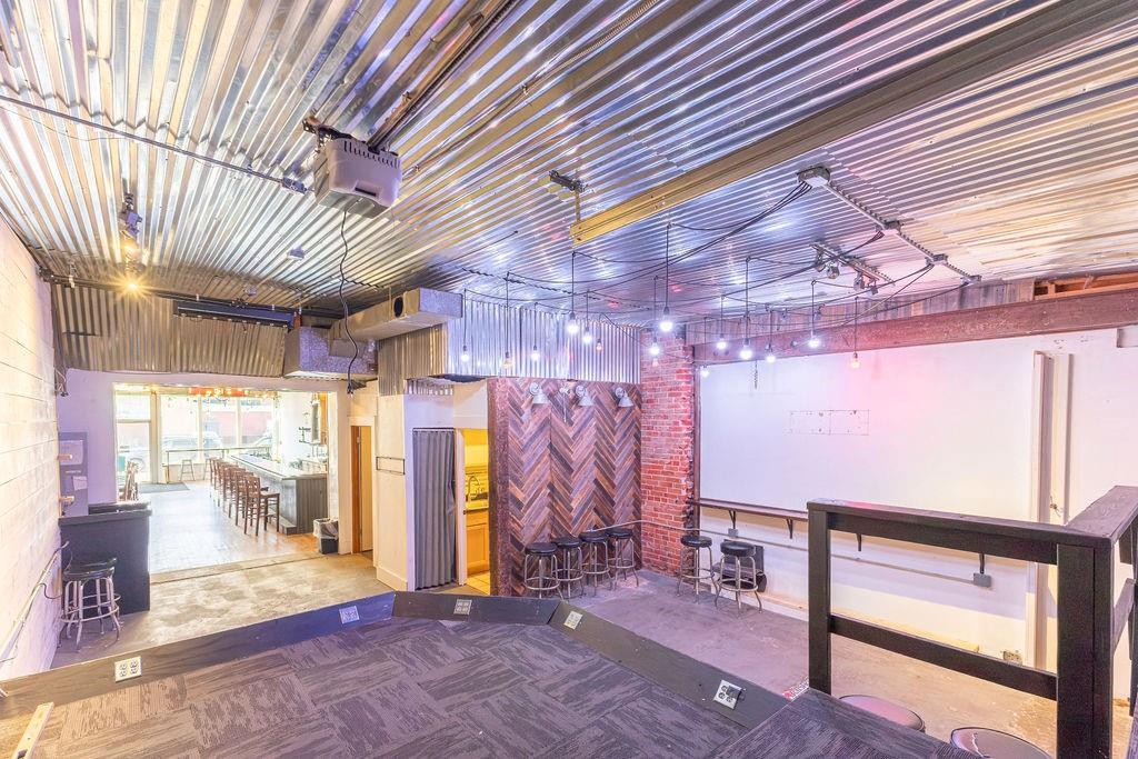 Steeped in 140+ years of history, this character rich mixed-use building is turnkey for a bar, restaurant, event venue, or retail concept. The main level features exposed brick, hardwood floors, a corrugated metal ceiling, large display windows, and a fully equipped bar with commercial sinks and a walk-in cooler. The rear of the space opens into a separate venue room with a raised stage, herringbone wood accent wall, Edison-style string lighting, and a roll-up garage door - ideal for live music, private events, or overflow. Rear alley access provides added utility. Upstairs, a 2 bedroom (non-conforming), 1 bath apartment offers rental income potential or owner occupancy. Basement storage, ample street parking, and a nearby public garage round out this rare downtown opportunity. Owner is licensed Realtor in the state of Missouri.