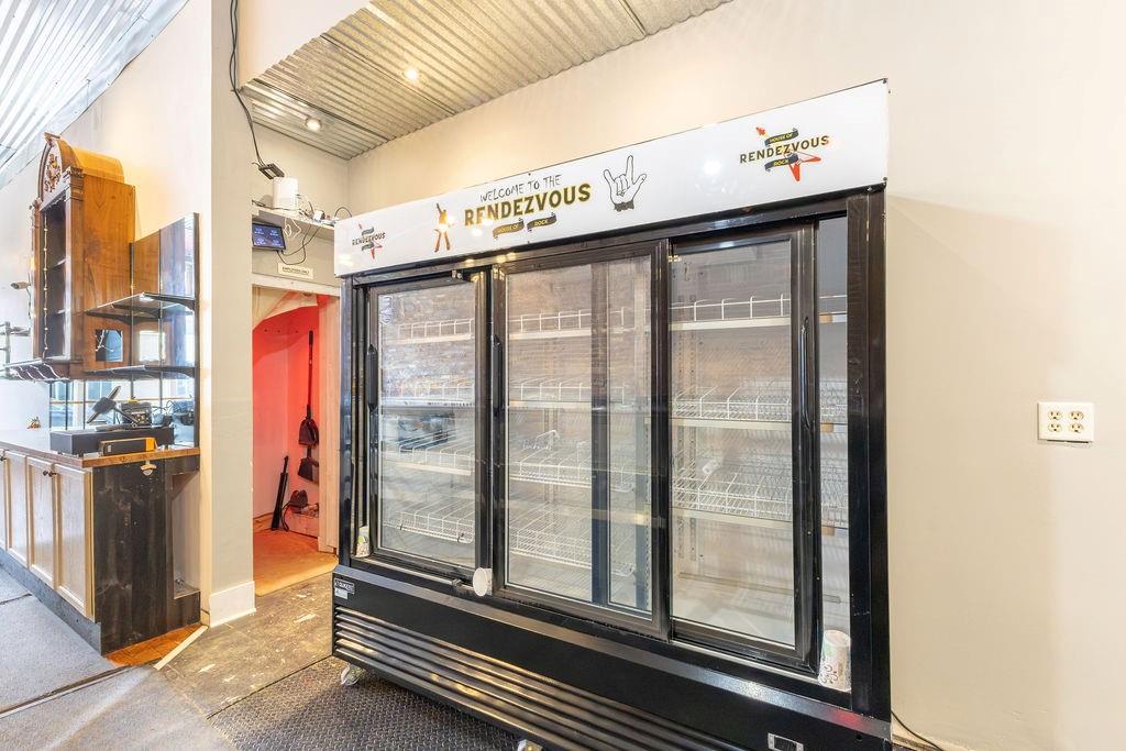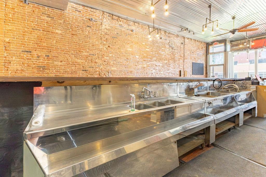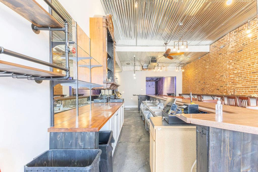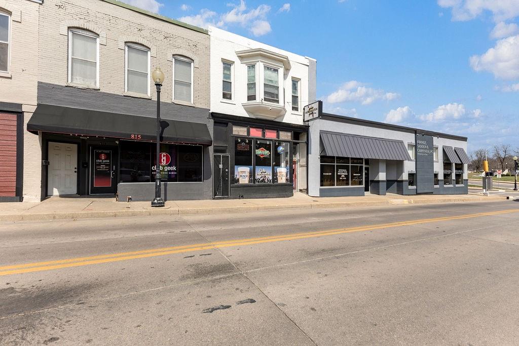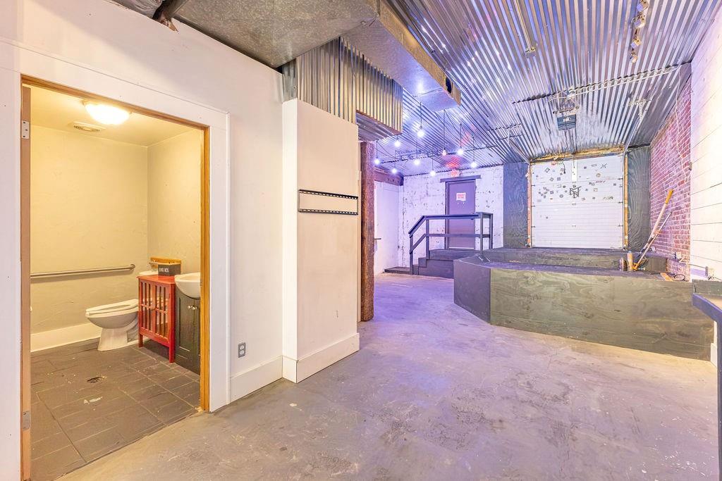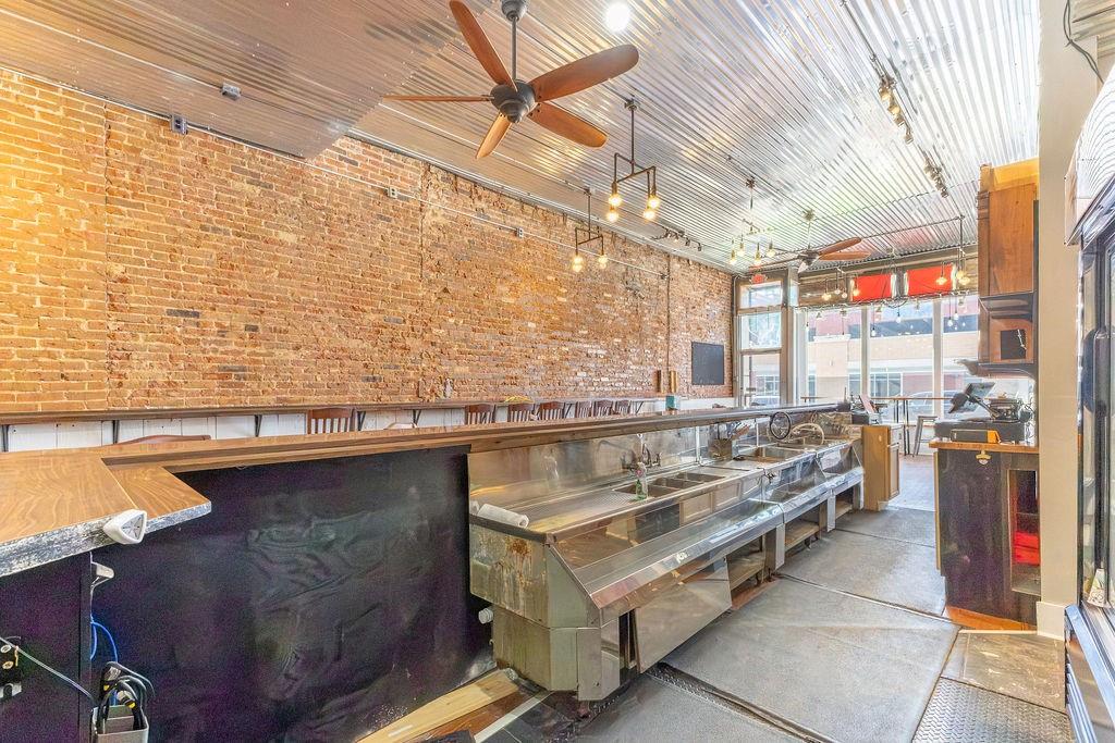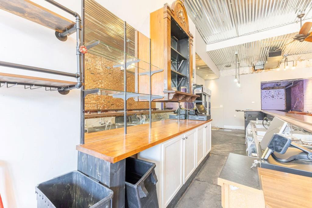 Steeped in 140+ years of history, this character rich mixed-use building is turnkey for a bar, restaurant, event venue, or retail concept. The main level features exposed brick, hardwood floors, a corrugated metal ceiling, large display windows, and a fully equipped bar with commercial sinks and a walk-in cooler. The rear of the space opens into a separate venue room with a raised stage, herringbone wood accent wall, Edison-style string lighting, and a roll-up garage door - ideal for live music, private events, or overflow. Rear alley access provides added utility. Upstairs, a 2 bedroom (non-conforming), 1 bath apartment offers rental income potential or owner occupancy. Basement storage, ample street parking, and a nearby public garage round out this rare downtown opportunity. Owner is licensed Realtor in the state of Missouri.
