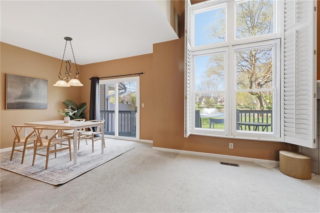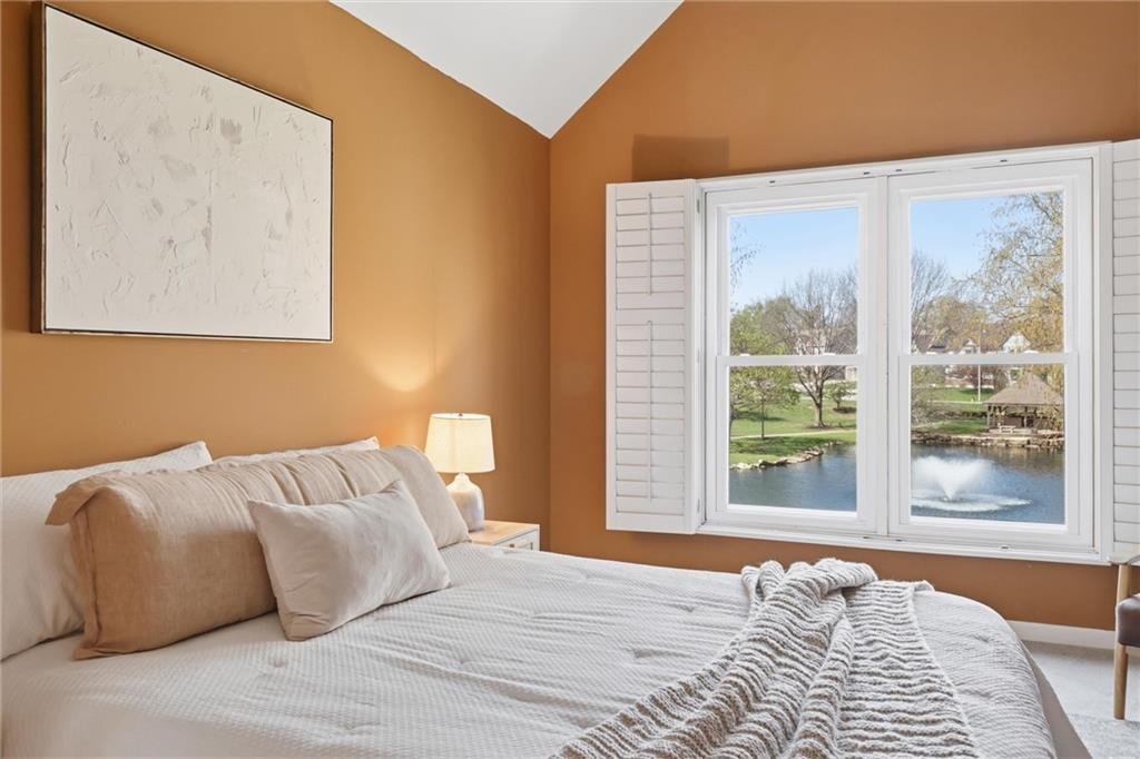 Nestled in the quiet, established community of Leawood Falls, this maintenance provided townhome offers a fantastic layout with large room sizes, high ceilings, and abundant natural light. The main level features a large entryway connecting garage, laundry, 1/2 bath and kitchen, in a very efficient floor plan. The living room, kitchen with breakfast nook and formal dining area have great views of the pond. The spacious living room offers double-height ceilings and feature a fireplace. The second story provides a sprawling primary suite with high ceilings and gorgeous pond views. This well maintained home is a pristine blank canvas ready for your personal touches. The second suite also has high ceilings, walk-in closet and full bathroom with tub/shower combo and glass doors. The 2-car garage is wide and long to fit most vehicles and some additional storage. Take advantage of the unfinished basement to expand into over 2,000 SF of living space with a 3rd bedroom. This lower level is stubbed for a 3rd full bath. This great space and sweet location price well under $400,000 in Leawood is unreal! Enjoy the ultimate lock-and-leave lifestyle with a comprehensive HOA that handles the exterior maintenance, lawn, and snow removal. Located just minutes from the best shopping and dining at Town Center. To the best of seller's knowledge, $302/month HOA fees includes: Lawn Maintenance and common area plants/trees maintenance and replacement Roof (repair), Concrete driveway maintenance, Exterior building painting, Insurance (covering building structure, does not include belongings or inside of studs), Water for sprinkler system, Snow Removal >2 inches, Gutter/downspouts repairs and maintenance. HOA amenities include: Club House, Exercise Room, Pool, Sport Court (Tennis/basketball courts), Pond -Catch and Release fishing, Walking Trails, Fountain, Trash service. *HOA docs and inclusions to be reviewed by buyers.