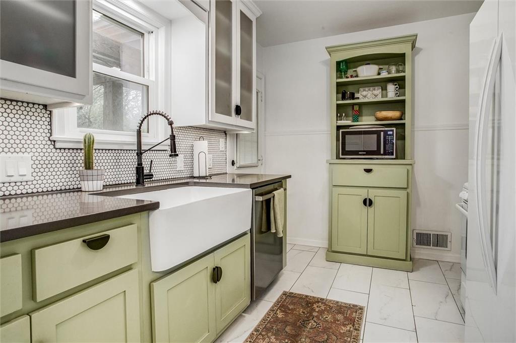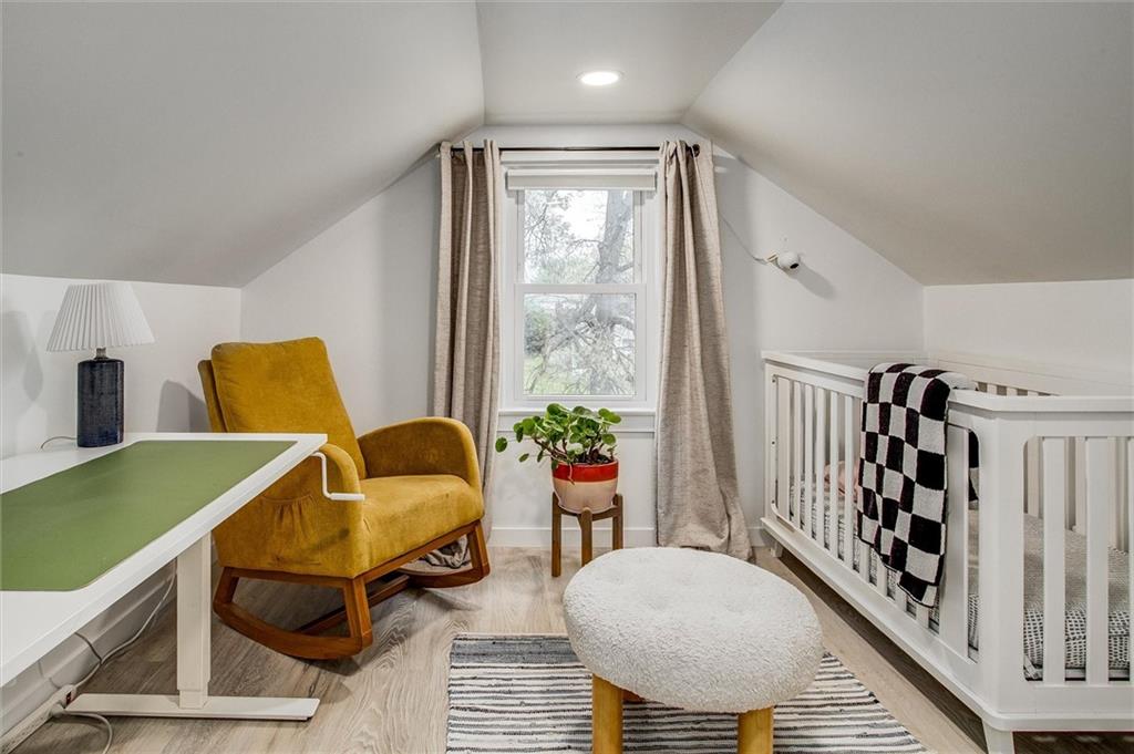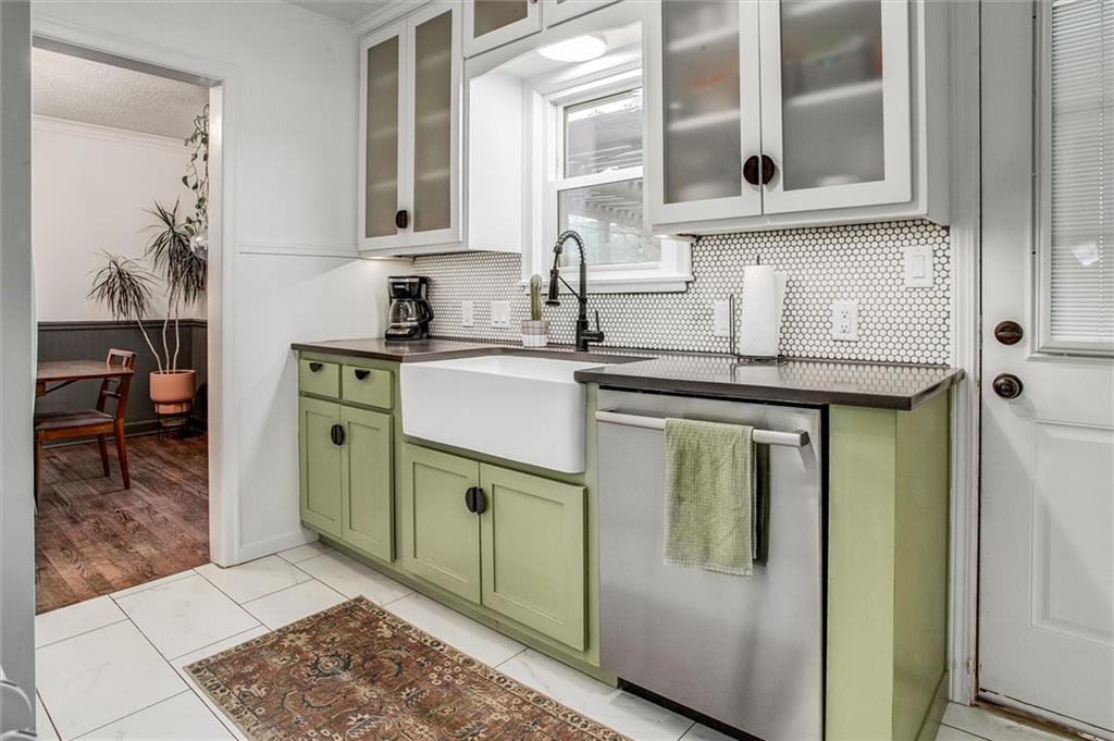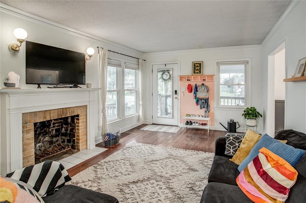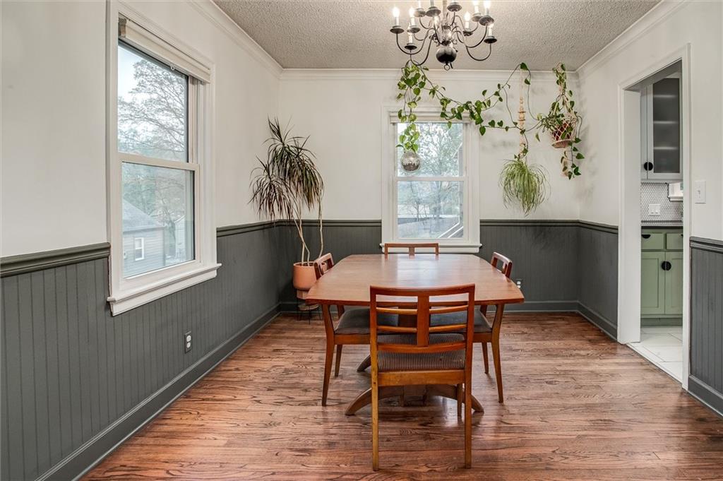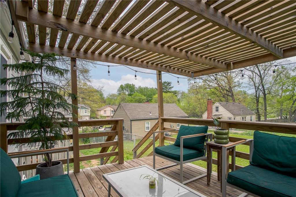 Stylish and full of charm — this beautifully updated 3-bedroom, 1-bath Cape Cod is anything but ordinary. Set on a generous lot, this 1.5-story brick and frame home welcomes you with a covered front porch made for morning coffee and evening unwinding. Step inside to find rich hardwood floors, crown molding, and cozy fireplace that anchors the warm and inviting living room. The adjacent dining room makes a statement with bold dark wainscoting and a stunning chandelier — a space that's as functional as it is memorable. The updated kitchen is the heart of the home — featuring sage green cabinetry, a farmhouse sink, penny tile backsplash, dark countertops, and frosted glass upper cabinets that perfectly blend vintage character with modern style. Upstairs, vaulted ceilings open up two versatile bonus spaces — ideal for a home office, playroom, nursery, or guest retreat. Outside, the pergola-covered back deck with string lights creates the perfect setting for entertaining or relaxing under the open sky, with lush yard space to enjoy throughout the seasons. Completing the package: a detached 1-car garage and a classic composition roof. All of this in the charming Sunny Slope subdivision — don't miss your chance to call this one home!