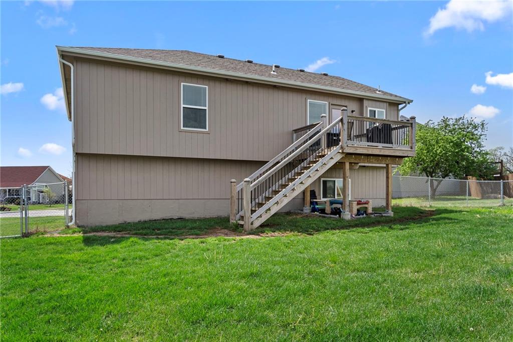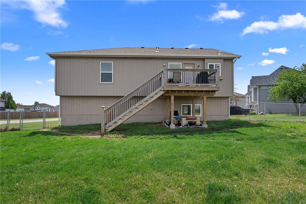 Beautiful 4-bedroom, 3-bath home only 4 years old, situated on a large corner lot with a fenced yard. Inside, you'll love the open-concept layout, featuring a stylish kitchen with white cabinetry, granite countertops, and a center island that flows into the dining area, with a walkout to the deck. The spacious primary suite offers a private bath with a double vanity and a walk-in closet. This functional layout features laundry on the main level and 2 additional bedrooms. The finished lower level provides another great living space, a fourth bedroom, and a full bath, ideal for guests or a private retreat. A blend of comfort, layout, and location!