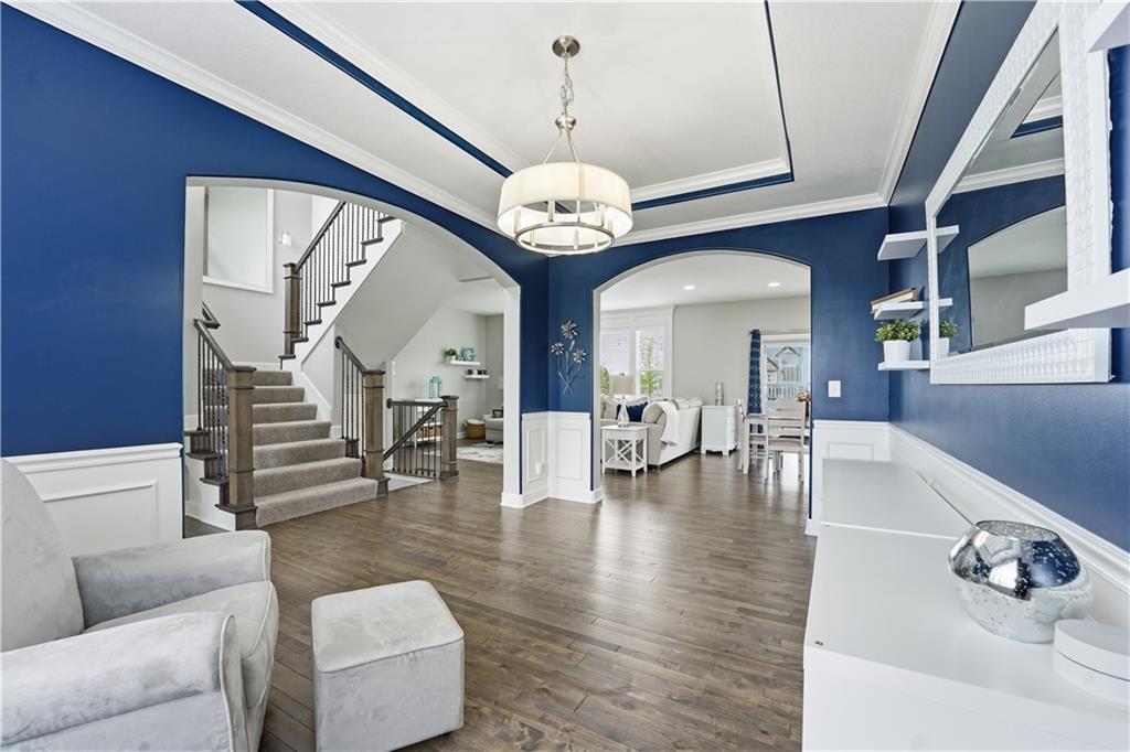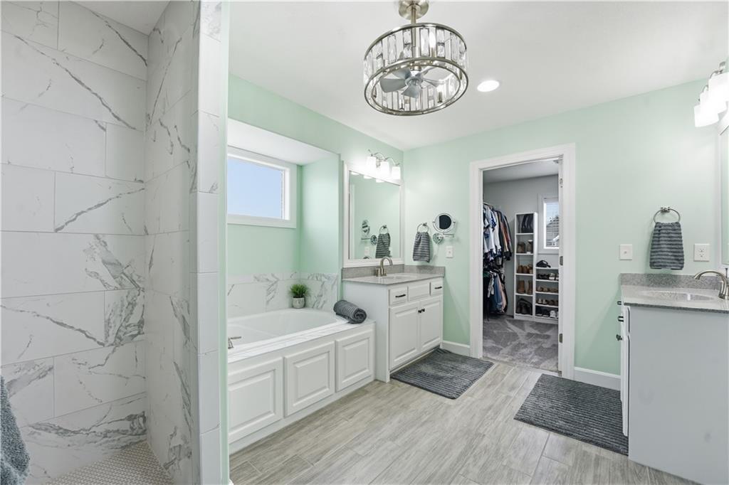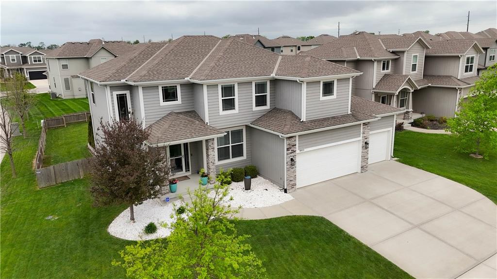 Don't miss this beautiful 2-story home in sought after Heather Ridge South. Spacious and beautiful 4-bedroom home with 3 full baths and 2 half baths! The entire main floor features gorgeous wood flooring, creating a warm and elegant feel throughout. The stunning kitchen offers painted cabinets, a large granite island, walk-in pantry, and newer gas stove and dishwasher—perfect for cooking and entertaining. The bedroom level features brand-new carpet, and every bedroom includes a walk-in closet for ample storage. The luxurious primary suite boasts a spa-like bath with a walk-in shower and whirlpool tub. Bedrooms 2 and 3 share a convenient Jack-and-Jill bath, while Bedroom 4 enjoys its own private en suite bath. The finished basement with an additional half bath provides excellent additional living and entertaining space. Step outside to enjoy the patio spanning the length of the home and partially covered for your enjoyment,. There is also a sprinkler system and a fence. Major mechanical updates include a 2-year-old furnace and air conditioner. The community offers exceptional amenities including a stocked fishing lake, heated pool with extended seasonal use, playground, picnic shelter, fire pit area and walking trails. This home perfectly blends comfort and style.