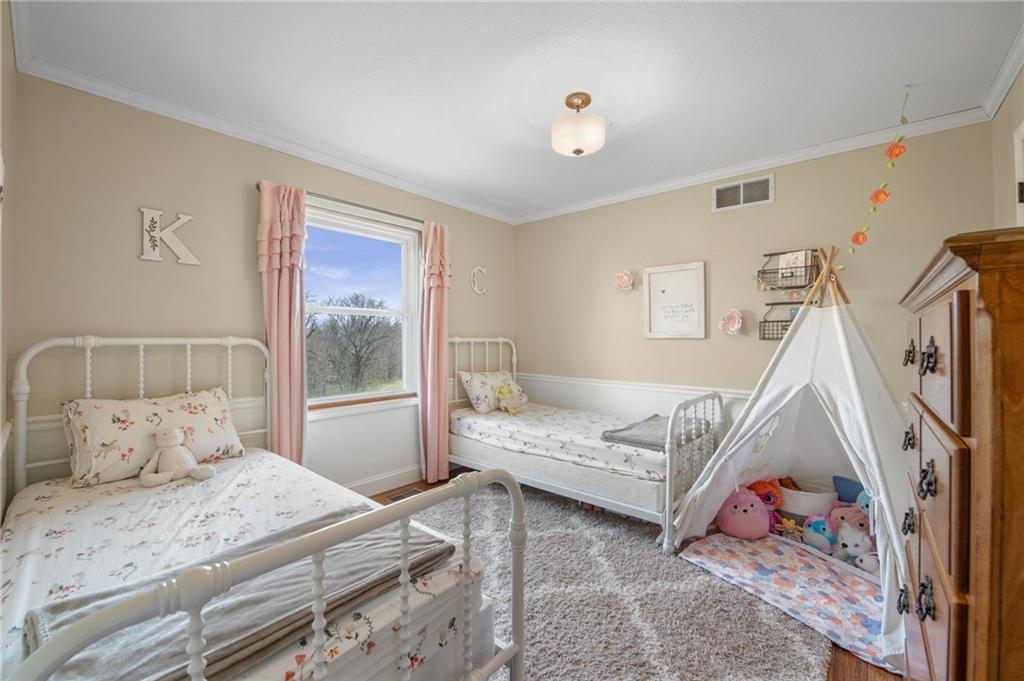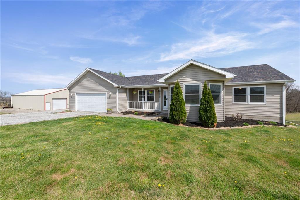 Set back off the road with room to breathe, this property gives you the kind of space most people only talk about. Sitting on 15 acres, the setting is a mix of open ground and woods, with trails already cut in, ideal for side-by-sides, quiet walks, or just getting out without leaving home. The main level is where everyday living happens. Hardwood floors run throughout, connecting a comfortable living area to the kitchen and dining space. Three bedrooms and two full baths are all on this level, along with laundry where you actually need it. Downstairs, the finished walkout basement adds flexibility. There’s a large recreation space, an additional bedroom and full bath, plus room for a home gym or office. LVP flooring keeps it durable and low maintenance. Step outside and it starts to feel like a different pace. The 40x60 outbuilding is already set up with electricity and a 220 hookup, ready for equipment, hobbies, and projects. There’s also groundwork started for horses, with fencing and a stable in progress. The land itself is usable and inviting, with a partially wooded layout that offers privacy and space to explore. There’s even a natural spot for a campsite tucked into the property. And if you want more to roam, Happy Holler Conservation Area sits right across the highway, with a stocked lake for fishing and trails for hiking. It’s the kind of place where you can spread out, slow down, and actually use the land.