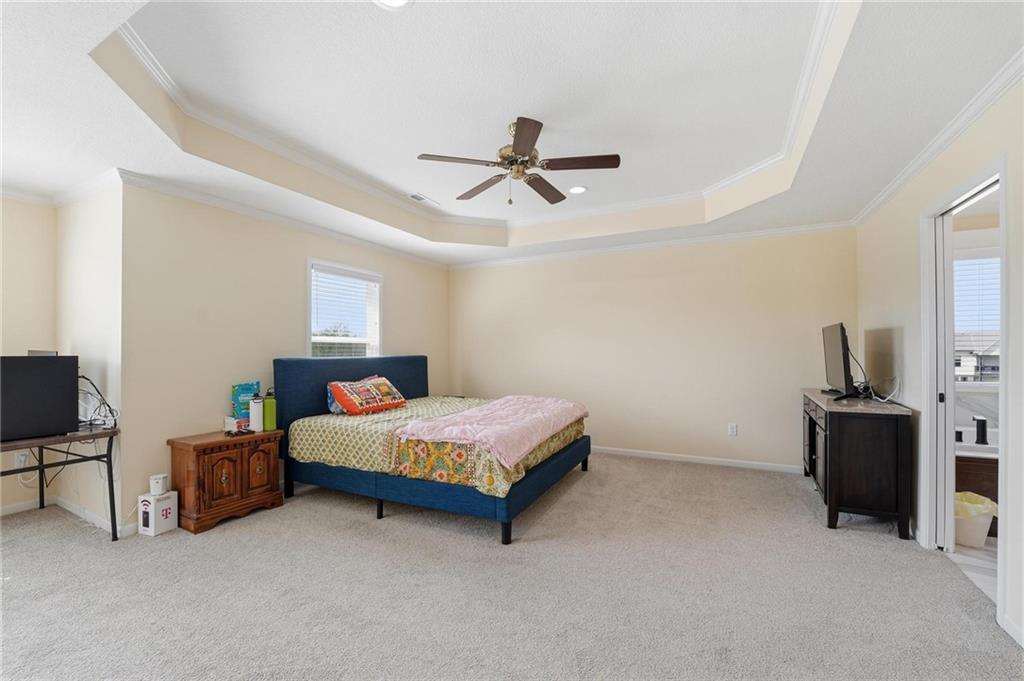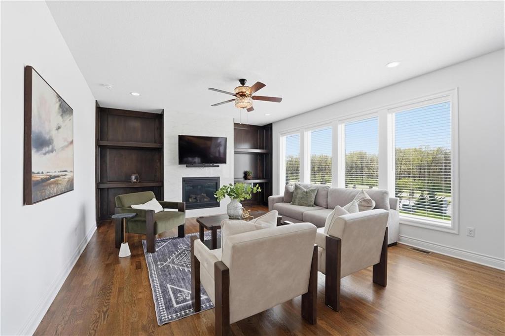 This stunning custom Landon II 2-story home offers a perfect blend of modern elegance and functional design within the prestigious Willows community. Situated in a prime location within the top-rated Blue Valley School District, this residence sits on a desirable walk-out lot with a sought-after east-facing orientation, ensuring an abundance of natural sunlight throughout the day. The main level features an expansive open floor plan highlighted by a Great Room with a gas fireplace, a gourmet kitchen equipped with a large island and walk-in pantry, and a sun-drenched dining area. This thoughtfully designed layout includes four full bathrooms, with one conveniently located on the main level. Upstairs, the luxurious master suite serves as a private retreat with a tray ceiling, dual vanities, a soaking tub, and a massive walk-in closet. Three additional spacious bedrooms ensure comfort for the whole family. Outdoor enthusiasts will appreciate the nearby nature trails, while the covered deck, three-car garage, and unfinished walk-out basement provide exceptional utility and room for future expansion.