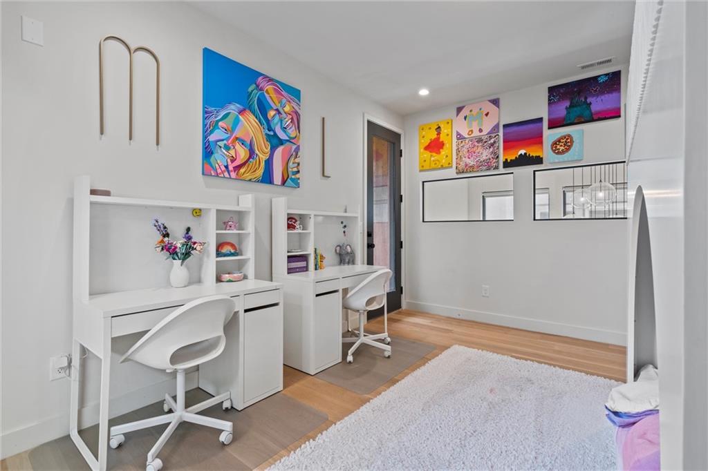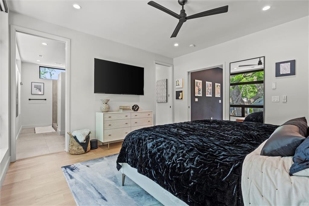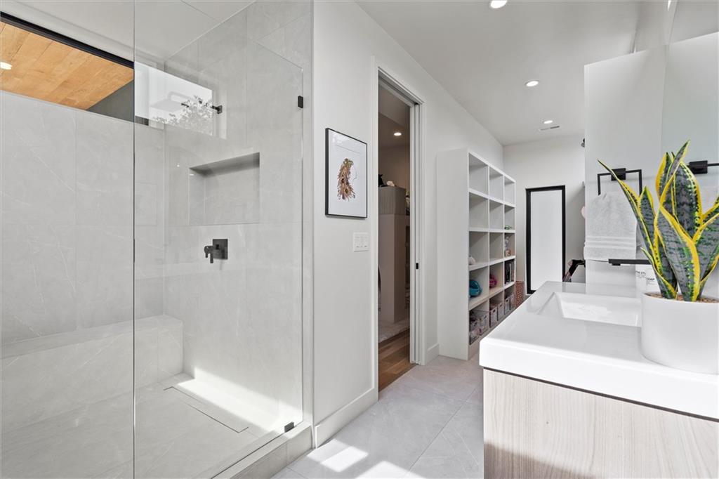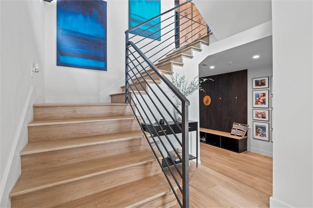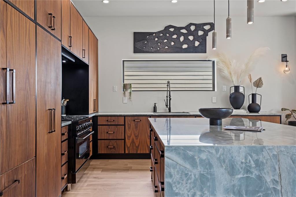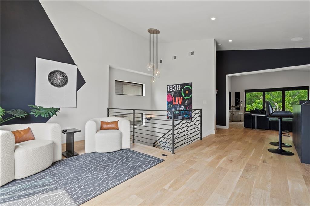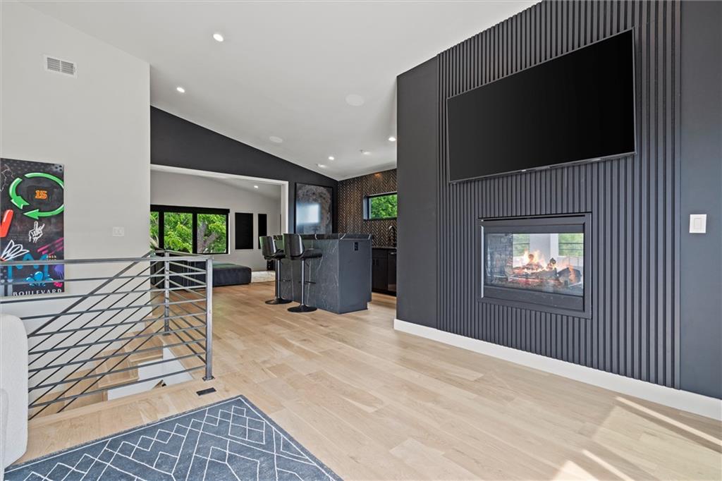 Discover this stunning custom-built home in the heart of Kansas City's sought-after West Plaza neighborhood. With an unbeatable location just minutes from Westport, The Country Club Plaza, and the Nelson Atkins Art Museum, this 2022 Artisan Home is an entertainer's dream. The exterior features gas lanterns, stucco, and a glass garage door with powder coated black metal framing, providing ample off-street parking with a three-car garage. Inside, you'll find 7-inch white oak hardwood floors, custom-fabricated steel railings, and Restoration Hardware light fixtures throughout. The second level includes a kitchen with inset walnut cabinets, hidden appliances, and stunning azul quartz countertops from Italy, leading into the main living area with an 80-inch gas fireplace and floor-to-ceiling charcoal concrete. The dining room features a 24-foot vaulted ceiling and large windows with electric blinds. The home offers multiple outdoor spaces, including concrete patios, a privacy-fenced backyard, and a 200-square-foot rooftop deck with views of the Country Club Plaza. With two primary suites, a potential fifth bedroom, and a top-floor movie theater with a soundproofed entertainment area, this home truly has it all. Freshly painted interior. Sellers are willing to include the home theatre equipment with an acceptable offer. Don't miss your chance to own this masterpiece in West Plaza.