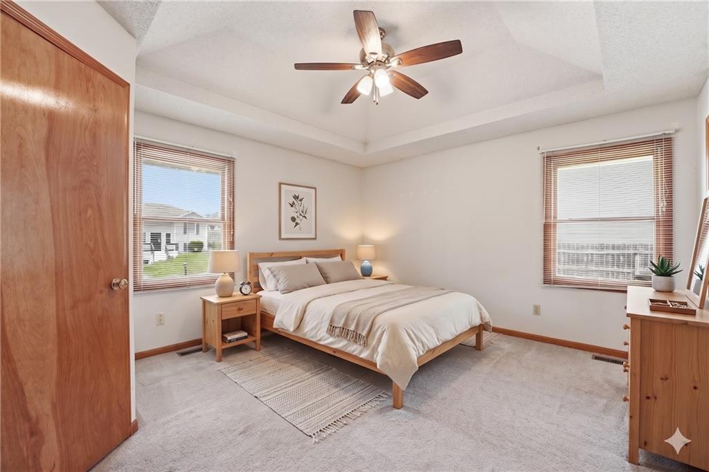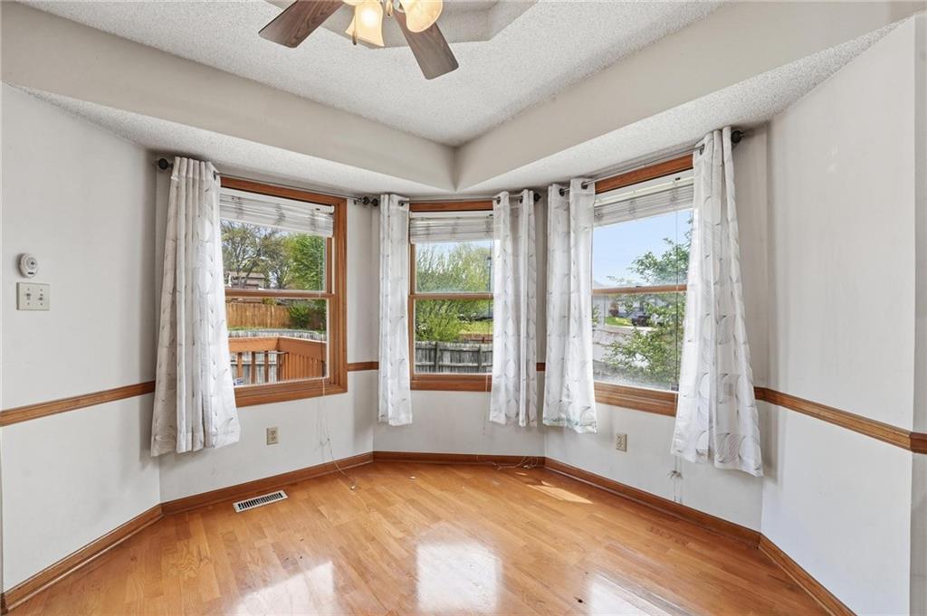 This well-maintained home offers a comfortable and functional layout with a mix of inviting living spaces and practical features. The kitchen is equipped with laminate countertops, luxury vinyl plank flooring, a pantry, and an eat-in area, creating a bright and efficient space for daily living. The main living area features carpeted flooring and a ceiling fan, providing a cozy setting to relax or entertain. The primary bedroom includes a walk-in closet, while additional bedrooms offer ample space and storage. Bathrooms are thoughtfully distributed, including a main floor full bath with a tub/shower combination and a jacuzzi feature, a private primary bath, and an additional full bath in the basement. The unfinished basement provides excellent potential for future expansion or storage and also includes the laundry area and utility space. Outside, the fenced backyard offers privacy and room to enjoy outdoor activities.