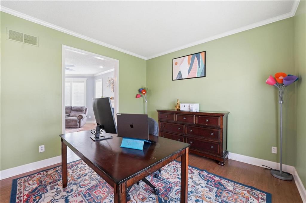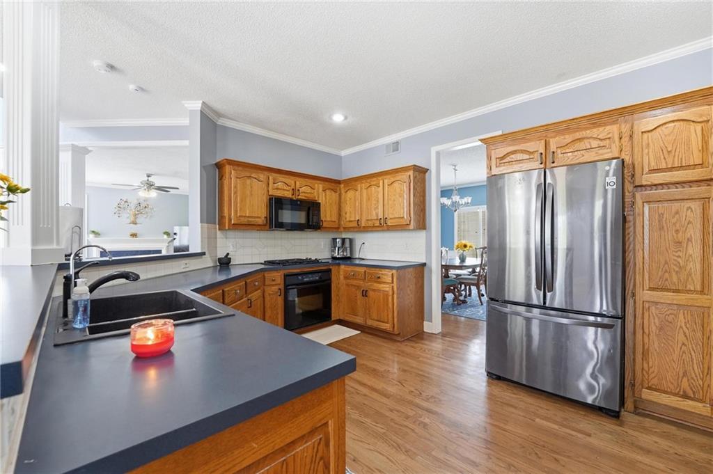 Fabulous corner cul-de-sac lot in the highly desirable Shadow Brook community! This hard-to-find home is perfectly situated within the sought-after Lakewood Elementary and Middle School boundaries. The interior has been stunningly updated with brand-new hardwood flooring throughout both the main and second floors, offering a seamless and luxurious feel. The flowing main level is designed for modern living, featuring a spacious great room, formal dining area, and a cozy hearth room. The oversized kitchen is a chef’s dream, now featuring a premium gas range and a massive footprint that provides space for a convenient main-floor home office. Retreat to the upper level where you'll find generous secondary bedrooms and an expansive primary suite complete with a private sitting area and fireplace. The finished daylight lower level adds significant living space with a large family room, recreation area, a full bathroom, and substantial storage. Peace of mind comes standard with a brand-new roof, newer exterior paint, and high-end mechanicals including a radon mitigation system and water purifier. Step outside to an incredible outdoor oasis featuring a newer deck overlooking a lush backyard filled with mature trees and professional landscaping. The unique drive-through driveway provides effortless access to the front of the home and the oversized three-car garage. Tucked away for privacy yet minutes from Target, Starbucks, and local dining, this home offers the perfect blend of seclusion and convenience.