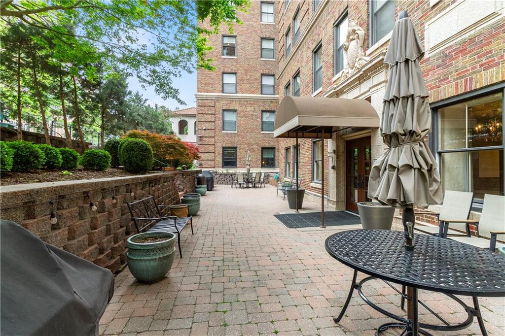Live in the iconic Hemingway Condominiums just steps from the Country Club Plaza. This rare 2-bed, 2-bath unit offers 1,542 sq ft—one of the larger floor plans in the building. Located on the first floor for easy access, this home sits on the quiet south side and remains highly secure within a gated building with 24-hour doorman service. The spacious, light-filled layout features generous living and dining areas and a functional kitchen with ample storage. The primary suite includes an en-suite bath, great closet space, and in-unit laundry conveniently located within the master closet. The second bedroom offers flexibility for guests or a home office. Enjoy premium amenities including valet parking, secure entry, fitness facilities, garage parking, and a rooftop terrace with stunning Plaza views. A rare combination of size, location, and convenience—this is Plaza living at its best.