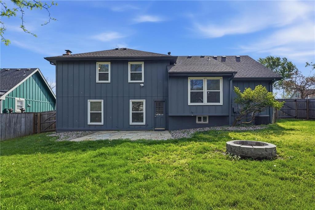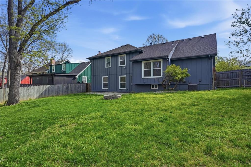 NEW ROOF, GUTTERS & WINDOW WRAPS 4/22/2026! Large home in The Coves has been updated and upgraded! 2020-new windows, exterior paint & siding repairs. Most of privacy fence was replaced. 2022 renovated primary suite bathroom. Open front door to find a large, open home. Entry has wood floor, vaulted ceiling. To the left is living room with large picture window, open to formal dining room. Wood floor from entry continues through to kitchen & breakfast room with windows offering great light & view of private backyard. Granite countertops & painted cabinets for updated look. Few steps down to fantastic family room with brick fireplace, large windows and door out to spacious stone patio & level backyard with privacy fence, firepit, mature trees. 1/2 bath and large laundry room on this level as well. Up a short flight of stairs to the bedroom level of the home. Primary suite is at the back corner of the home, for quiet privacy. This spacious bedroom offers vaulted ceiling with ceiling fan, 2 BIG closets and private bath. Bath was updated with brand new vanity w/granite top, new plumbing & light fixtures. Large shower with custom tiled walls, bench along back wall. On this level there are 3 additional bedrooms that offer great closet space. All bedrooms have ceiling fans. Hall bath has large vanity with plenty of storage and counterspace, tile floor & shower over tub. Just a partial flight of stairs down from family room to sub basement. Tremendous amount of storage on this level. Home also offers an oversized garage, room for 2 vehicles & plenty of storage space. Kitchen refrigerator, laundry washer & dryer, nest thermostat all stay! Prior owner had sewer line replaced from home to city sewer line, and new cleanout access was added. Seller replaced one of the window wells for the sub basement, improved grading around foundation.