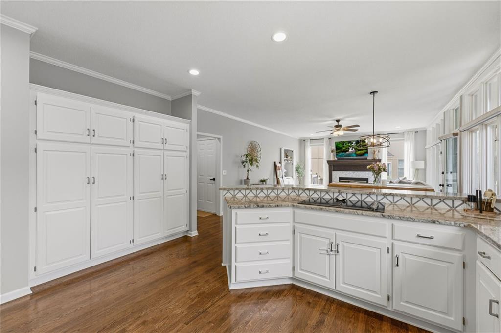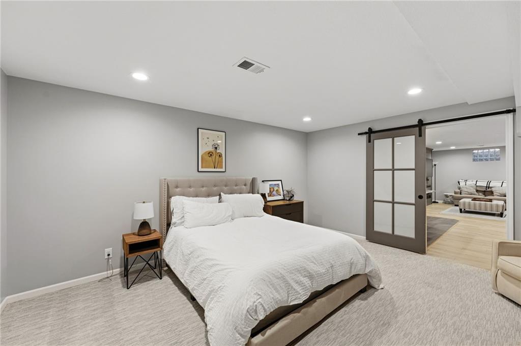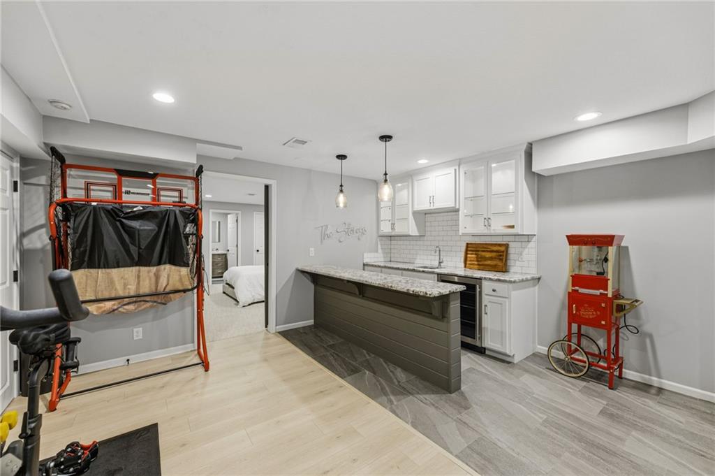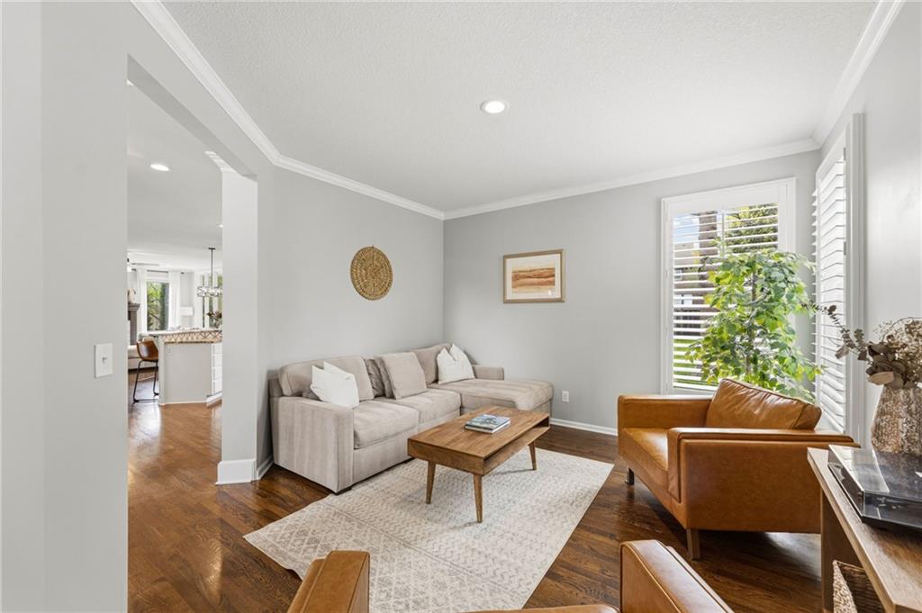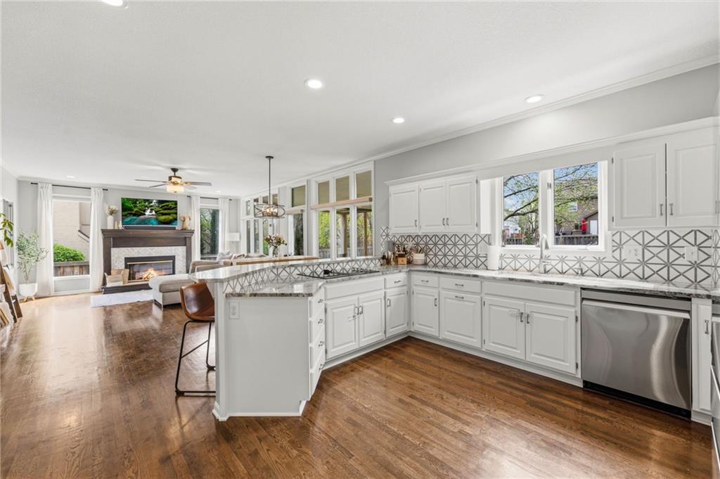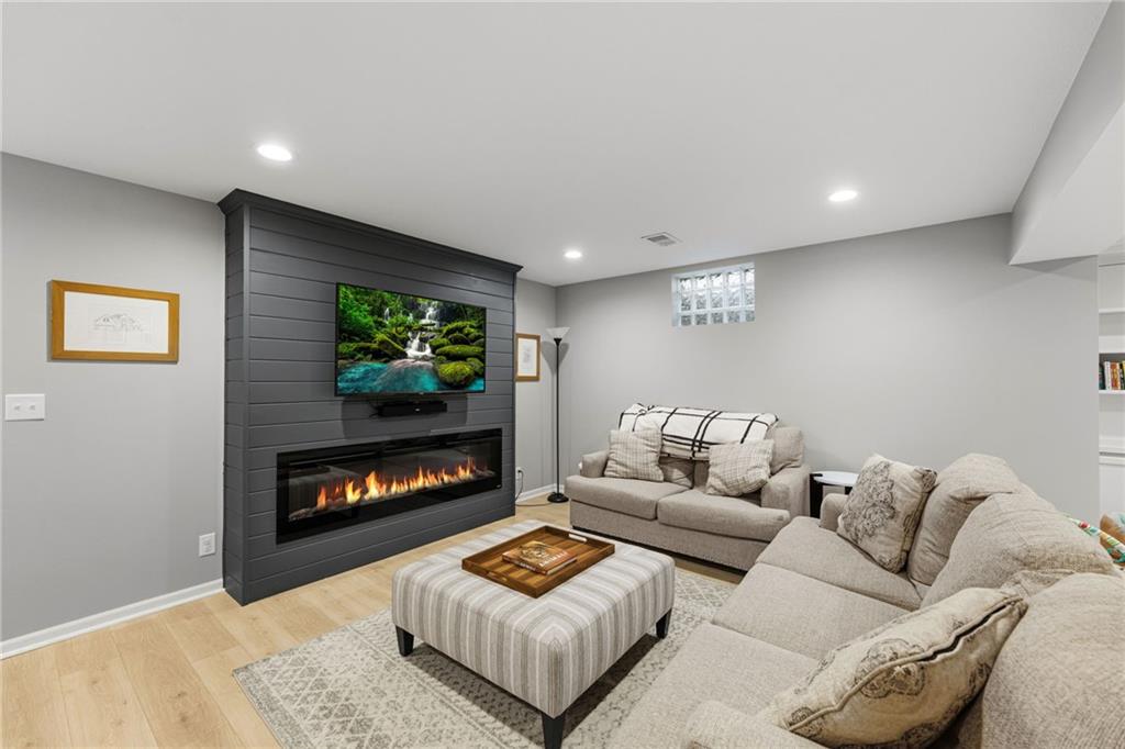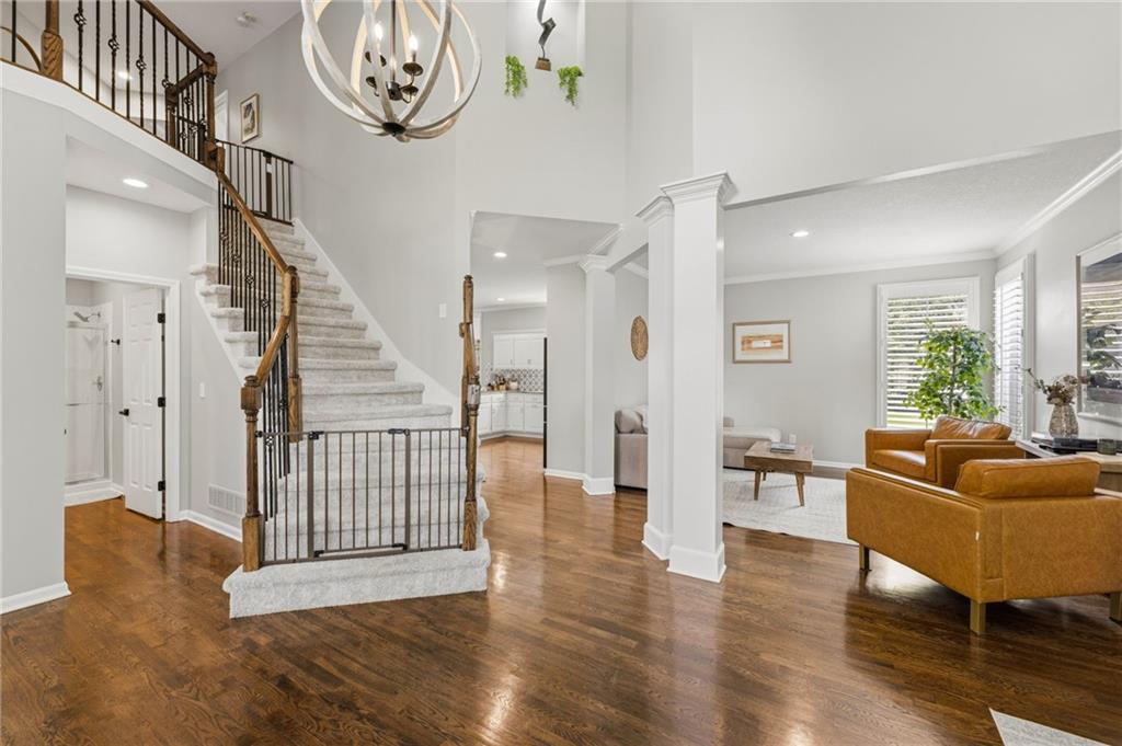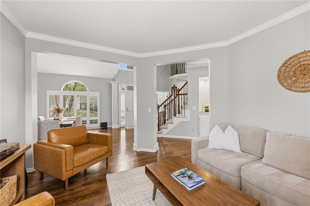 This home offers an impressive blend of luxury, functionality, and an unbeatable location. Step inside to a spacious, light-filled interior featuring designer finishes and quality craftsmanship throughout. Hardwood floors anchor the main level, where a thoughtfully designed layout offers multiple living and dining spaces—perfect for both everyday living and effortless entertaining. Enjoy a large, inviting family room ideal for gathering, along with additional living areas that provide flexibility for relaxing, working, or hosting guests. The home also features multiple dining spaces, including a formal dining room for special occasions and more casual areas for everyday meals. Soaring vaulted ceilings and generously sized rooms create a bright, airy atmosphere showcasing the home beautifully. Freshly painted inside and out, the property also boasts numerous upgrades throughout. The stunning gourmet kitchen is a true centerpiece, complete with stainless steel appliances, quartz countertops, and abundant white cabinetry. A well-appointed main-level bedroom provides added flexibility, ideal for guests, multigenerational living, or a private office retreat. Additional highlights include a composite roof replaced less than two years ago, and a lower-level recreation room featuring new LVT flooring, a cozy fireplace and wet bar—ideal for relaxing or hosting guests. A non-conforming sixth bonus room and a convenient half bath complete the lower level. For those who enjoy the outdoors, the newly screened porch offers the perfect retreat. Unwind with a good book while taking in peaceful sunset views over the private fenced backyard. Located in a highly sought-after neighborhood, this home is just minutes from Town Center, offering a variety of dining and shopping options, as well as nearby parks with scenic walking and biking trails.