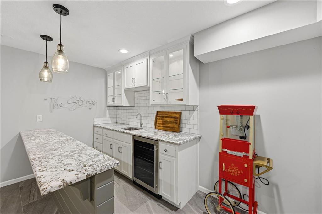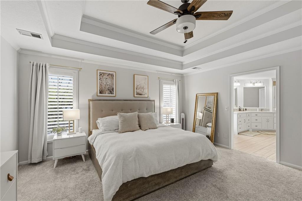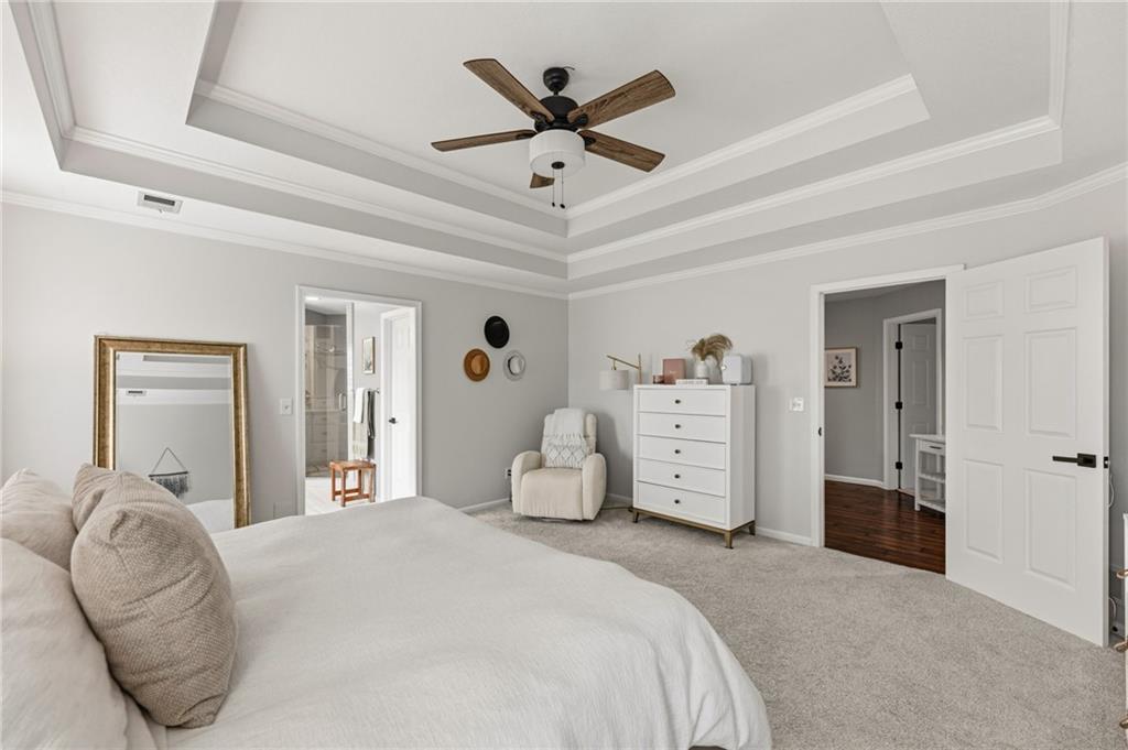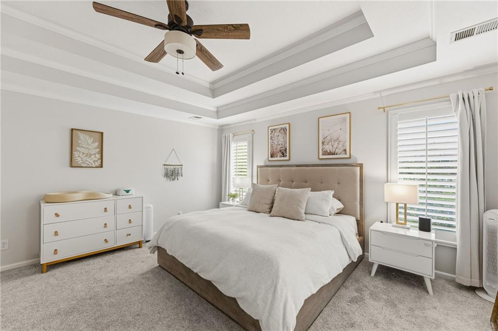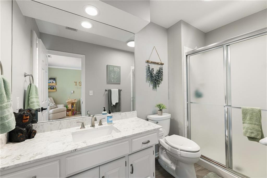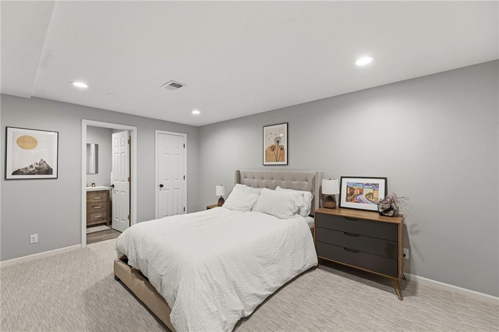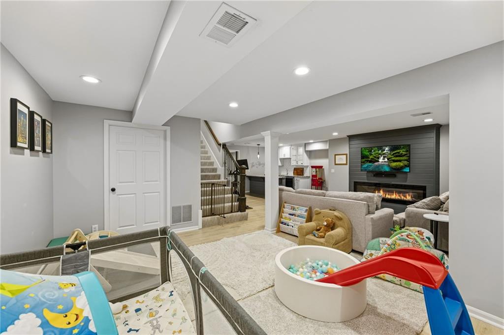 This home offers an impressive blend of luxury, functionality, and an unbeatable location. Step inside to a spacious, light-filled interior featuring designer finishes and quality craftsmanship throughout. Hardwood floors anchor the main level, where a thoughtfully designed layout offers multiple living and dining spaces—perfect for both everyday living and effortless entertaining. Enjoy a large, inviting family room ideal for gathering, along with additional living areas that provide flexibility for relaxing, working, or hosting guests. The home also features multiple dining spaces, including a formal dining room for special occasions and more casual areas for everyday meals. Soaring vaulted ceilings and generously sized rooms create a bright, airy atmosphere showcasing the home beautifully. Freshly painted inside and out, the property also boasts numerous upgrades throughout. The stunning gourmet kitchen is a true centerpiece, complete with stainless steel appliances, quartz countertops, and abundant white cabinetry. A well-appointed main-level bedroom provides added flexibility, ideal for guests, multigenerational living, or a private office retreat. Additional highlights include a composite roof replaced less than two years ago, and a lower-level recreation room featuring new LVT flooring, a cozy fireplace and wet bar—ideal for relaxing or hosting guests. A non-conforming sixth bonus room and a convenient half bath complete the lower level. For those who enjoy the outdoors, the newly screened porch offers the perfect retreat. Unwind with a good book while taking in peaceful sunset views over the private fenced backyard. Located in a highly sought-after neighborhood, this home is just minutes from Town Center, offering a variety of dining and shopping options, as well as nearby parks with scenic walking and biking trails.