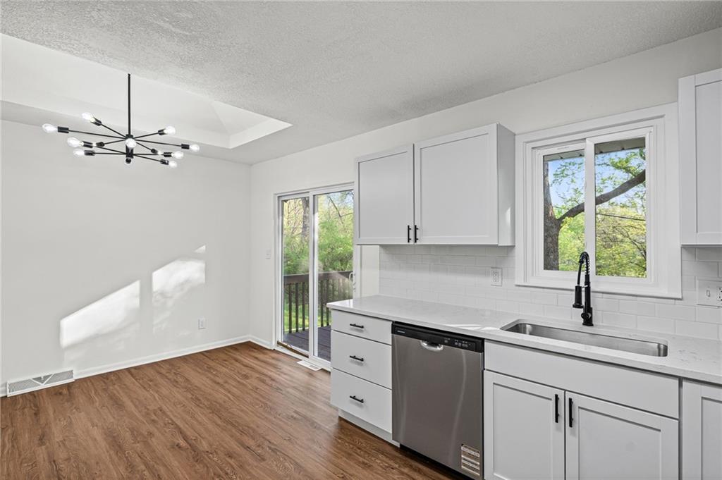 The finishes here belong in a $290,000 listing. The price tag doesn't! This fully renovated 3-bed, 2-bath Northland split has been rebuilt from the inside out: brand-new kitchen with quartz countertops, white shaker cabinets, subway tile backsplash, and a full stainless appliance package. Both bathrooms are completely new. New LVP floors run through the main living areas. The living room is anchored by a stone fireplace with black mantel. Upstairs, three bedrooms with tray ceilings and fresh carpet. Primary suite has its own private bath. The finished walkout lower level adds 401 sqft of flex space with a sliding door exit to the backyard. Second family room, home office, playroom. Your call. Step out to a deck overlooking a private, tree-lined yard. Tuck-under 2-car garage. HVAC, water heater, windows, and siding all replaced within the past few years. Move-in ready. Schedule a showing today!