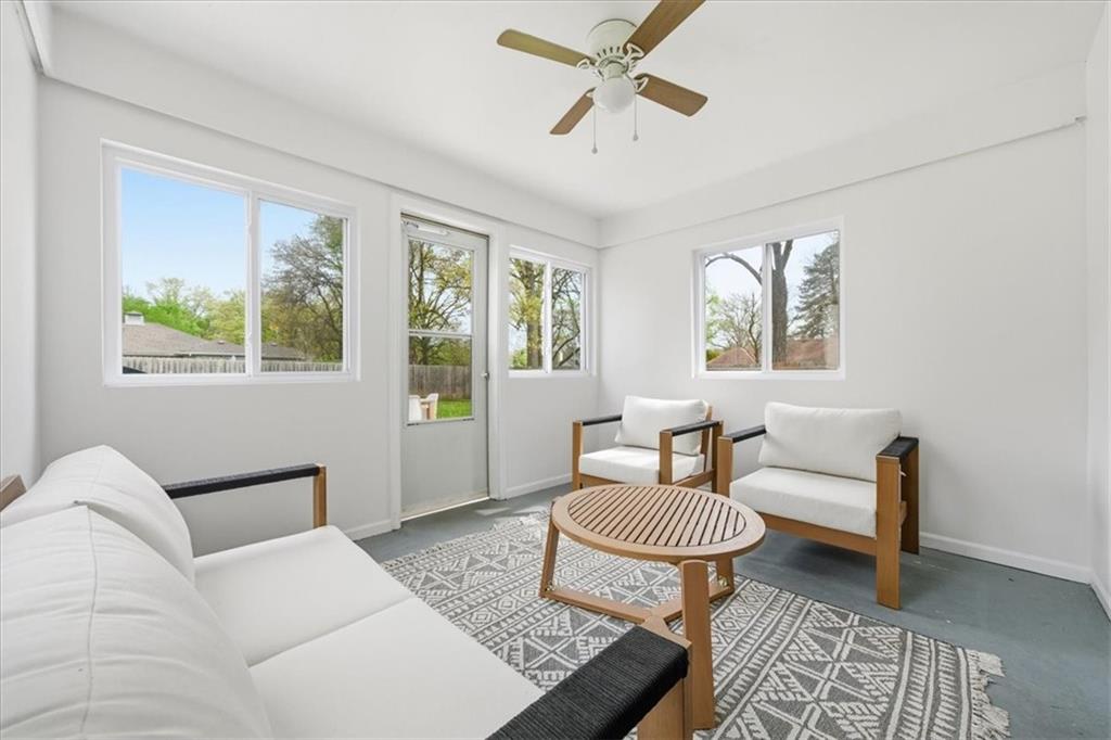 Beautifully updated, spacious and pristine ranch on a large, corner lot in SMSD and the heart of Prairie Village just a mile from the Shops! The open floor plan features clean, white walls and gleaming hardwood floors, creating the perfect canvas to make this already stunning space your own. The spacious living area is illuminated by a big, bright picture window and a cozy fireplace to set the perfect mood no matter the time of year. The elegant, understated dining area is the ideal setting for enjoying an intimate meal or entertaining guests, and while you eat you can enjoy views of the sunroom and fenced backyard and patio, or enjoy your meal al fresco when the weather is too good to resist. The beautifully appointed kitchen features fresh white cabinets, gorgeous granite countertops, subway tile backsplash, and a conveniently placed breakfast or home office nook, laundry closet and half bath. On the other side of this true one-level living home you will find a private primary suite, two nicely sized bedrooms and a second full bath. The full, concrete basement is perfect for storage, future finished space, or enjoying a round of pickleball! You can’t beat this aesthetic, this location, or this school district, so don’t wait to make this one yours!