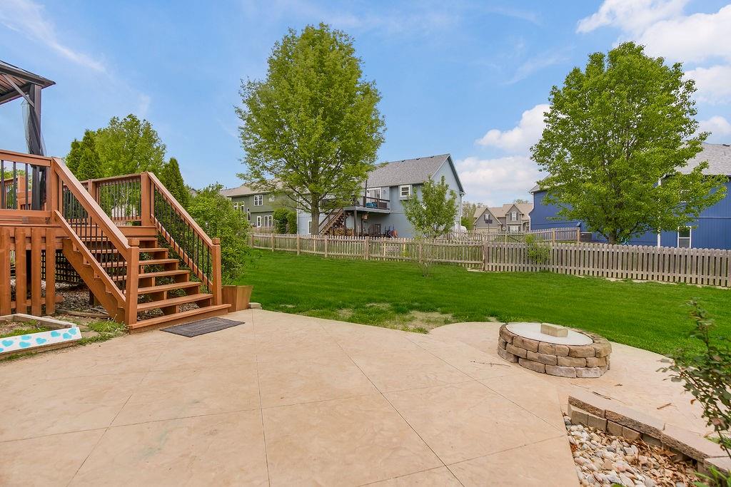 Beautifully updated home in a Cul-d-sac Lot!! HUGE kitchen with hardwood floors, Tons of cabinets, Open & Light! Vaulted Ceilings, Ceiling fans, Fireplace, Master bath w/Whirlpool, Shower, Walk-in closet, 4 Spacious bedrooms! 3 baths! The two-tier deck steps down to Stamped patio & fire pit! HUGE fenced back yard.... Fabulous out door entertainment area! Bathroom in basement has access to garage for quick clean-ups! Main level laundry! Great access to all Major roads! Close to shopping & restaurants! Walk to School - Excellent Liberty Schools! Neighborhood Pool and Walking Trails!! New exterior paint, new carpet in 2 bedrooms and downstairs. New luxury vinyl in the entry way from the garage and the upstairs hall bath. Fresh landscaping in the front adds to the curb appeal!
