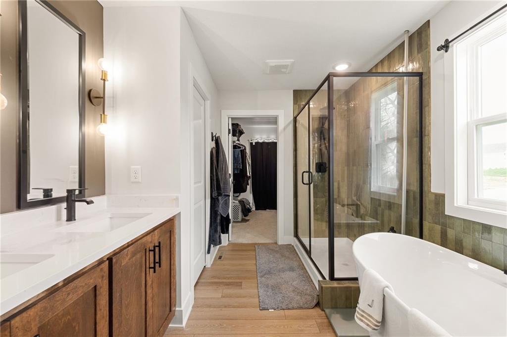 Welcome to this nearly new, beautifully upgraded home built by Kerns Homebuilders. This 4-bedroom, 3-bath property offers an open, contemporary layout with thoughtful upgrades at every turn. The main level features an open concept with a striking fireplace accent wall and large windows that fill the home with natural light. The beautifully designed kitchen includes wood cabinetry, a spacious island, stainless steel appliances, and stylish lighting—perfect for everyday living and entertaining. The primary suite is complete with a tiled shower, tub, double vanity and walk-in closet. With two additional rooms and a bathroom on the main level. The basement has a great area for entertaining with another bedroom and bathroom off the garage. Sellers are relocating for work, giving you the opportunity to move into a like-new home without the wait!
