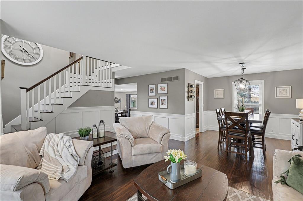 Are you searching for the perfect home—where every detail has already been thoughtfully updated inside and out? Welcome to this impeccably maintained two-story residence offering just over 2,000 square feet of beautifully finished living space, a two-car garage, and all major improvements complete. Step inside to a light-filled, semi-open floor plan. The main level features a front sitting area, formal dining space, and spacious kitchen. You’ll love the stylish concrete countertops, on-trend backsplash, abundant cabinetry, and stainless-steel appliances. The kitchen flows seamlessly into eat-in area and expansive family room, complete with a stone gas fireplace and custom built-ins. Just beyond, the outdoor space is equally impressive—featuring a beautiful paver patio with gas fire pit, meticulously landscaped yard, storage shed, and a side yard with low-maintenance artificial turf. The main level also includes laundry room and half bath. And the garage? Simply exceptional—pristine, polished, and truly one of the finest you’ll find. Upstairs, the primary suite offers dual closets and a spacious en-suite bath featuring a double vanity and walk-in shower. Three additional bedrooms and a fully updated bath complete the second level. This home shines with an extensive list of upgrades: fresh exterior paint (2025), new furnace and A/C (2025), full roof replacement with new gutters and downspouts (2024), newly installed skylights (2024) , all new windows (2023) , new Rheem water heater (2024), new garage doors and openers (2020), a full basement waterproofing system (2024) and foundation wall reinforcement (2024) . All basement waterproofing and foundation work comes with a 25-year transferable warranty. Perfectly situated in a fantastic location close to dining, shopping, and with easy highway access, this home truly offers the best of convenience and comfort. Move right in and start enjoying—everything has already been done for you.