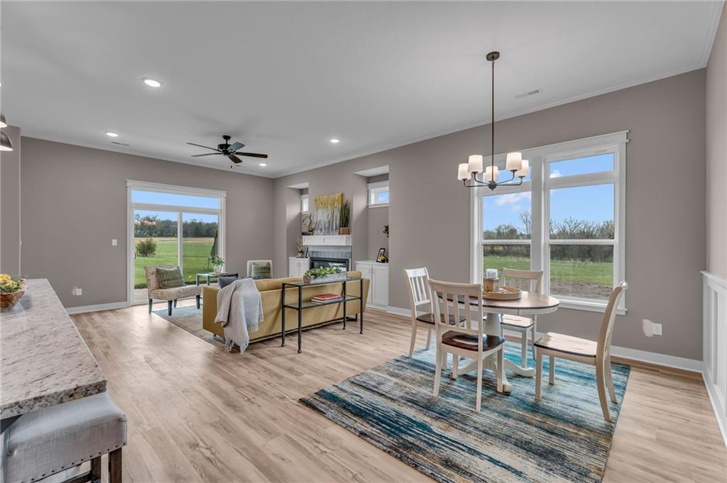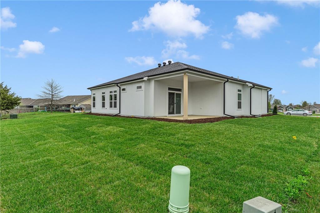Address is NOT mapped, see directions!!! Private backyard retreat in this well-built 3-bedroom, 2-bath home designed for comfort and efficiency. Quality 2x6 wall construction provides excellent insulation and energy efficiency. Spacious living areas feature soaring ceilings that create an open, airy feel. The extra-large 3-car garage with 8’ high doors easily accommodates trucks and larger vehicles. Enjoy peaceful views of the pasture from the covered patio, while the separate primary suite offers privacy and relaxation. A perfect blend of durability, functionality, and easy living. Photos are digitally enhanced to add grass. Directions: From N 6th Street and N 400 Road, west on N 400 Road, S/left on Ridge Lane, N/right on Bluestem Drive, R/north on Bluestem Circle, home is on the right