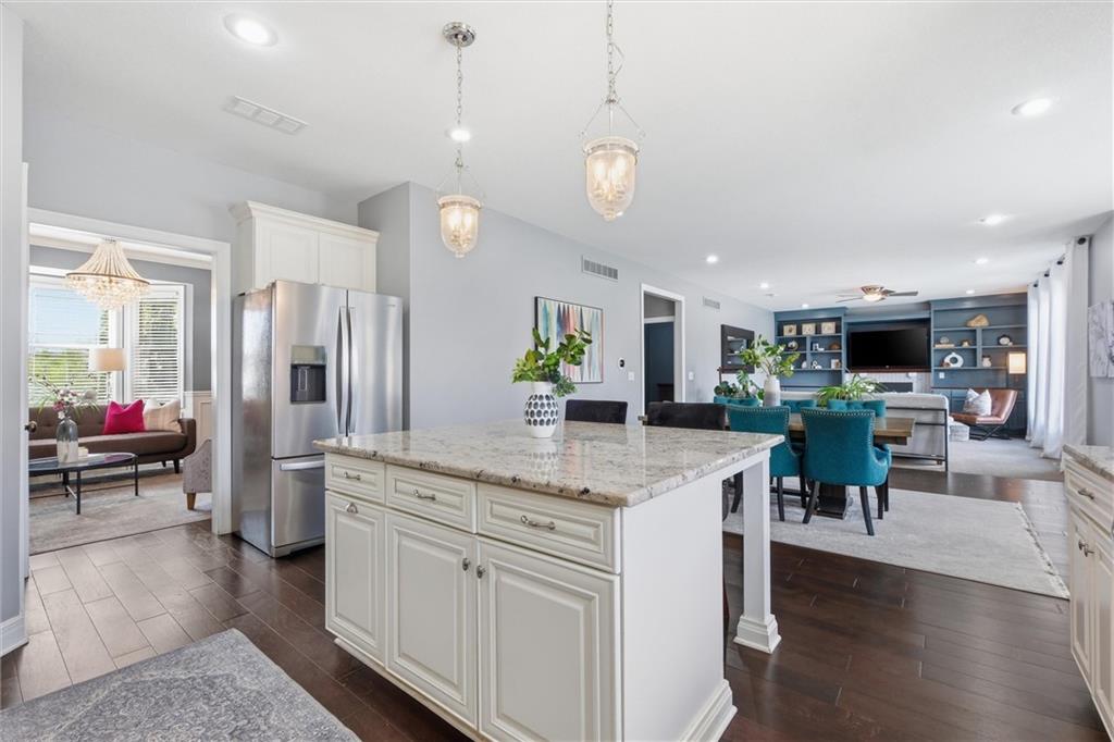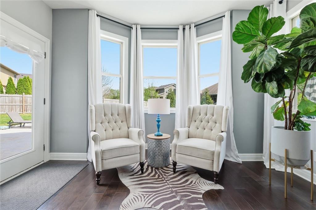 Welcome HOME to this beautiful two-story home in the sought-after Megan Valley neighborhood in Gardner Kansas! With 5 bedrooms, 3.5 bathrooms, and a 3-car garage, this home offers the perfect blend of space, function, and charm. Step inside to a grand entry with a versatile formal dining room ideal for dining, a home office, or music room. The great room is full of character, featuring a stunning tiled fireplace, custom built-ins, and a wall of windows overlooking the incredible backyard oasis. The heart of the home is the open kitchen, hearth, and dining area, perfect for gathering and everyday living. You’ll love the bright kitchen with granite countertops, island, farmhouse sink, stainless steel appliances, and a spacious walk-in pantry. Rich wide-plank wood floors flow throughout the main level, along with a convenient half bath for guests. Upstairs, the primary suite is a true retreat with a large en suite bath including a soaking tub, separate shower, private water closet, and a generous walk-in closet. A second bedroom offers its own private bath, while bedrooms three and four share a full bath. The spacious laundry room provides added storage and functionality. The finished basement offers the best of both worlds with a fifth bedroom and additional unfinished area ready for storage or future expansion. Situated on a large corner lot, the backyard is truly the showstopper featuring a beautiful patio and in-ground pool, perfect for summer days and making lifelong memories.