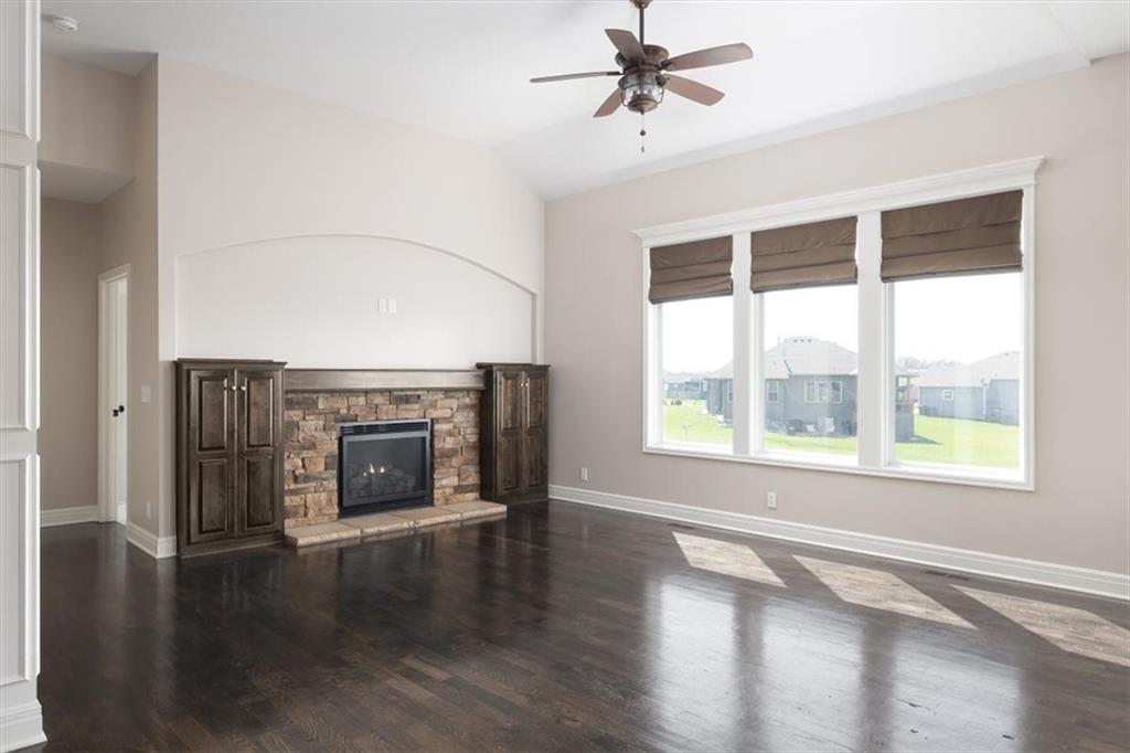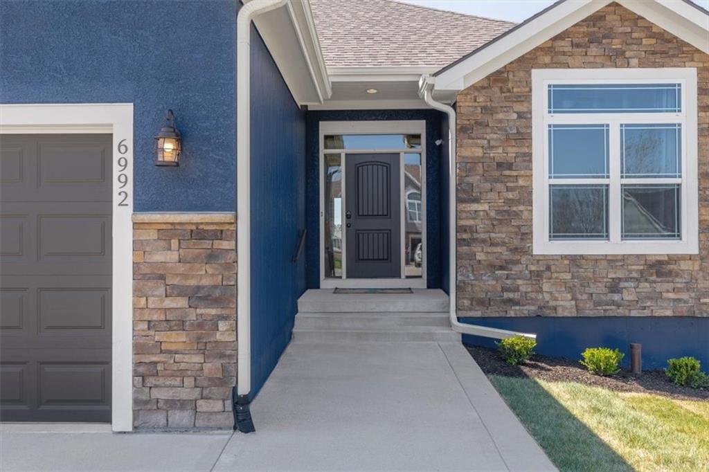 NEW CARPET AND INTERIOR PAINT JUST FINISHED. Gorgeous home in the Basehor/ Linwood school district. Open concept with a large kitchen island, granite countertops and a walk in pantry. Hardwood floors on the main level. 2BRs on the main level and 2BRs in the walkout basement. Covered deck with a large patio. Newer AC and Furnace, Newer roof completes the picture. Backs up to greenspace. HOA dues cover the common areas and the pool also includes a stocked pond and trails.
