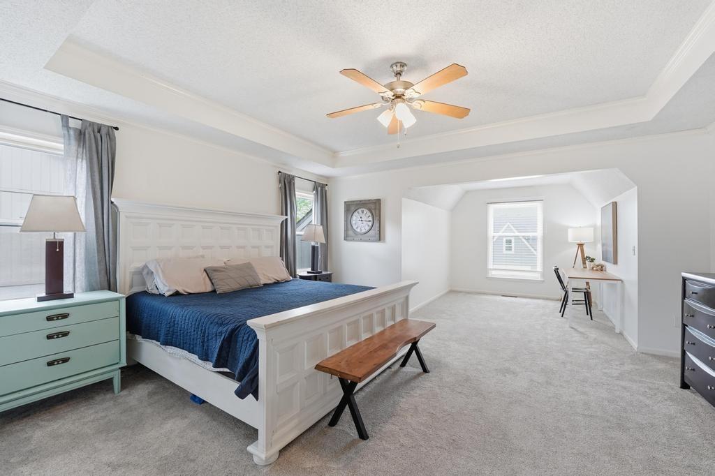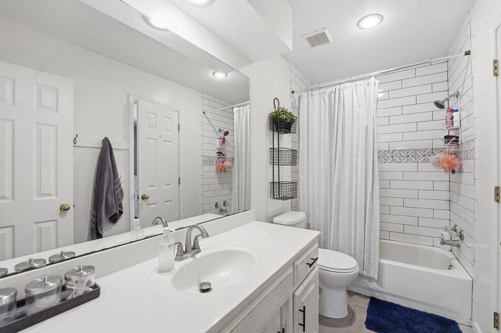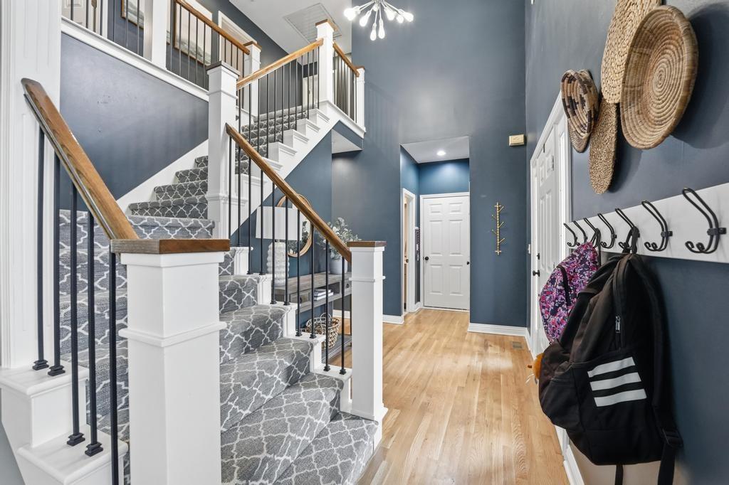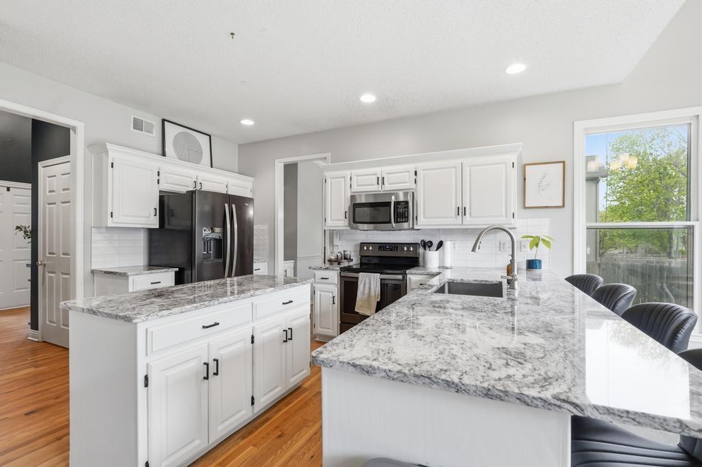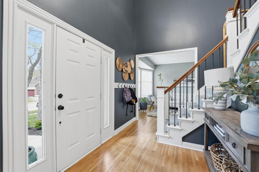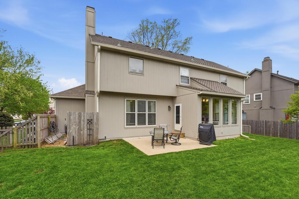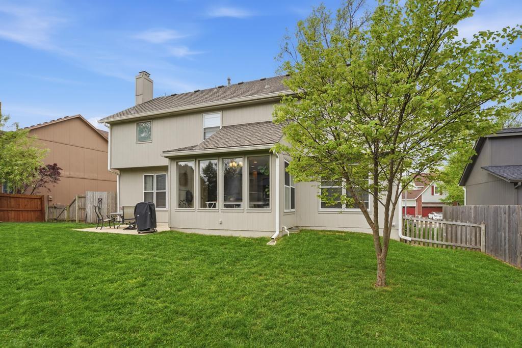 This stunning 2-story home in the highly coveted Regency Place neighborhood is a true gem, offering both style and functionality. Boasting 4 spacious bedrooms, 3.5 baths, a finished basement, and a generous 3-car garage, this property has everything you’ve been looking for. Step inside to be greeted by gleaming hardwood floors that flow through the entryway, formal living room, formal dining room, kitchen, and breakfast area. The kitchen is a showstopper with granite countertops, a center island, a built-in pantry, stainless steel appliances, a coffee bar, white cabinets, and subway tile backsplash. Newer carpeting in the living room and designer carpet on the staircase, paired with elegant iron spindles and white end caps, add a touch of sophistication. The oversized primary suite is your personal retreat, complete with a cozy sitting area and a recently updated, spa-like bathroom. Indulge in the freestanding tub, separate tiled shower, and solid-surface double vanities, all set against beautiful tile floors. Upstairs, you’ll find spacious secondary bedrooms, a Jack-and-Jill bathroom, and the convenience of a laundry room on the bedroom level. The finished basement offers endless possibilities with space for recreation, a game area, and even a home gym. Whether hosting a formal dinner, relaxing in the family room, or enjoying a special occasion in the formal dining room, this home has room for it all. The 3-car garage is not only oversized but also includes a workbench, while the flat backyard is perfect for outdoor activities, and the yard is completely fenced. With a roof that’s just 2 years old and a well-maintained HVAC system only 10 years young, you can move in with peace of mind. Plus, the location is unbeatable—just steps from California Trail Middle School, Regency Place Elementary, and under a mile to Olathe East High School. This is more than a house; it’s a place to call home. Don’t miss your chance to make it yours!