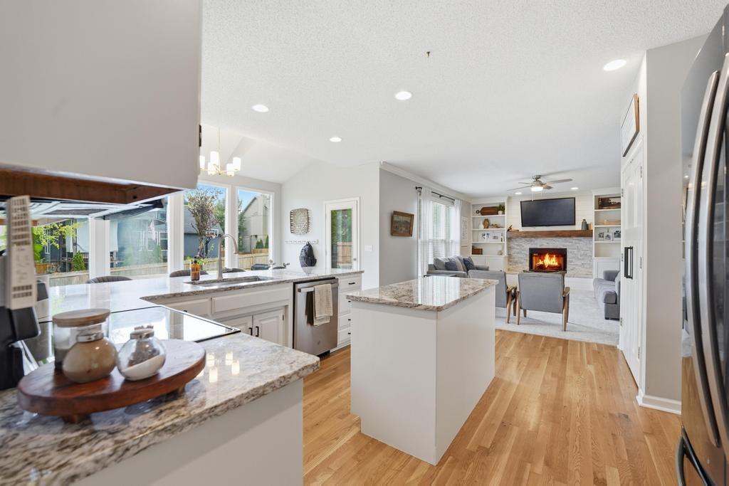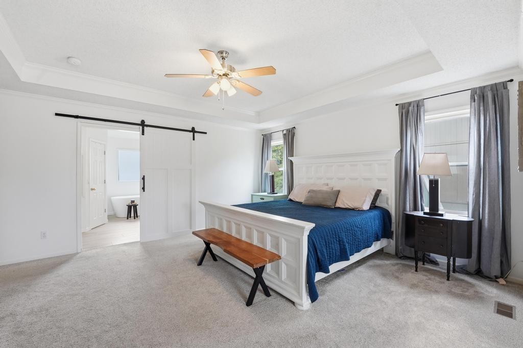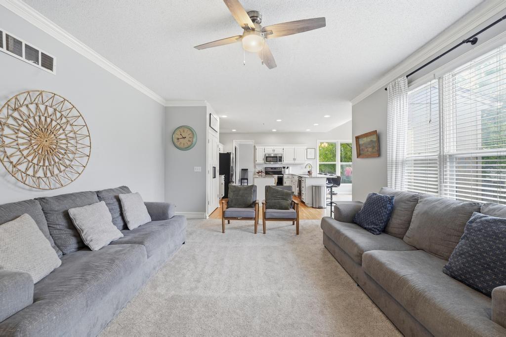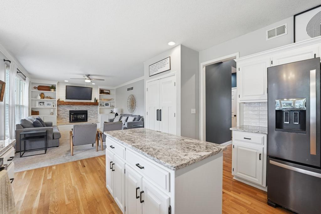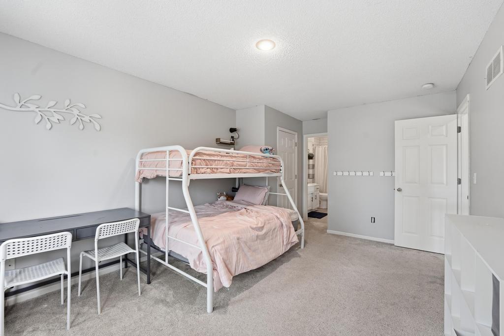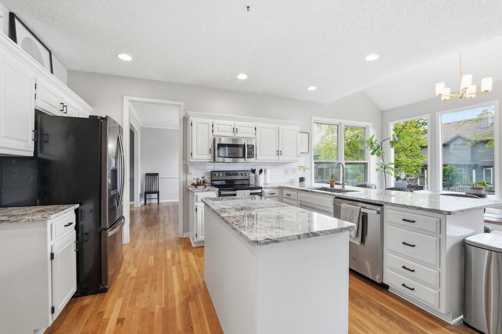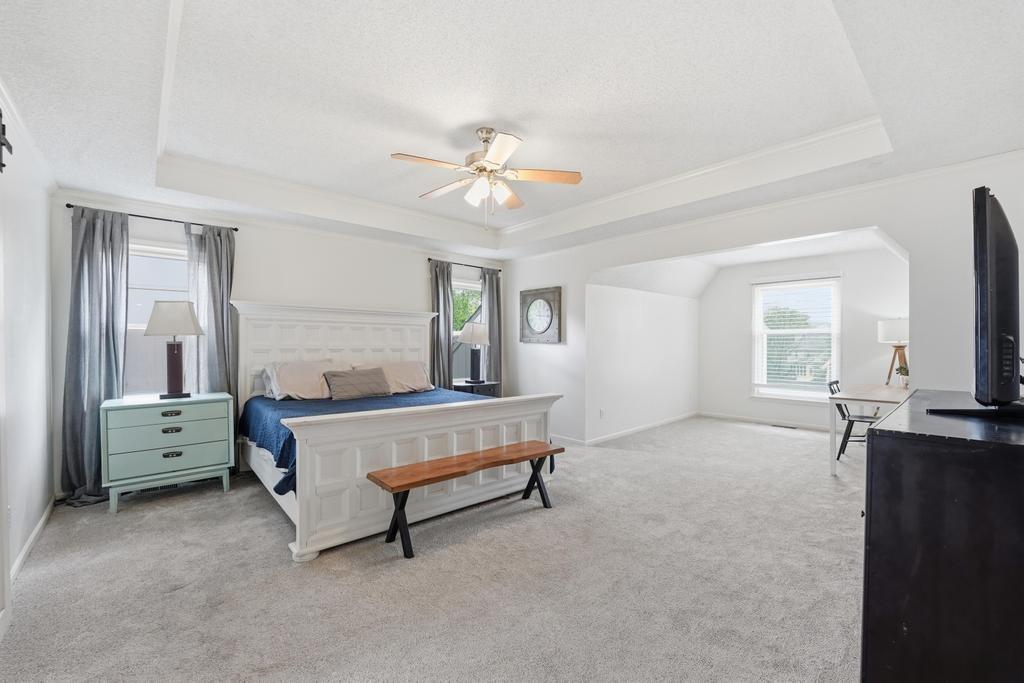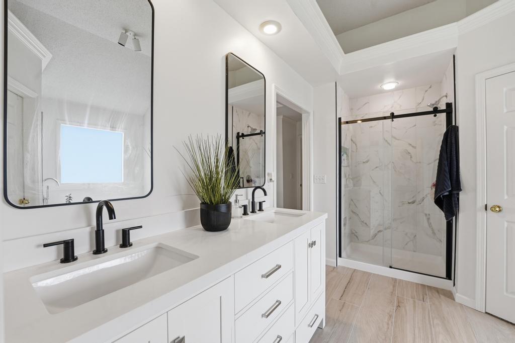 This stunning 2-story home in the highly coveted Regency Place neighborhood is a true gem, offering both style and functionality. Boasting 4 spacious bedrooms, 3.5 baths, a finished basement, and a generous 3-car garage, this property has everything you’ve been looking for. Step inside to be greeted by gleaming hardwood floors that flow through the entryway, formal living room, formal dining room, kitchen, and breakfast area. The kitchen is a showstopper with granite countertops, a center island, a built-in pantry, stainless steel appliances, a coffee bar, white cabinets, and subway tile backsplash. Newer carpeting in the living room and designer carpet on the staircase, paired with elegant iron spindles and white end caps, add a touch of sophistication. The oversized primary suite is your personal retreat, complete with a cozy sitting area and a recently updated, spa-like bathroom. Indulge in the freestanding tub, separate tiled shower, and solid-surface double vanities, all set against beautiful tile floors. Upstairs, you’ll find spacious secondary bedrooms, a Jack-and-Jill bathroom, and the convenience of a laundry room on the bedroom level. The finished basement offers endless possibilities with space for recreation, a game area, and even a home gym. Whether hosting a formal dinner, relaxing in the family room, or enjoying a special occasion in the formal dining room, this home has room for it all. The 3-car garage is not only oversized but also includes a workbench, while the flat backyard is perfect for outdoor activities, and the yard is completely fenced. With a roof that’s just 2 years old and a well-maintained HVAC system only 10 years young, you can move in with peace of mind. Plus, the location is unbeatable—just steps from California Trail Middle School, Regency Place Elementary, and under a mile to Olathe East High School. This is more than a house; it’s a place to call home. Don’t miss your chance to make it yours!
