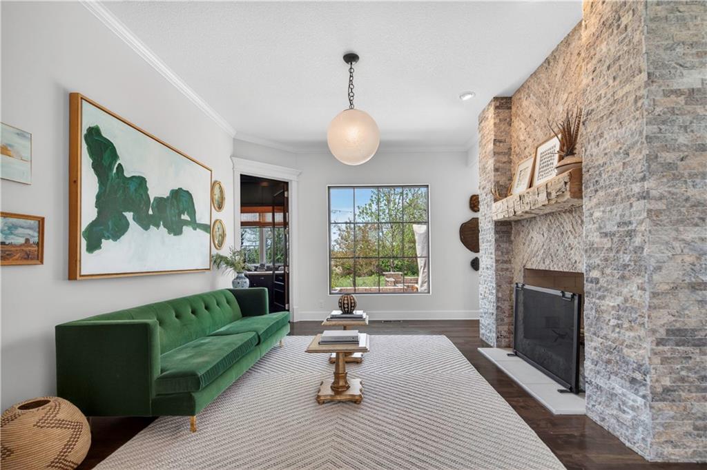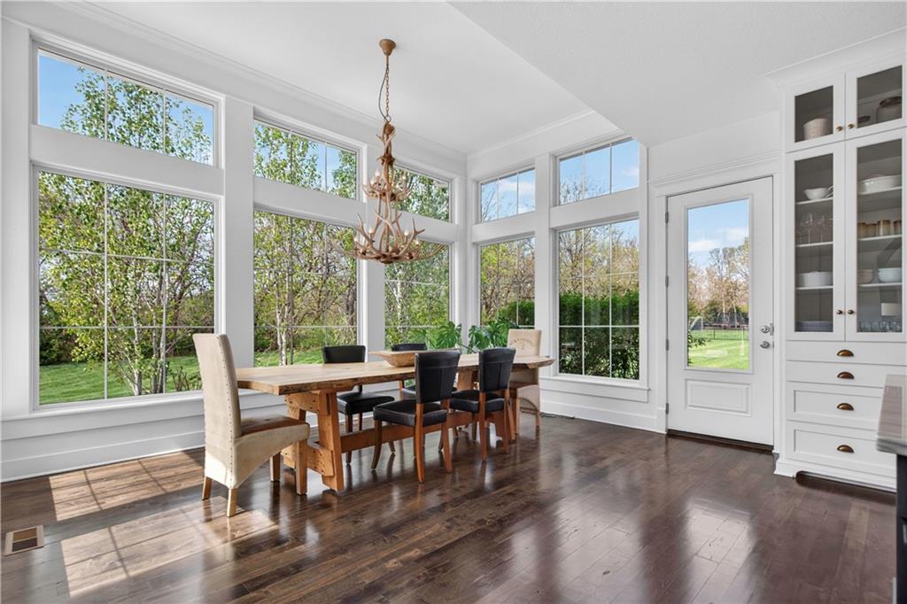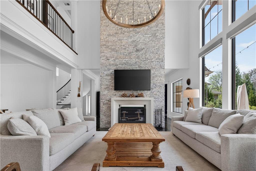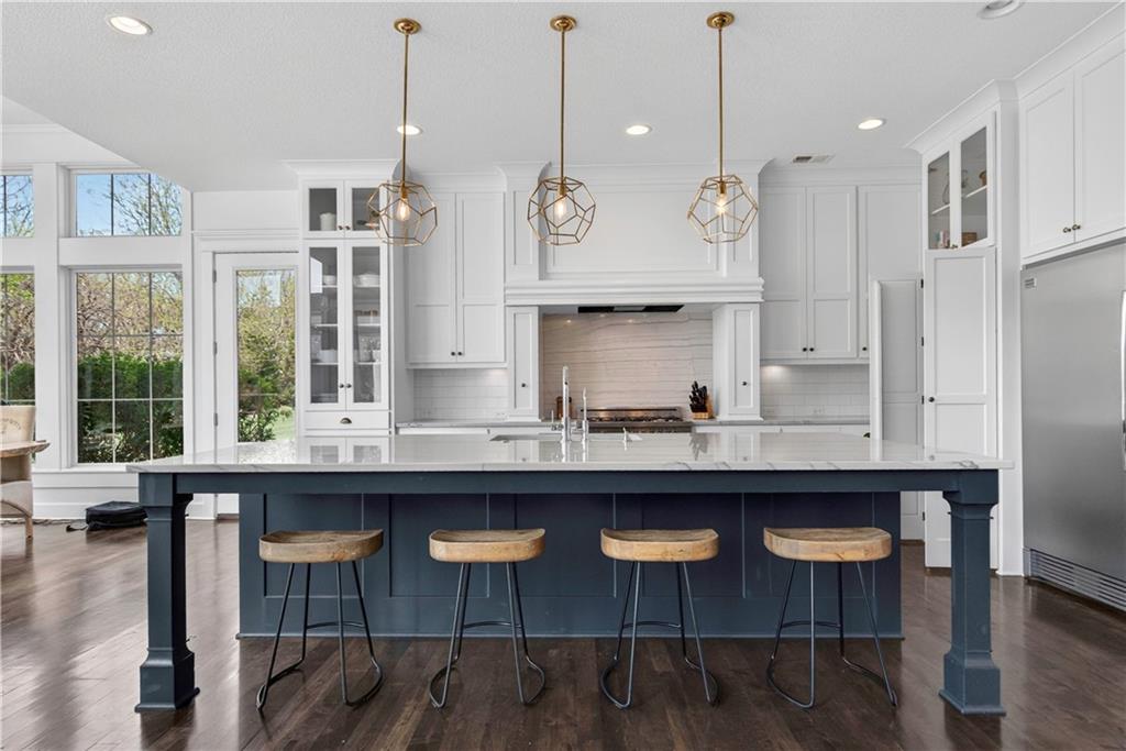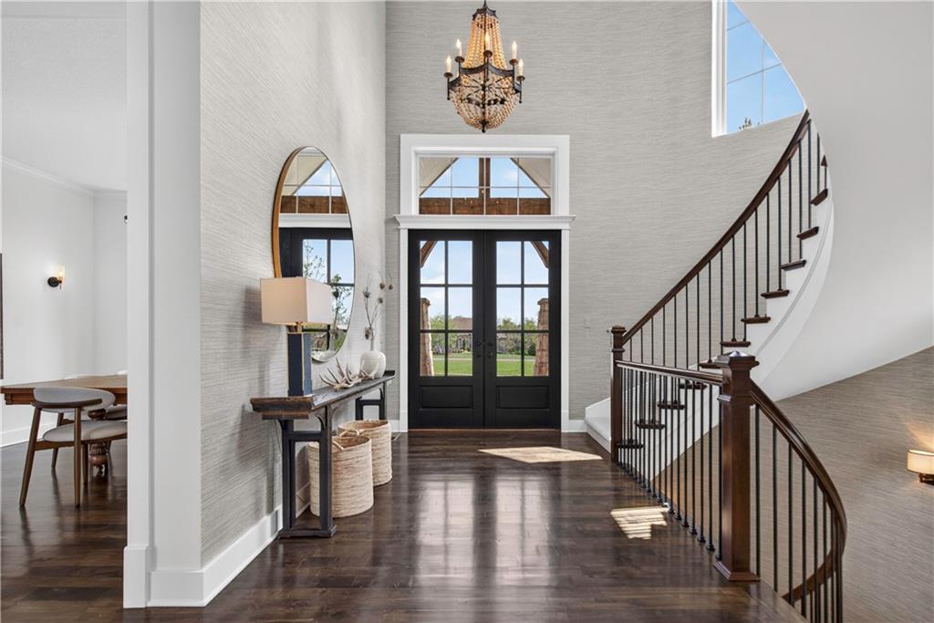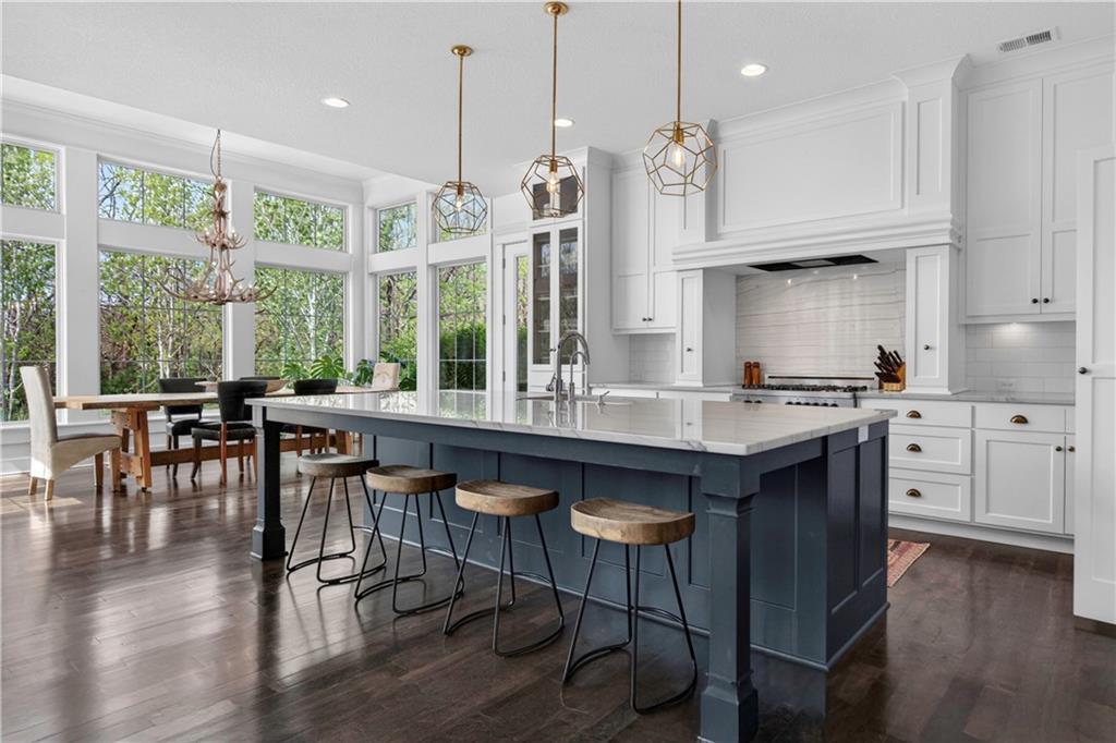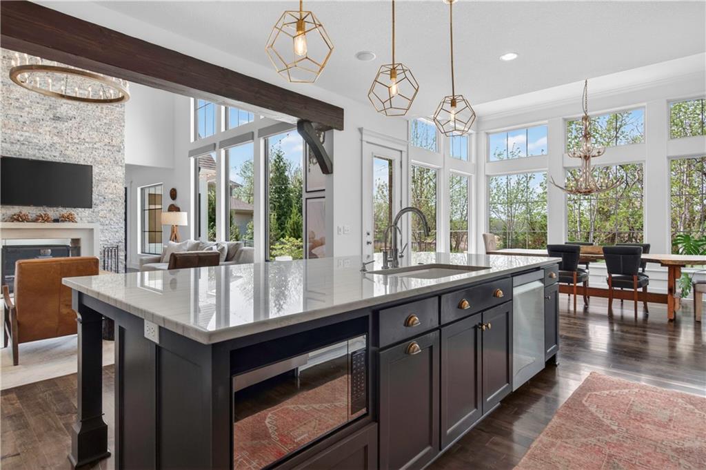 STUNNING POLO FIELDS 2-STORY—A TRUE ENTERTAINER’S DREAM IN BLUE VALLEY! Perfectly positioned in one of the area’s most sought-after communities, this exceptional residence blends refined finishes with a thoughtfully designed layout tailored for both everyday living and upscale entertaining. A striking see-thru fireplace anchors the formal living room and dramatic Great Room, where soaring ceilings and walls of windows flood the space with natural light. The chef’s kitchen is a showpiece—featuring a large center island, quartz countertops, walk-in pantry and premium stainless steel appliances—all remaining. The adjoining breakfast area and private main floor office both open directly to the patio, creating seamless indoor-outdoor flow ideal for al fresco dining and gatherings. Retreat to the luxurious primary suite offering a spa-inspired bath with dual vanities, whirlpool tub, separate shower and an expansive walk-in closet with convenient access to the bedroom-level laundry. Three spacious secondary bedrooms each feature private en-suites and walk-in closets, delivering comfort and privacy for all. Finished lower level is designed to impress—complete with a media-ready family room with projection screen, an entertainer’s wet bar with oversized quartz topped island (hidden handles for tons of storage) and set up for ice machine and under counter mini-fridge, wine cellar (with cut-out ready for your chiller), fitness area, fifth bedroom and fifth full bath with walk-in shower and dry sauna. Step outside to your own private escape—featuring a stunning stone patio and firepit designed for evenings under the stars. Refined. Elevated. Unforgettable. This is luxury living—just minutes from everything--parks, premier shopping, dining and quick highway access. WELCOME TO YOUR DREAM HOME!