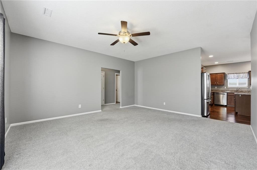 Enjoy easy living in this well-maintained 3 bedroom, 2 bathroom home offering true one-level living in a convenient location. The spacious layout features a large living area with vaulted ceilings and abundant natural light, creating an open and inviting atmosphere. The kitchen is equipped with warm wood cabinetry, ample counter space, a center island, and flows seamlessly into the dining area with access to the patio, perfect for everyday living and entertaining. Recent updates include new carpet and interior paint in 2022, along with a brand new roof in 2025, providing peace of mind for years to come. The primary suite offers a comfortable retreat with a tray ceiling and generous space, while additional bedrooms are well-sized. A dedicated laundry room and attached two-car garage add to the home’s functionality. With yard/snow removal provided, this home offers a low-maintenance lifestyle in a desirable setting.