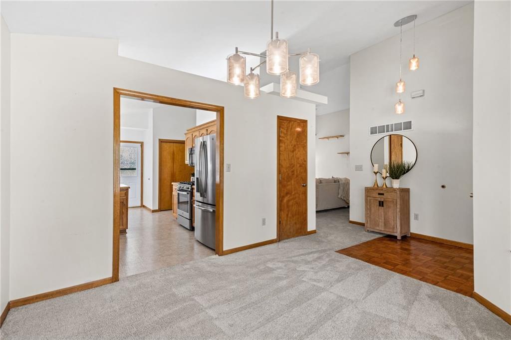 Move-in ready and perfectly located, this inviting home offers comfort and convenience from the moment you step inside. Enjoy an open, airy feel with vaulted ceilings, plus the convenience of main-level bedrooms for everyday living. The functional kitchen provides ample space for cooking and gathering, while the layout flows seamlessly for relaxing or entertaining in the finished basement. Complete with a two-car garage and situated near shopping, dining, and major highways, this home is a fantastic opportunity you won’t want to miss!