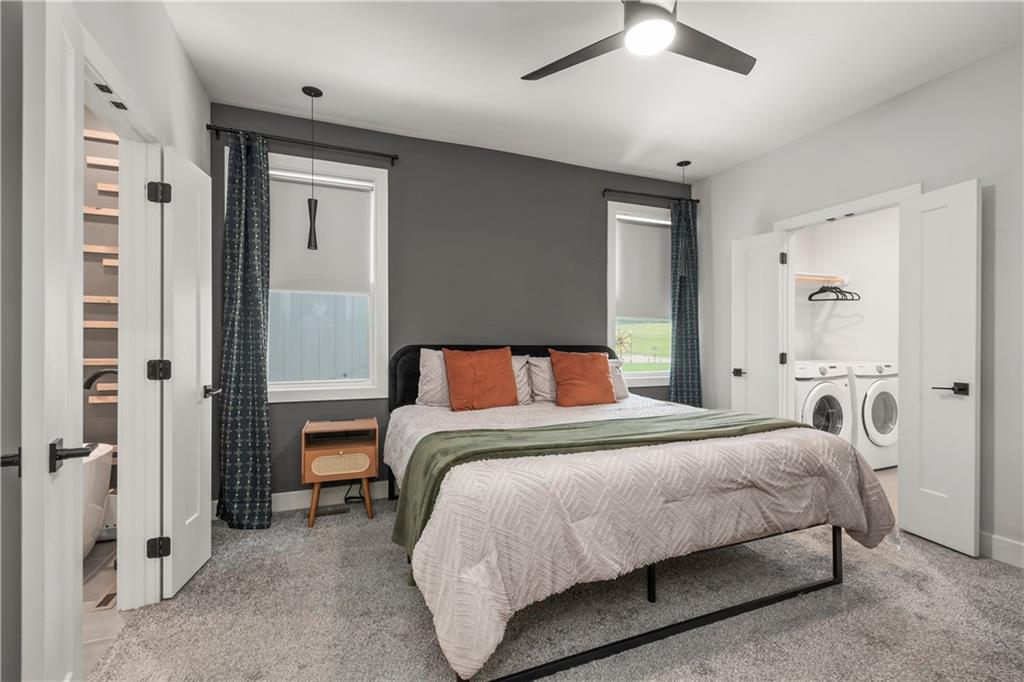 You're going to love living here! This custom-built home is in the heart of the new urbanism community, New Town at Harmony. The community has an amphitheater for live events, sand volleyball, a community park, water canal features, and a weekend coffee shop. More amenities to come, like community pools and an event space/wedding venue. Walk right out the full sliding front doors to a spacious deck. Great for entertaining or just relaxing on your own. The kitchen has custom cabinets, stainless steel appliances, and useful features like a mixer stand shelf that folds up easily and then tucks away when you're done. The primary bedroom suite pampers you with upgrades like a walk-in closet, full-body jets in the shower, a soaker tub, and a hot drawer in the vanity. Step upstairs to a thoughtfully designed office, gaming space, or non-conforming 4th bedroom. Walk down to the finished basement with 2 bedrooms, a full bathroom, and a family/rec room. There is even a 3rd spot in the oversized 2-car garage to accommodate a golf cart, motorcycles, or extra storage. Award-Winning Blue Springs School District! So much to love about this move-in-ready charmer. Book your showing today!