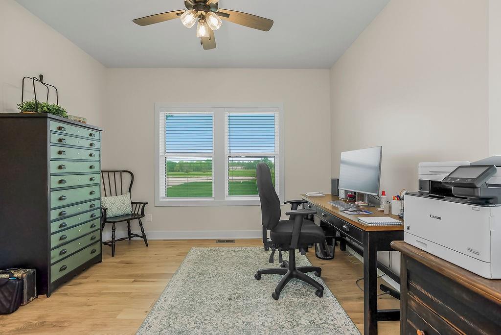 Enjoy the best of country living on nearly 2+ acres with wooded surroundings, added privacy, and access to a 25-acre stocked fishing lake. The home features an extraordinary kitchen with a large walk-in pantry, open to a spacious living room—perfect for both everyday living and entertaining. Beautiful solid hardwood floors throughout with the exception of the tiled baths. The main level offers 3 bedrooms, 2½ baths, and the convenience of main-floor laundry. The owner’s suite is privately situated on its own side of the home, with two additional guest bedrooms thoughtfully separated. The full walkout basement is ready for your finishing touches, offering additional living space and endless possibilities.