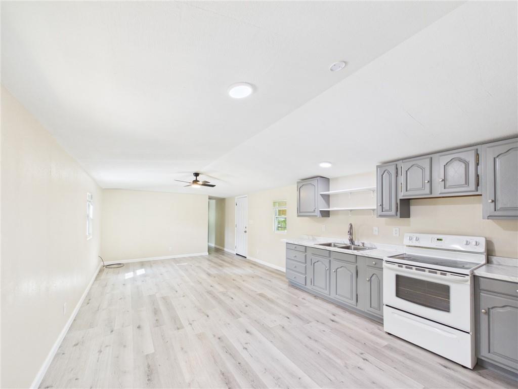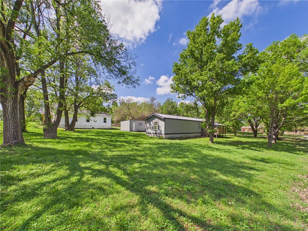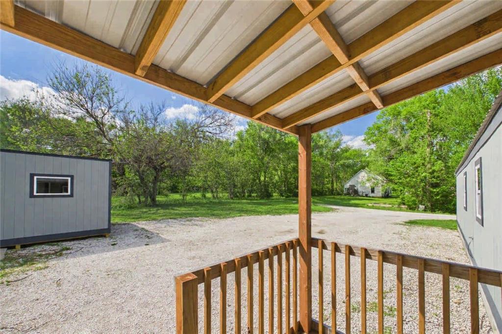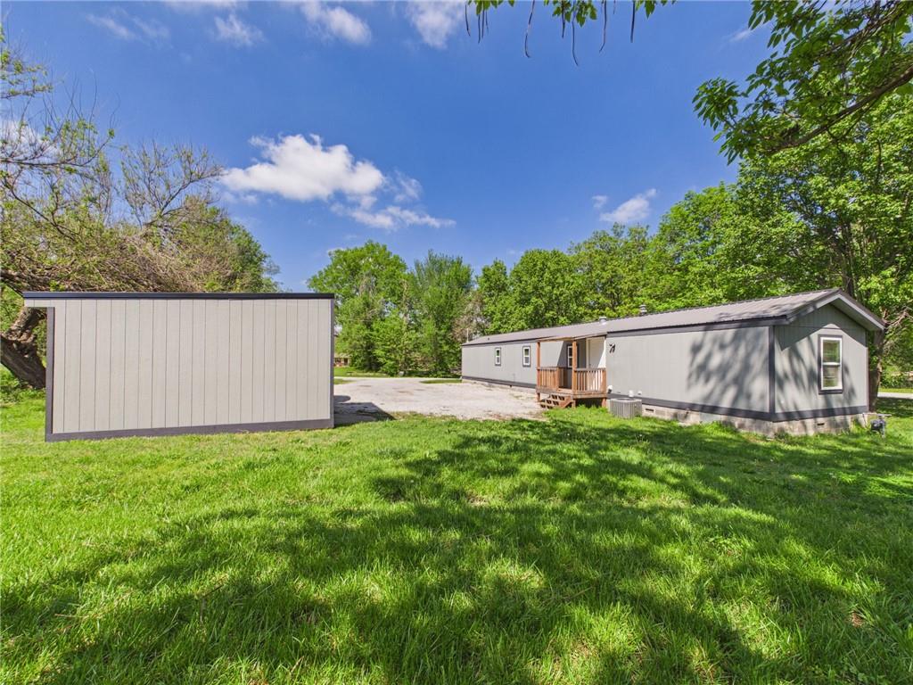 This tastefully updated 3-bedroom, 2-bath ranch-style home offers 924 square feet of cozy living. Remodeled less than three years ago, this home features a host of upgrades including a new metal roof, new windows, new fixtures, and stylishly painted kitchen cabinets that bring a fresh, contemporary feel to the space. Step inside to an open living room/kitchen layout. Two bedrooms are located at one end of the home, while a third is located at the opposite end creating privacy. Having two full bathrooms adds convenience and functionality. Outside, you’ll find a spacious 15x16 shed—ideal for hobbies, storage, or a small workspace. The covered porch provides a great spot to relax and enjoy the outdoors, while the corner lot offers additional yard space & privacy. The title has been eliminated with the county and is permanently affixed to the land making it real estate. Whether you’re a first-time buyer, downsizing, or looking for a move-in-ready investment, this home checks all the boxes.