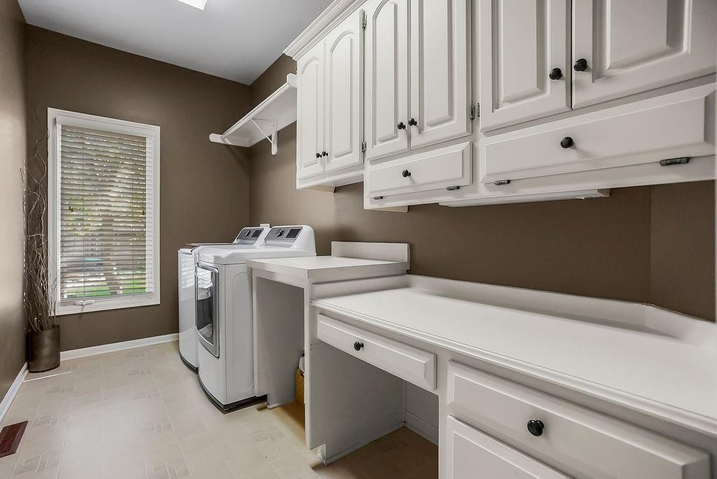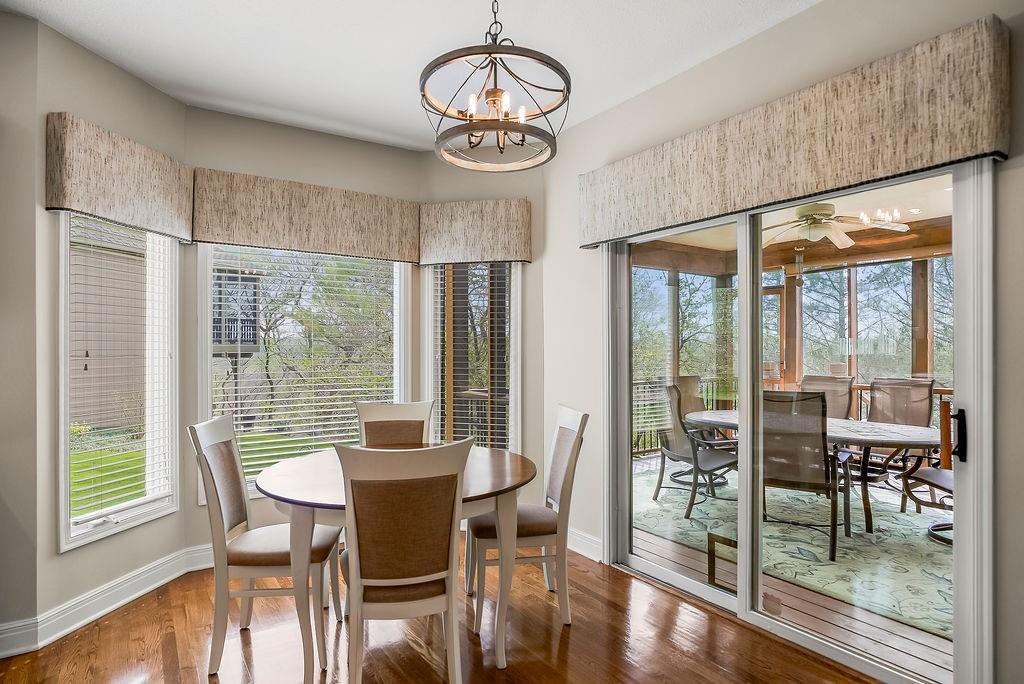 This meticulously maintained 1.5-story home with a finished walk-out basement is perfectly situated at the end of a quiet cul-de-sac. Set on a spectacular wooded lot backing to a scenic valley and greenbelt, the property offers exceptional privacy and serene views, with frequent visits from local wildlife. Main level features an open formal dining room perfect for entertaining large groups, a living room with a wall of windows, hearth room with built-ins and a see-through brick fireplace to the living room, and an updated kitchen (2024) with white quartz and three pantries (one walk-in). The main-floor primary suite offers a bay window, boxed vaulted ceiling with interior lighting, a spa-like bath with separate tub and shower, see-through fireplace to the bedroom, and a huge walk-in closet. Laundry with desk/folding counter off the 3-car garage. Screened deck overlooks private, tree-filled backyard. Upstairs: three bedrooms — two share a Jack-and-Jill bath, one with a private ensuite — plus built-in bookcases in the hall and guest bedroom and easy attic access that could be finished as a loft. Finished walk-out basement includes large game area with wet bar, 5th bedroom, 4th full bath, separate TV room, and patio. Additional highlights: immaculate condition, hardwoods on main level, plantation shutters, central vac, sprinkler system, wired for surround sound on main floor, natural stone landscaping and retaining walls, stamped concrete walkways, exterior paint 2022, dual HVAC units. Enjoy resort-style living in Cedar Creek — one of Kansas City’s finest neighborhoods with access to a 65-acre fishing lake, 3 community pools, lighted tennis & pickleball courts, clubhouse, indoor gym, and miles of walking trails.