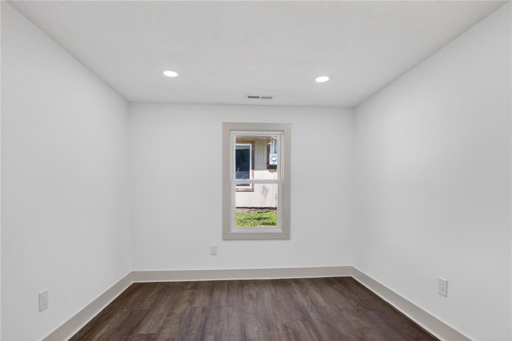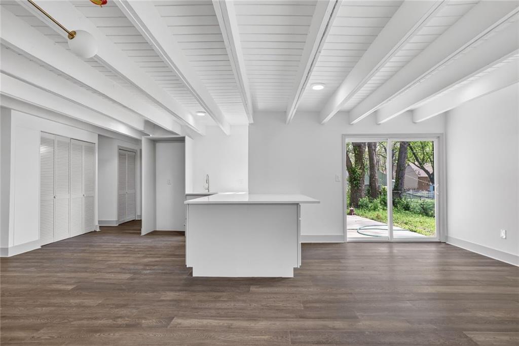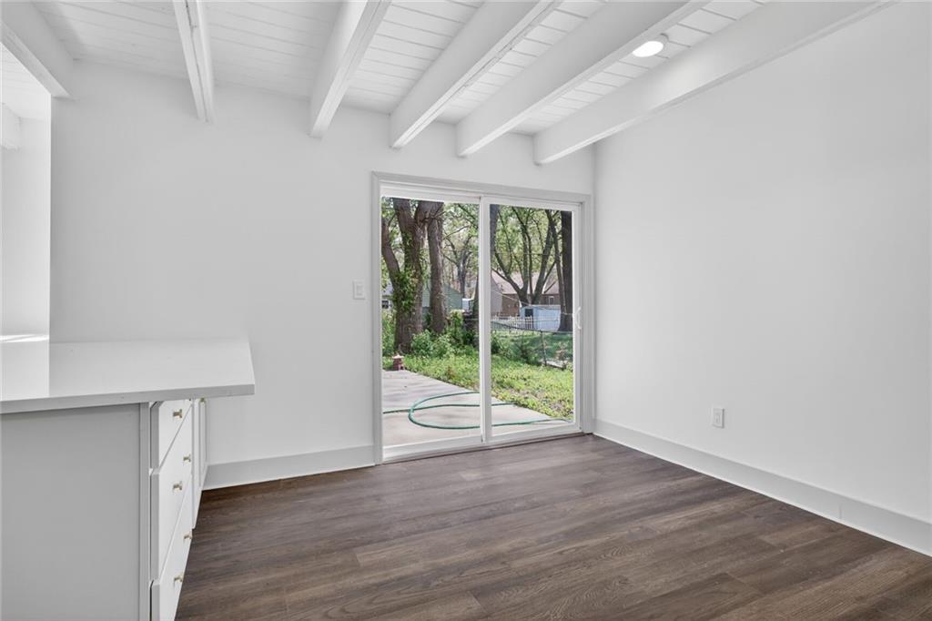 Welcome home to this beautifully completely remodeled 2-bedroom, 1-bath ranch offering convenient one-level living. This home has been taken down to the studs and rebuilt from the ground up — every single thing is brand new: new roof, new electrical, new plumbing, new studs, new siding, new insulation, new HVAC equipment, new granite countertops, and more. Step inside to an open-concept layout featuring luxury vinyl plank flooring and a bright, modern design throughout. The updated kitchen showcases quartz countertops, a large island with extended seating, and a functional layout ideal for everyday living and entertaining. The dining area flows seamlessly to a sliding glass door leading to a spacious patio, and a fully fenced backyard with mature trees—perfect for outdoor enjoyment. This low-maintenance home has been thoughtfully updated with contemporary finishes, fully permitted and inspected by the City of Mission, with all plans and inspections provided. It is move-in ready. Schedule your showing today