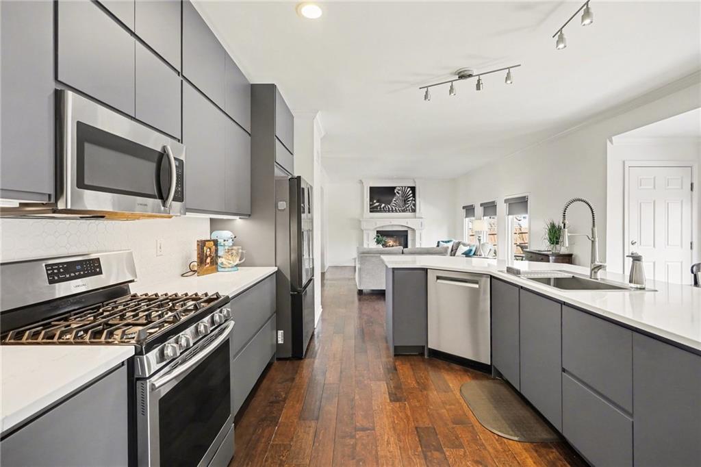 Charming and well-maintained 2 Story home in Stonehurst! Completely updated with a wonderful open floor plan. Inviting two-story entry, beautiful hardwood floors throughout the main level, and brand new carpet on the stairs and bedrooms. Remodeled kitchen with contemporary style cabinets, a huge center island, a gas range, under-cabinet lighting, quartz countertops, and a breakfast area. Open great room with a cozy fireplace and floor-to-ceiling windows. The primary suite features a large bath with a double vanity, granite countertops, a soaker tub, and a walk-in closet. Three spacious secondary bedrooms. Updated hall bathroom with a double vanity. Finished lower level with a huge family room and office space. New windows in the great room and bedrooms. Fenced backyard for entertaining, with a newer composite deck spanning the length of the home. Great location close to schools, parks, and shopping.