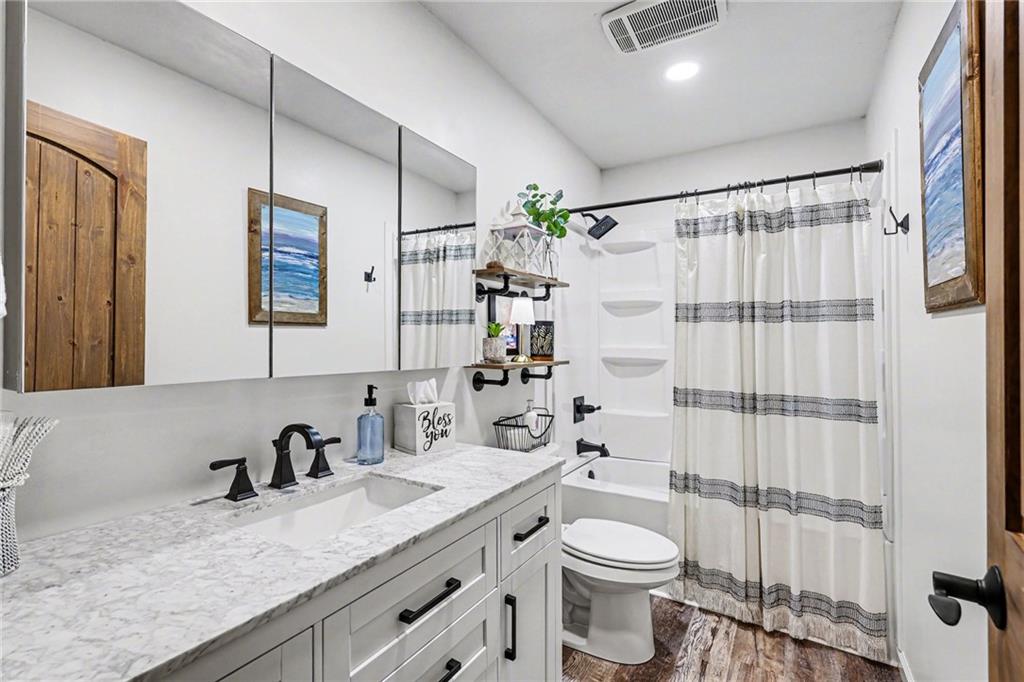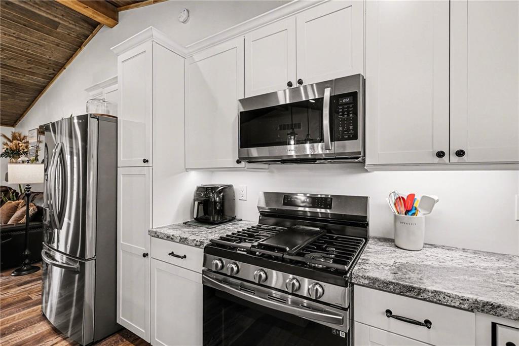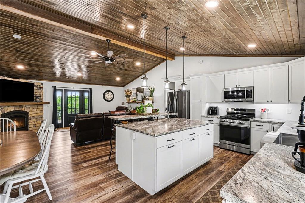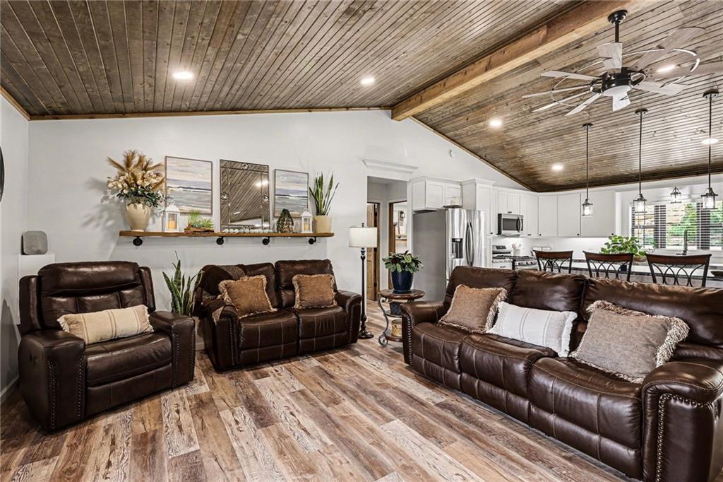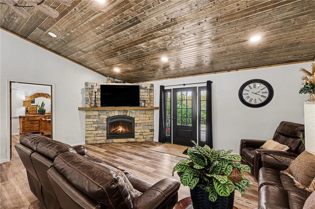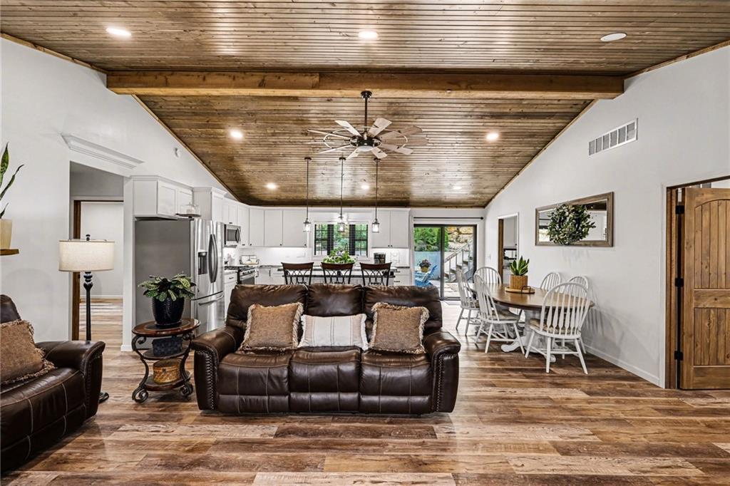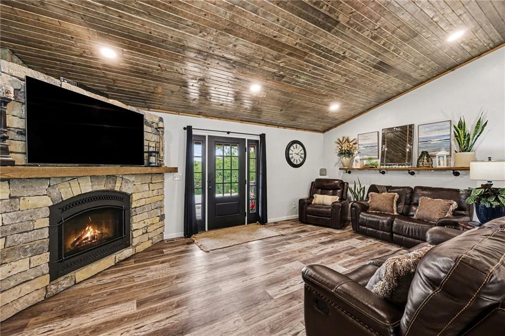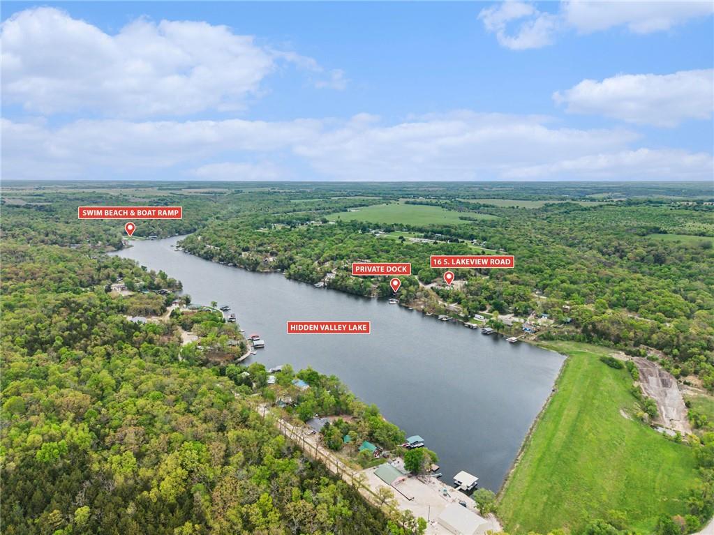 This immaculate, ranch lake home on serene Hidden Valley Lake comes with 6 lots totaling 1.5 acres, and allows access to the lake's 100 acres of water, fishing, boat ramp, clubhouse restaurant and parks! It’s truly the perfect blend of comfort, functionality, and style with its open floor plan and custom stained vaulted ceiling. Large living room features cozy gas fireplace w/ Bandera stone, and the bright kitchen with island/raised breakfast bar, 3 bedrooms and 2 baths provide the perfect space for hosting family & friends. Sellers spared no expense from the living spaces to the high-end antenna/cell service. Very nice, encapsulated crawl space under the home with storage and electrical. A 2-car garage provides convenient access and additional space, while a separate connected 3rd-car garage offers extra room for storage, workshop, or water toys. Outdoors, enjoy your morning coffee on the quiet patio admiring the beautiful landscape. After a day on the lake, relax by the fire pit or spend time fishing. Small private dock makes getting on the water easy! Boats (< 22’), pontoons (< 28’) and personal watercraft are allowed on the lake. Ownership also grants access to Sugar Valley Lake (sister lake 20 mins away) including 9-hole golf course, a swim beach, pool, and club house with food and drinks at the Sugar Valley Grill. This secluded area is a great escape from the city and is 1.5 hours south of the Kansas City area. It’s perfect for weekend get-aways! 5th wheel or RV parking place with electrical in the back of the property with its own street entrance. Tax & HOA totals for all 6 lots. LISTING INCLUDES 6 lots (4 parcels): 16 S. Lakeview Rd. (Lot 63 - .25 acres), 23 Lakeview Rd. (Lots 62 & 22 - .37 acres), 29 Ware Rd. (Lot 70 - .48 acres), 33 Ware Rd. (Lots 68-69 - .40 acres). See map included in photos.