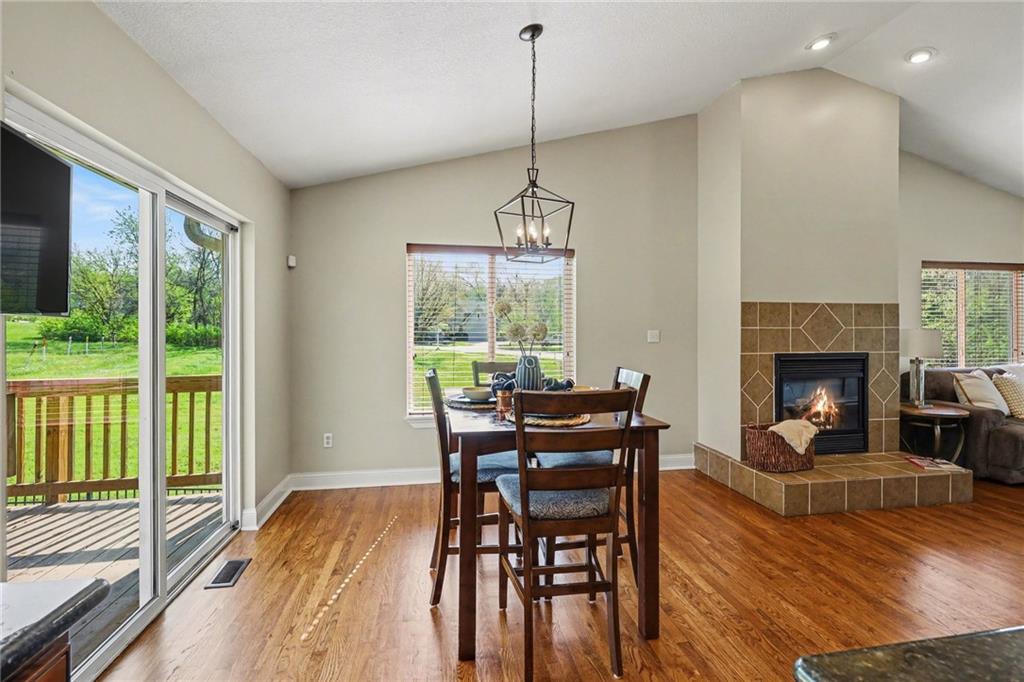 This appealing split-level home sits on an incredible 35,895.91 sq. ft. homesite — approximately .82 acre — right in the heart of Lenexa. Inside, you’ll love the light, open feel with vaulted ceilings, a great room fireplace as the focal point, and a spacious island kitchen with granite countertops and freshly refinished hardwood floors. Step out from the dining area onto the deck and enjoy private views of your expansive homesite. Built in 2005, this home offers an easy-maintenance exterior with vinyl siding and stone trim, plus a level, extra-deep driveway the width of the home, ideal for larger vehicles, sports gear, lawn equipment, and extra parking. With no HOA dues, buyers will appreciate added flexibility for outdoor living, gardens, storage, or possible future outbuilding options, subject to city requirements. The extra-long driveway off 83rd Street even includes an additional parking area. Nature lovers will appreciate the wildlife, the room to roam, and the endless possibilities for creating a private retreat right at home. Another standout feature is the nearby access to the paved Little Mill Creek Trail, leading to dog-friendly Heritage Park, north toward Mill Creek Elementary and Mill Creek Park, and on to Sar-Ko-Par Park and the Aquatic Center for even more outdoor fun.