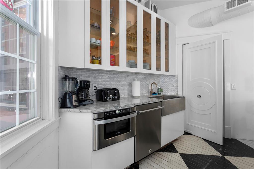 Situated in the heart of Kansas City’s historic River Market neighborhood, 120 W. 5th Street presents a rare and compelling mixed-use investment opportunity. Built in 1907, this property combines timeless character with modern functionality, all within steps of the City Market, downtown Kansas City, and the KC Streetcar line—offering unmatched connectivity to the city’s top attractions. The property’s striking façade, featuring an iconic marquee cityscape mural, is complemented by exceptional walkability and tenant-friendly amenities, including off-street parking with an attached garage. A long-term salon tenant anchors the ground floor, providing reliable income through 2028, while the upper two floors operate as a high-performing short-term rental—offering diversified revenue streams and significant upside potential. The salon space encompasses approximately 2,600 square feet and was thoughtfully renovated in 2018. It includes two bathrooms, a washer/dryer, exposed brickwork, refurbished concrete flooring, a private office and employee area, and rear access to the garage and building mechanicals. Meanwhile, the short-term rental unit, completed in 2022, spans approximately 2,875 square feet across two upper levels. This fully furnished space boasts 2+ bedrooms, two full bathrooms, tall ceilings, abundant natural light, and a third-level entertainment area with a rooftop deck offering breathtaking downtown views. While a roof leak in early 2025 temporarily impacted the short-term rental’s availability, the unit has since undergone significant repairs (new roof 2025) and resumed operations, achieving strong bookings. As of April 2026, the unit has secured 82 future nights through October, underscoring its ongoing demand and revenue-generating potential. The building is separately metered for electric with common gas and water and has 24-hour surveillance/security cameras in place for tenants.