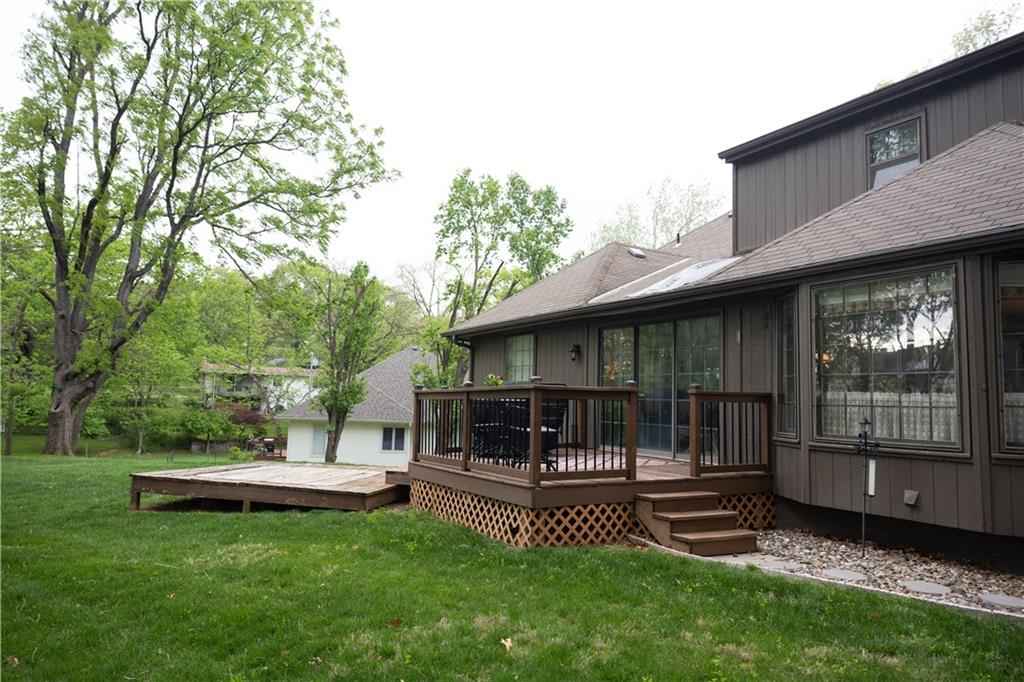 Welcome to 5611 NW Oak Ridge Court, gracefully situated on a quiet cul-de-sac in the sought after community of Platte Woods, no KC EARNINGS TAX This one-owner, custom-designed home offers thoughtfully curated living space—blending timeless craftsmanship with exceptional comfort and scale. Featuring 4 bedrooms and 3 full and 1/2 bathrooms, the home is anchored by a main-level primary suite, creating a private and convenient retreat. Expansive interiors showcase generously sized rooms, abundant natural light, and rich ash wood details, complemented by custom built-ins and spacious walk-in closets—all contributing to a warm yet refined aesthetic. Custom window treatments throughout enhance both style and privacy, adding a finished, high-end touch to every space. Designed for both everyday living and elevated entertaining, the home features a wet bar and full bar setup, with bar stools included, creating a seamless hosting experience. The finished lower level is an entertainer’s dream—complete with a pool table that stays with the home, offering a true turnkey recreation space. Comfort is maximized with zoned HVAC systems, ensuring efficient, customized climate control throughout. Car enthusiasts and hobbyists will appreciate the three oversized garages, offering ample room for vehicles, storage, or workspace. Following a recent hail storm, a new roof, screens, and exterior paint will be completed prior to closing, further enhancing the home’s value and curb appeal. Offering this one owner home in one of Platte Woods’ most sought-after locations, this property is thoughtfully positioned to deliver exceptional value for a custom property of this caliber. Opportunities like this—where quality materials, custom finishes, space, and location align—are increasingly rare at this price point.
