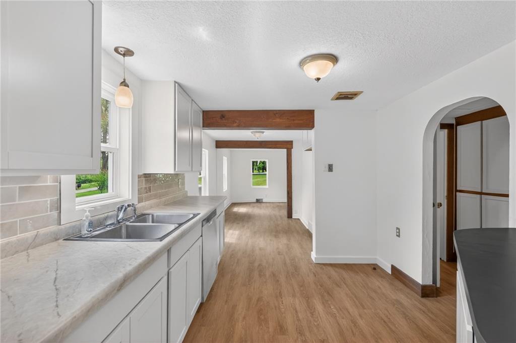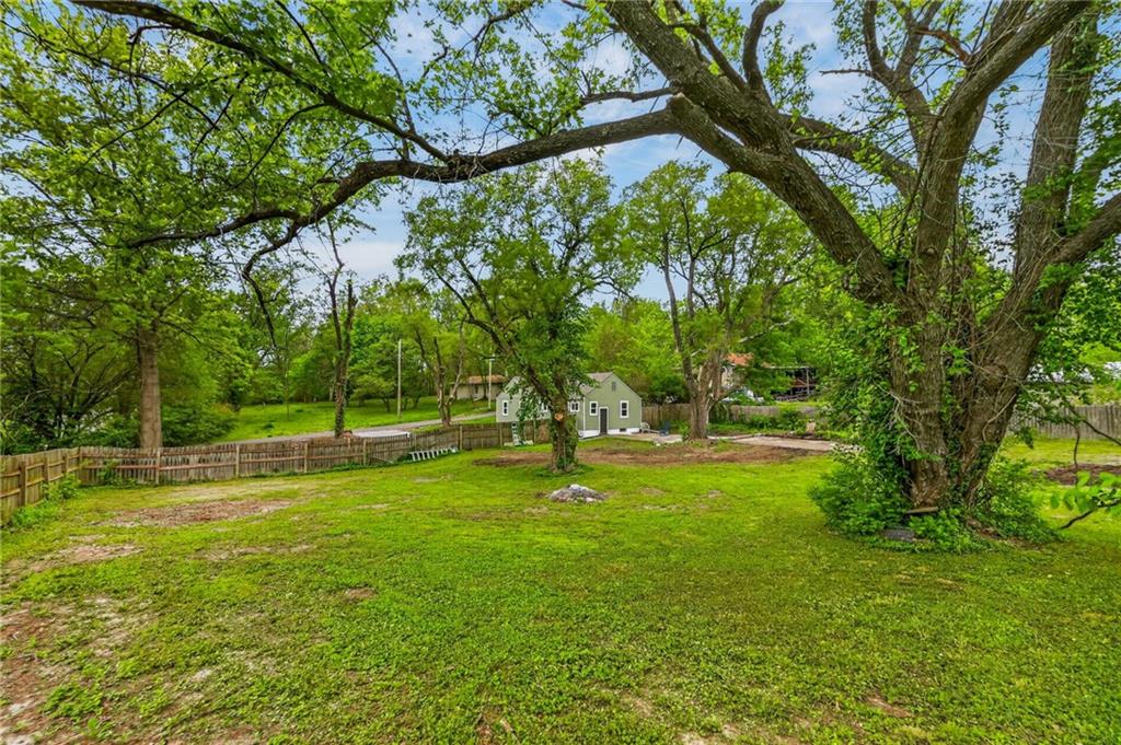 Charming bungalow on nearly an acre, in a residential area, close to shopping and restaurants! Kansas City address between Raytown and Lee's Summit. Discover the perfect balance of cozy indoor living and massive outdoor potential. This beautifully updated 2-bedroom, 1-bathroom home offers 840 sq. ft. of main-level living space, situated on a rare, nearly one-acre lot.