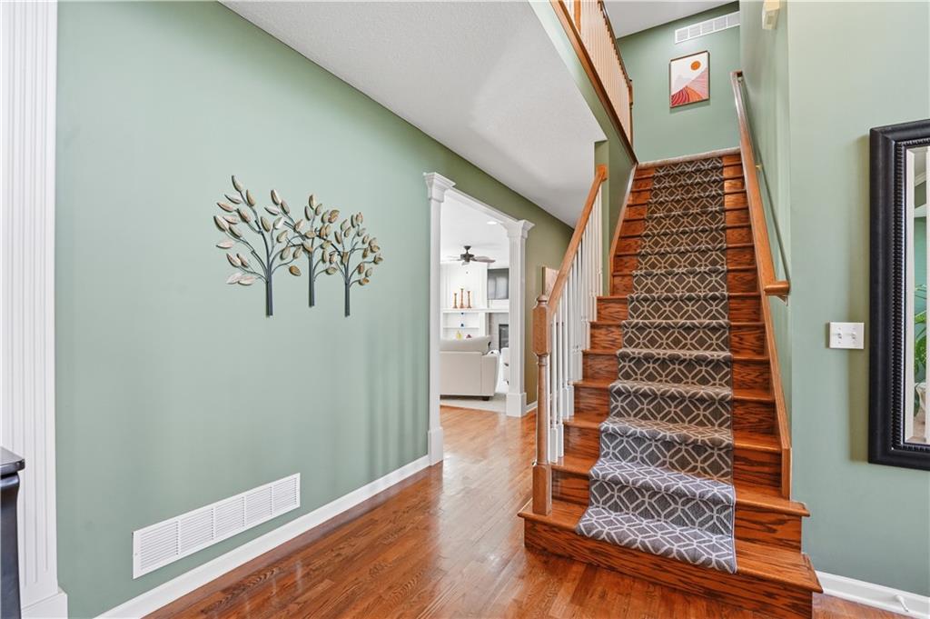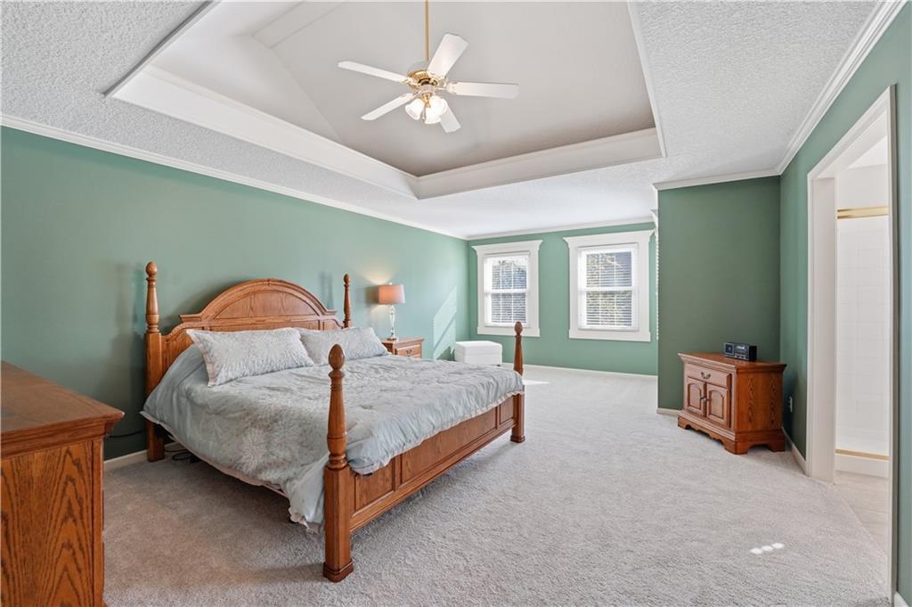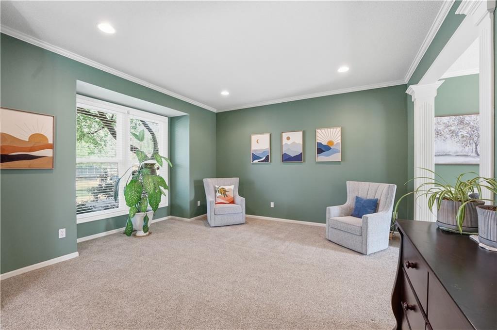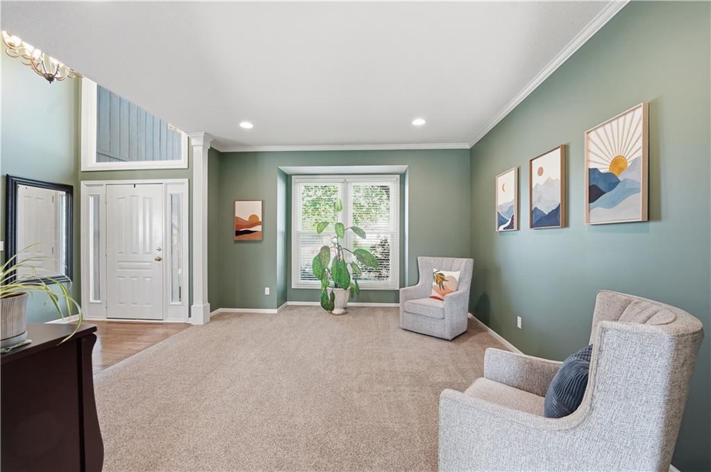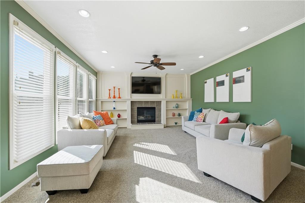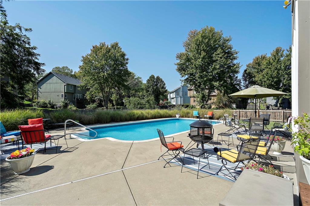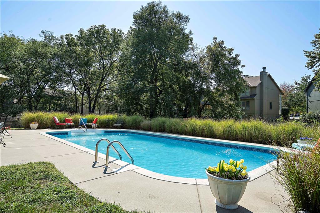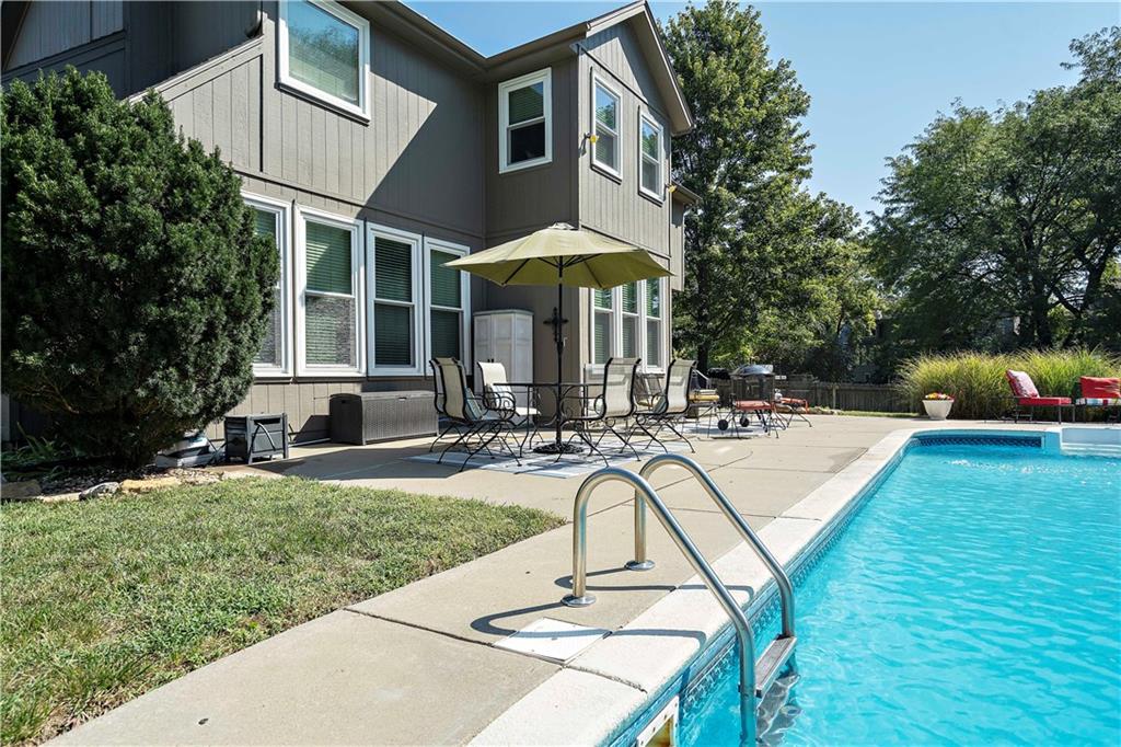 Very rare Blue Valley family home with a 3rd-car garage on a cul-de-sac lot with an in-ground pool! Nothing to do but move in and enjoy this spacious and functional family home. It features a front sitting room that can be used as a home office and a formal dining room. The heart of the home is the kitchen with a center island that opens to the large family room and kitchen dining room. Just off the kitchen is the spacious, fenced backyard and patio with an in-ground saltwater swimming pool, perfect for year-round relaxing, grilling, and entertaining. Upstairs are the large primary bedroom and sitting area with an en suite bathroom and an enormous walk-in closet; a junior suite with a full bathroom and two additional bedrooms; a Jack-and-Jill bathroom; and a laundry room. The large finished basement has plenty of space for a media room, home gym, and recreation area. It includes a fourth full bathroom. Recent updates include new interior paint, new carpet, and new bathroom and laundry room flooring. Outstanding location. Close to trails and a short distance to the Community Center. Close to restaurants and shops, and easy access to Hwy 69 and I-435.