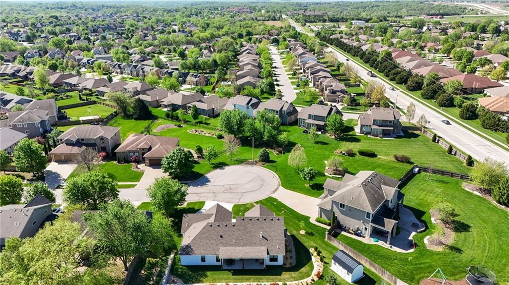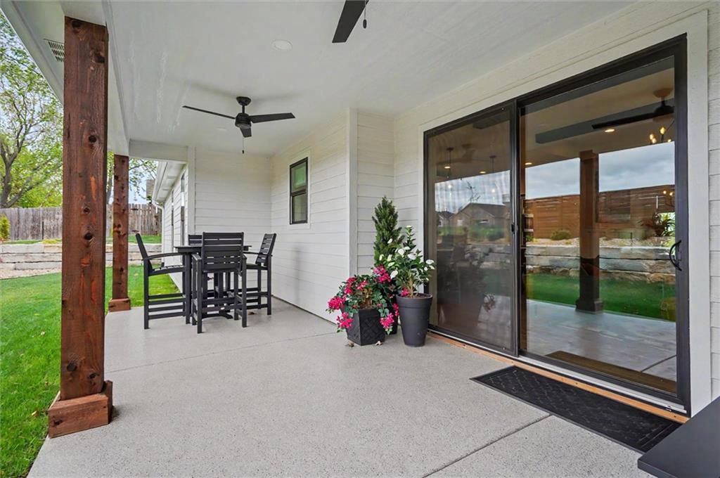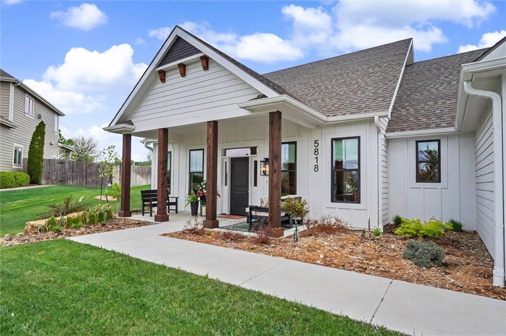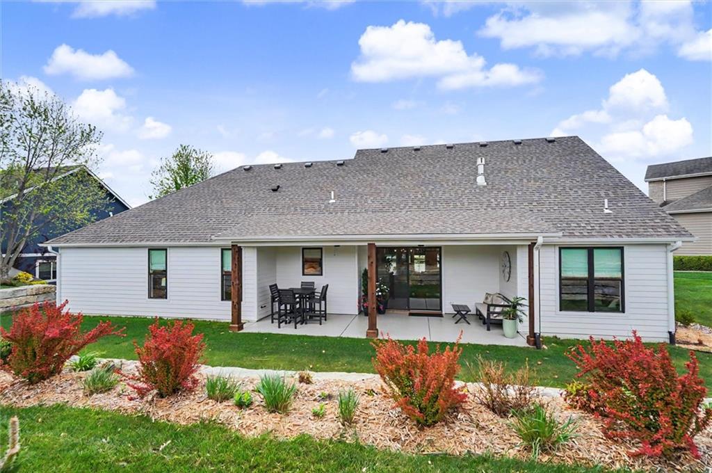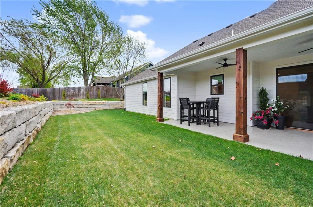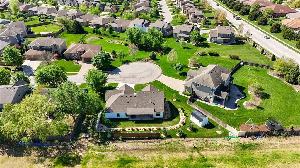 Why You’ll Love This Home Built in Spring 2024 as a custom residence for the builder, this home showcases exceptional craftsmanship, thoughtful upgrades, and superior attention to detail throughout. Now, with two years of established landscaping, you benefit from a mature setting that new construction simply can’t offer. The expanded in-ground sprinkler system supports lush greenery designed for both privacy and a welcoming habitat for birds and butterflies. Perfectly positioned at the end of a quiet cul-de-sac, this home combines privacy with convenience. Enjoy quick access to Hwy 10 and I-70, making commuting effortless. Nearby amenities include outdoor recreation at Jayhawk Park and Lawrence Recreation Pavilion, education at Langston Hughes Elementary School, and top-tier healthcare at LMH Health West Campus. True Single-Level Living Designed for ease and accessibility, this home features no stairs—everything you need is on one level, including the front entrance, spacious 3-car garage, and covered backyard patio. Energy Efficiency & Peace of Mind Built with modern standards and certified for energy efficiency, this home offers comfort, sustainability, and the confidence of lower utility costs year-round. Thoughtful, Functional Layout The open-concept design centers around a stunning kitchen with a large walk-in pantry and brand-new appliances—perfect for both daily living and entertaining. • The private primary suite is situated on the east side of the home and features a spacious bedroom, a luxurious five-piece bathroom, and a large walk-in closet with custom built-ins. • The closet also doubles as a secure storm shelter with reinforced one-foot-thick concrete walls and connects directly to the laundry room for added convenience. • On the west side, two additional bedrooms and a beautifully appointed bathroom provide comfort and privacy for family or guests.