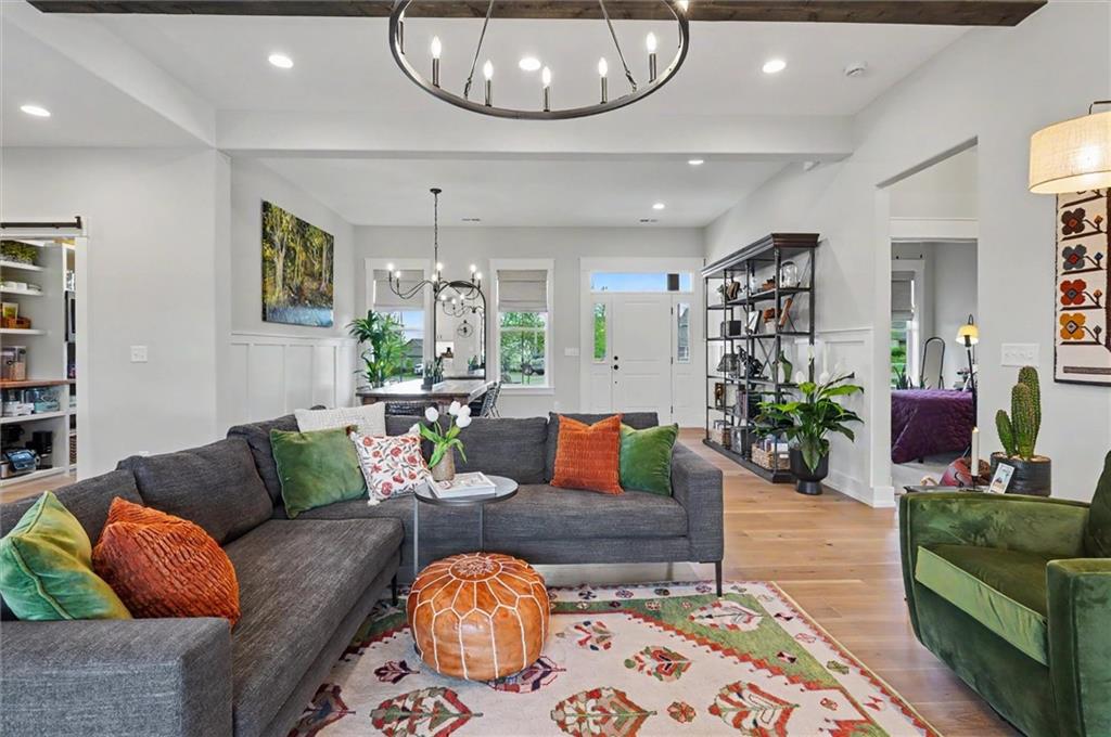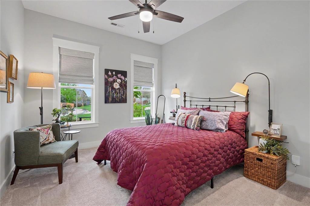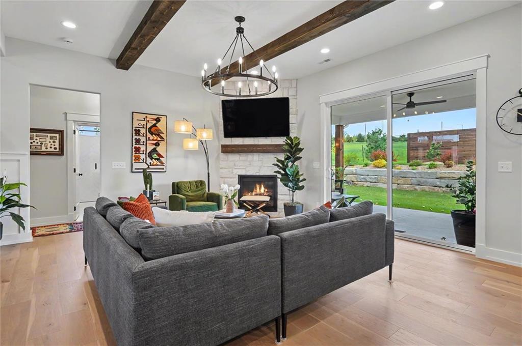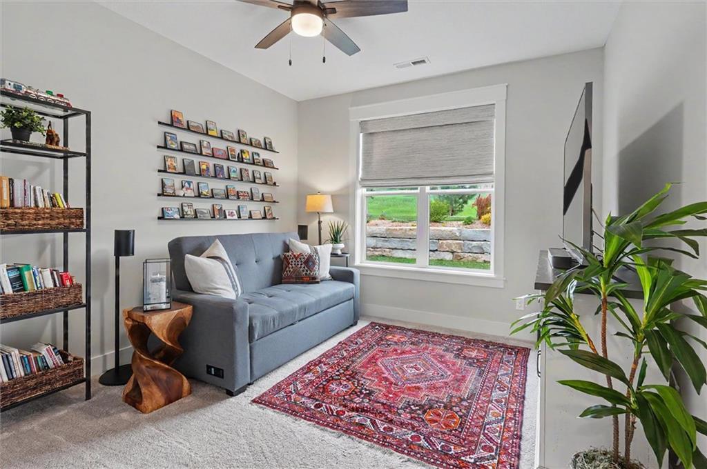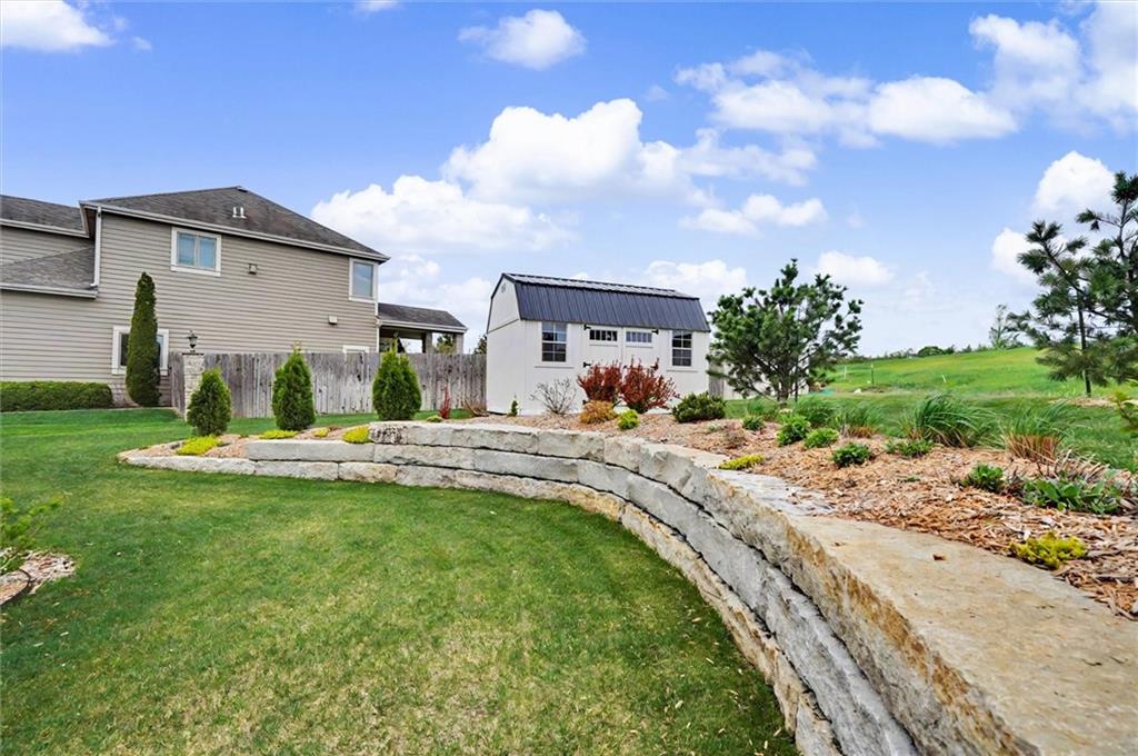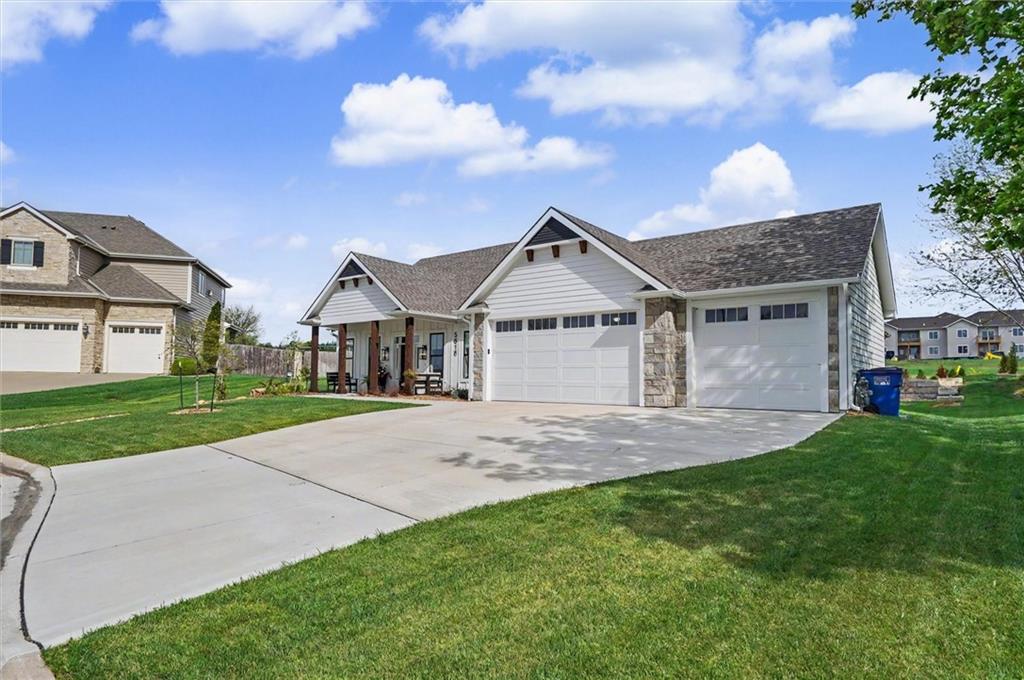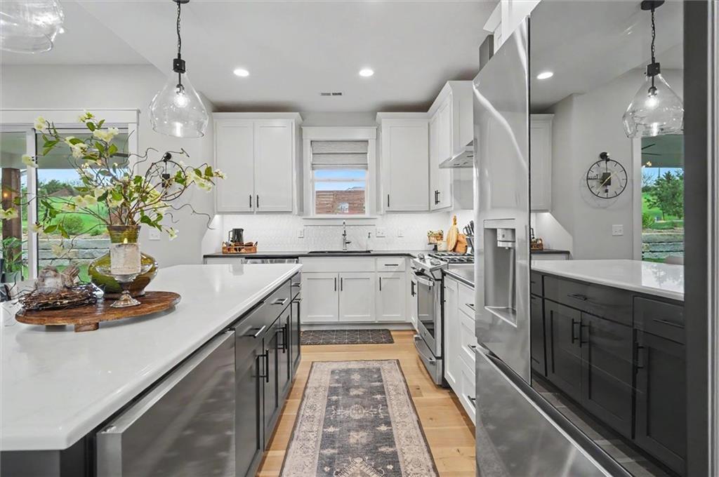 Why You’ll Love This Home Built in Spring 2024 as a custom residence for the builder, this home showcases exceptional craftsmanship, thoughtful upgrades, and superior attention to detail throughout. Now, with two years of established landscaping, you benefit from a mature setting that new construction simply can’t offer. The expanded in-ground sprinkler system supports lush greenery designed for both privacy and a welcoming habitat for birds and butterflies. Perfectly positioned at the end of a quiet cul-de-sac, this home combines privacy with convenience. Enjoy quick access to Hwy 10 and I-70, making commuting effortless. Nearby amenities include outdoor recreation at Jayhawk Park and Lawrence Recreation Pavilion, education at Langston Hughes Elementary School, and top-tier healthcare at LMH Health West Campus. True Single-Level Living Designed for ease and accessibility, this home features no stairs—everything you need is on one level, including the front entrance, spacious 3-car garage, and covered backyard patio. Energy Efficiency & Peace of Mind Built with modern standards and certified for energy efficiency, this home offers comfort, sustainability, and the confidence of lower utility costs year-round. Thoughtful, Functional Layout The open-concept design centers around a stunning kitchen with a large walk-in pantry and brand-new appliances—perfect for both daily living and entertaining. • The private primary suite is situated on the east side of the home and features a spacious bedroom, a luxurious five-piece bathroom, and a large walk-in closet with custom built-ins. • The closet also doubles as a secure storm shelter with reinforced one-foot-thick concrete walls and connects directly to the laundry room for added convenience. • On the west side, two additional bedrooms and a beautifully appointed bathroom provide comfort and privacy for family or guests.