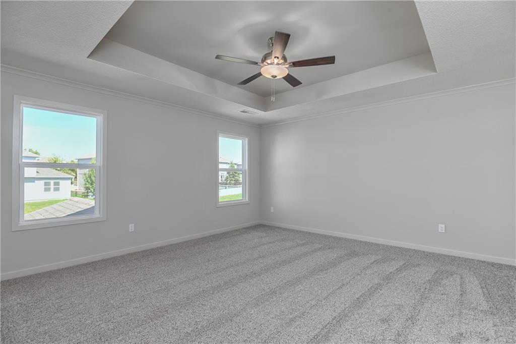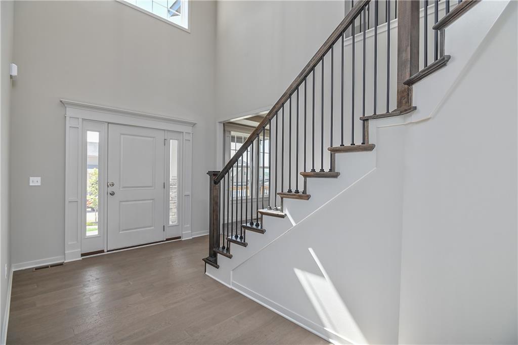 This stunning 2-story Harlow 5 home offers 5 bedrooms, 4 baths, and a spacious 3-car garage in the highly sought-after Prairie Farms community. From the moment you enter, you’ll be impressed by the beautiful turned staircase and gleaming hardwood floors in dining room, entry, kitchen and great room. The formal dining room features built-in cabinetry on both sides and flows seamlessly into a bright, open great room with a cozy fireplace and abundant natural light. The adjacent dining area and chef’s kitchen are an entertainer’s dream—highlighted by hardwood floors, granite countertops, a large center island, apron-front sink, painted custom cabinets with soft-close doors and drawers, upgraded hardware, stainless steel appliances, built-in microwave, and a generous walk-in pantry. A main-level bedroom with a closet offers flexibility as a guest suite, office, playroom, craft space, or more. Upstairs, the luxurious owner’s suite boasts a spa-like bathroom with double granite vanities, tile floors, a free-standing soaking tub, and a walk-in tiled shower. A spacious walk-in closet connects directly to the conveniently located laundry room. Two secondary bedrooms share a Jack & Jill bath, each with its own private vanity. A fourth upstairs bedroom features its own private bath and walk-in closet. Additional highlights include a huge unfinished basement with abundant storage potential, an in-ground sprinkler system, and more. Community amenities include a large swimming pool, cabana, playground, and walking trails. Plus, Prairie Farms is adjacent to the newly renovated Lake Olathe, offering paddleboarding, fishing, hiking, and more—making this a perfect place to call home! Photos are of previous homes and may show some optional features.