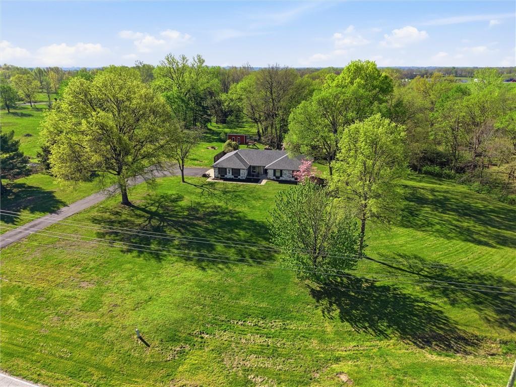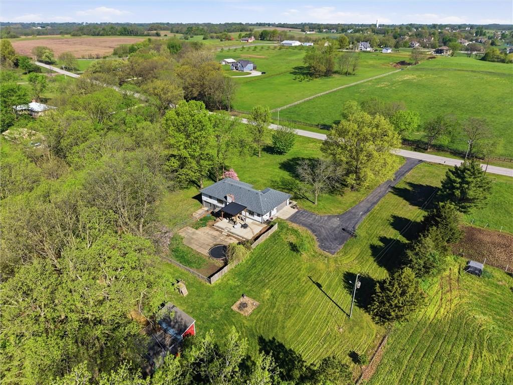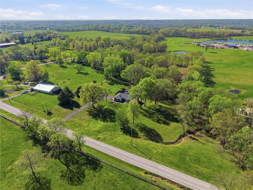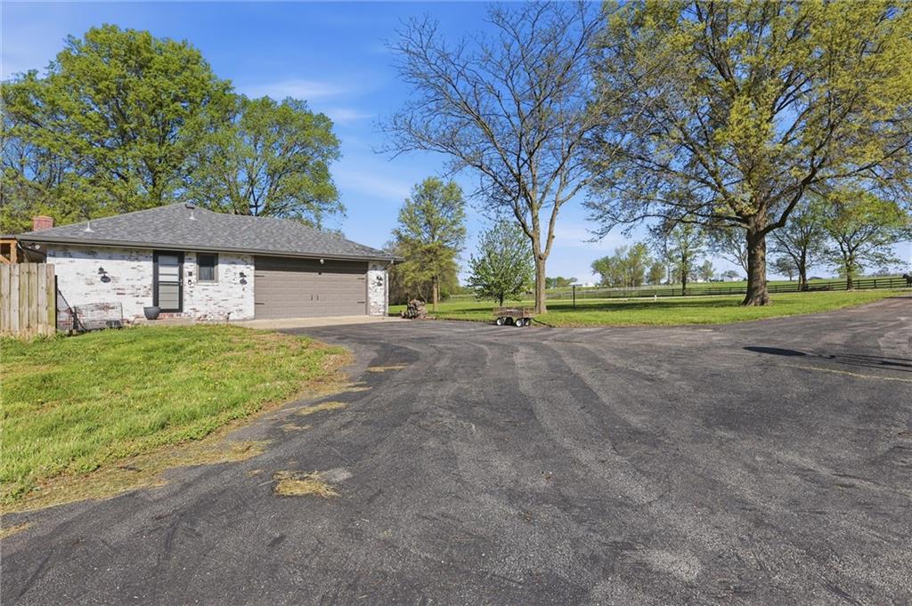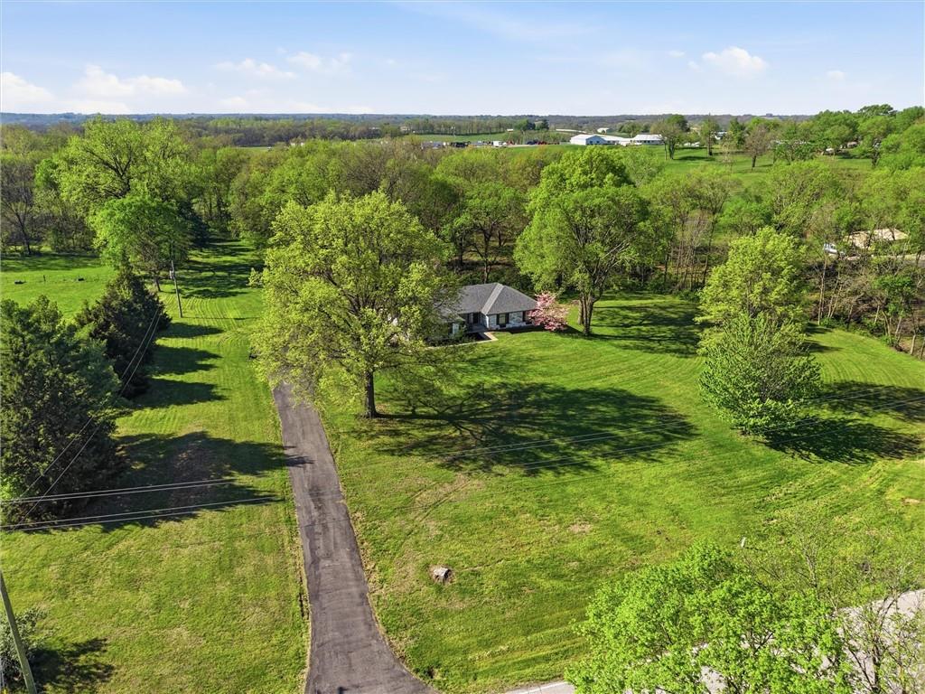 Welcome to your private slice of country living just minutes from the conveniences of Kearney and Liberty. Nestled on 5 beautiful acres, this fully updated reverse ranch offers over 3,200 square feet of thoughtfully designed living space—blending comfort, style, and functionality. The newly renovated main level features an inviting layout, completely renovated with hardwoods, open kitchen with large island & coffee bar, highlighted by a stunning brick wood-burning fireplace that creates a warm, cozy focal point. You’ll also find a versatile formal dining space that can easily serve as a home office to fit your lifestyle needs, along with the added convenience of main-level laundry. With two spacious bedrooms and 2.5 bathrooms on the main level, this home is designed for comfortable everyday living. Downstairs, you’ll find even more room to spread out with a third bedroom, an additional 1.5 bathrooms, and flexible living space—ideal for guests, a second living area, or multi-generational living. PLUS a Suspended Garage with single garage door access - offering you nearly 500sf of workshop space. Outside, enjoy the peace and privacy of acreage living with a fenced backyard, perfect for pets, play, or entertaining. This property offers mature trees, Magnolias, Sugar Maple, Natural Honeysuckle and many evergreens. Create your homestead. There's a large covered back porch, the 'Red Barn' outbuilding with concrete floors, electricity and water, plus enclosure for dogs, or other livestock. Electric fencing stays. Resident donkeys, "Mabel" & "Clementine" would love to stay. The three-car garage provides ample space for vehicles, hobbies, or storage. If you’ve been searching for updated living, land, and a location that offers both tranquility and convenience—this one checks all the boxes. No gravel. Completely paved.