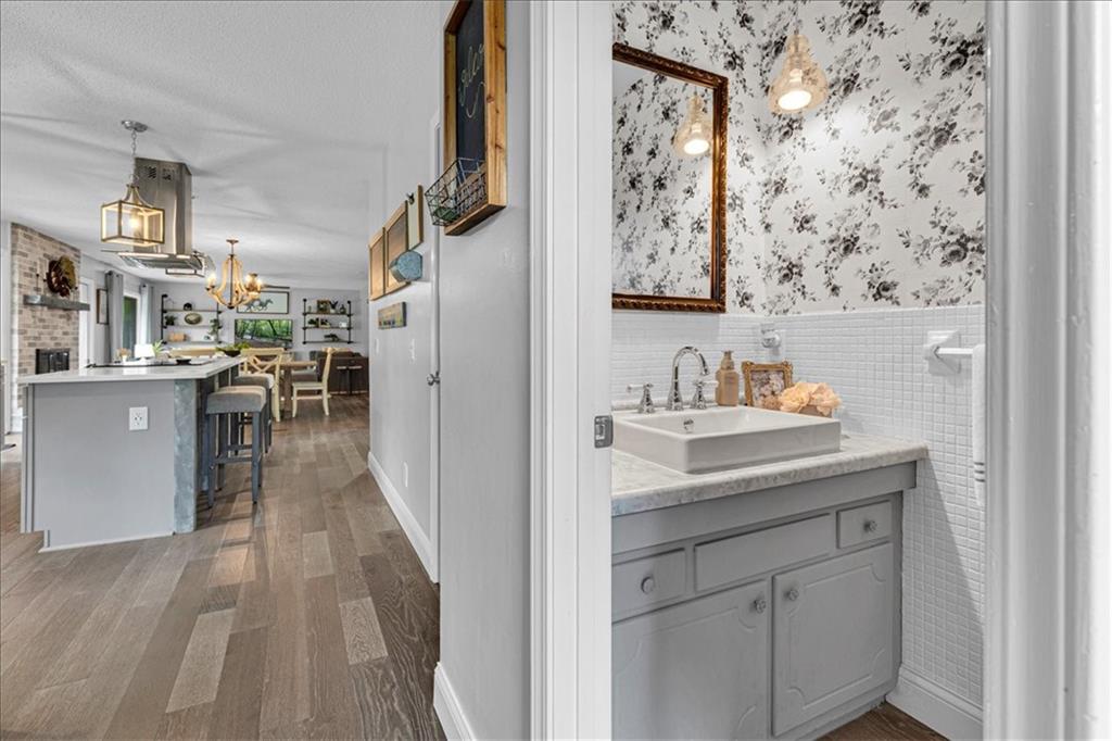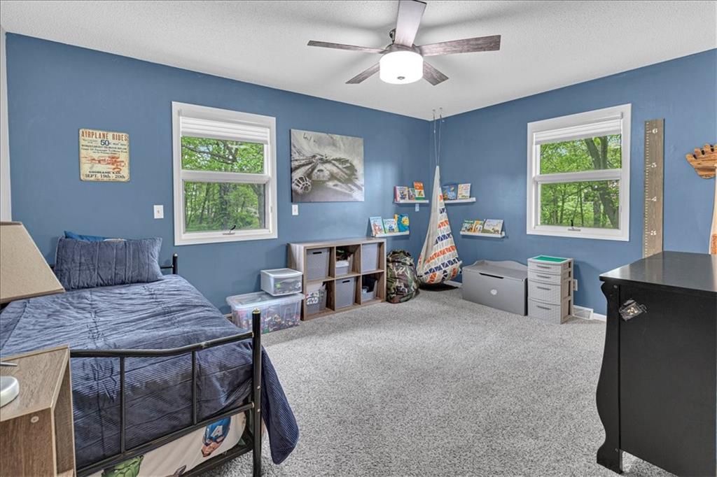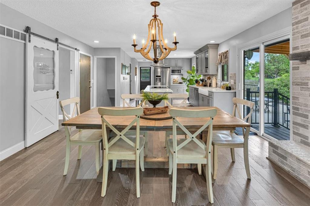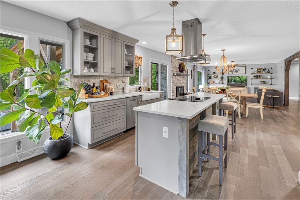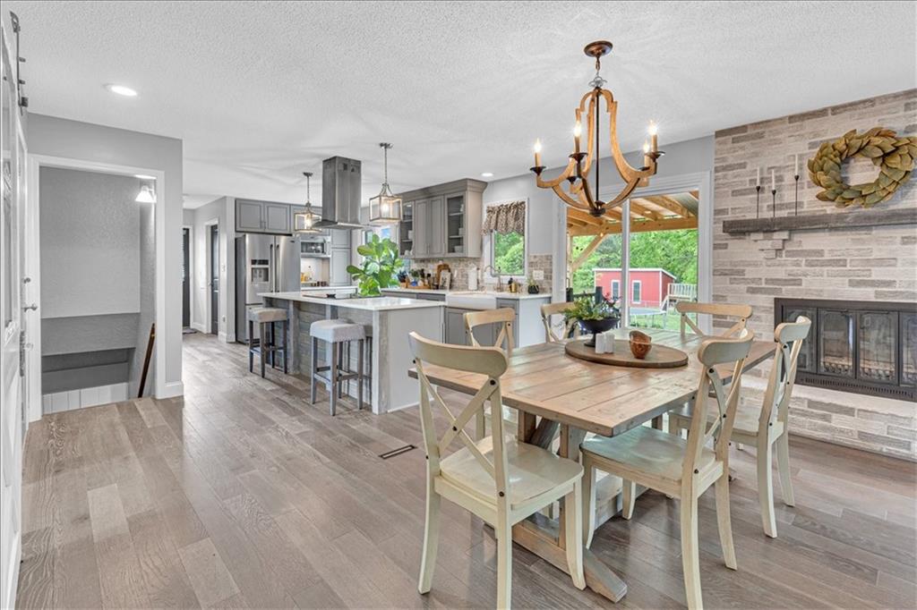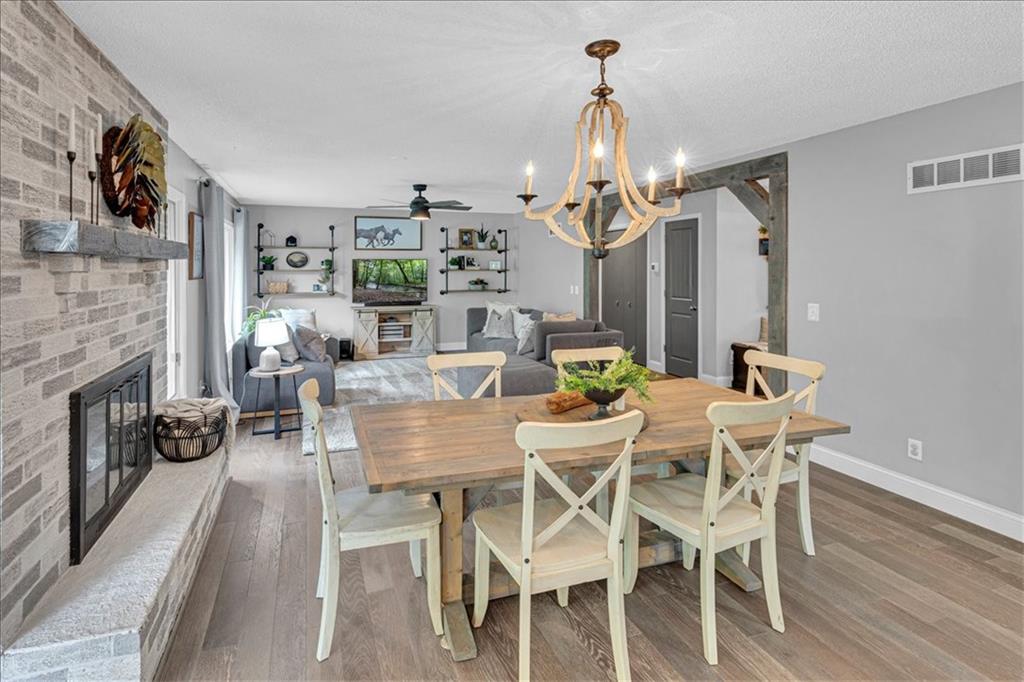 Welcome to your private slice of country living just minutes from the conveniences of Kearney and Liberty. Nestled on 5 beautiful acres, this fully updated reverse ranch offers over 3,200 square feet of thoughtfully designed living space—blending comfort, style, and functionality. The newly renovated main level features an inviting layout, completely renovated with hardwoods, open kitchen with large island & coffee bar, highlighted by a stunning brick wood-burning fireplace that creates a warm, cozy focal point. You’ll also find a versatile formal dining space that can easily serve as a home office to fit your lifestyle needs, along with the added convenience of main-level laundry. With two spacious bedrooms and 2.5 bathrooms on the main level, this home is designed for comfortable everyday living. Downstairs, you’ll find even more room to spread out with a third bedroom, an additional 1.5 bathrooms, and flexible living space—ideal for guests, a second living area, or multi-generational living. PLUS a Suspended Garage with single garage door access - offering you nearly 500sf of workshop space. Outside, enjoy the peace and privacy of acreage living with a fenced backyard, perfect for pets, play, or entertaining. This property offers mature trees, Magnolias, Sugar Maple, Natural Honeysuckle and many evergreens. Create your homestead. There's a large covered back porch, the 'Red Barn' outbuilding with concrete floors, electricity and water, plus enclosure for dogs, or other livestock. Electric fencing stays. Resident donkeys, "Mabel" & "Clementine" would love to stay. The three-car garage provides ample space for vehicles, hobbies, or storage. If you’ve been searching for updated living, land, and a location that offers both tranquility and convenience—this one checks all the boxes. No gravel. Completely paved.