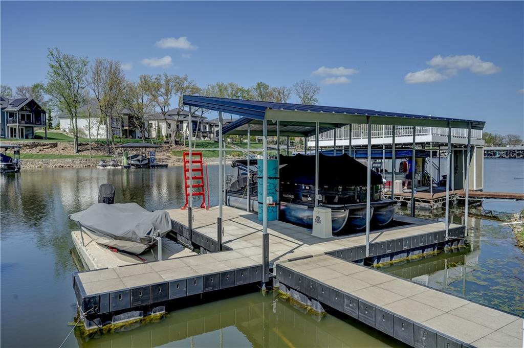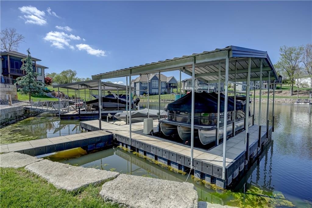 Stunning reverse 1.5 story lakefront home tucked away on a private cul-de-sac lot with awesome water views and direct lake access. This newer 4-bedroom, 3.5-bath home offers an open and spacious layout designed for both everyday living and entertaining. The kitchen is beautiful with custom cabinets, quartz countertops, & Stainless appliances. Enjoy private lake views from the main living areas and step out onto the covered deck to relax or take in the scenery. The finished walkout basement provides additional living space, bedrooms, and easy access to the backyard oasis. Beautifully maintained with extensive landscaping, irrigation system, and a sidewalk leading to your private dock for effortless days on the water. House is located in a cove so perfect for fishing, swimming, and floating with no boat traffic. A rare opportunity to own a move-in ready waterfront home with luxury features, privacy, and incredible outdoor living.